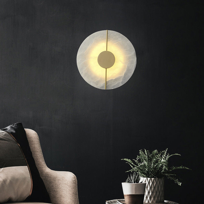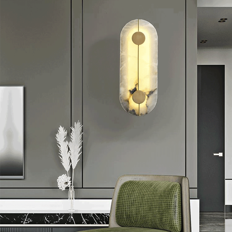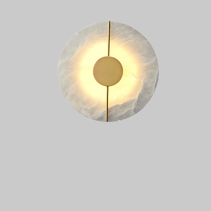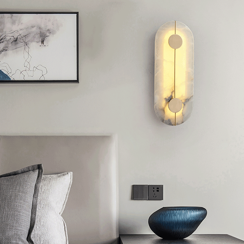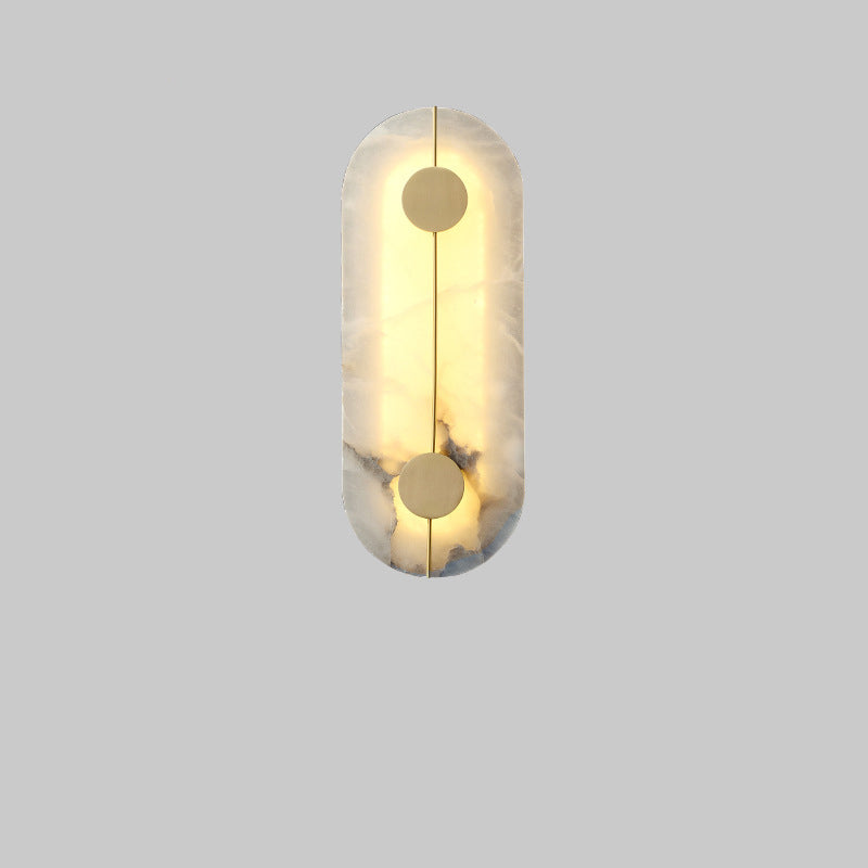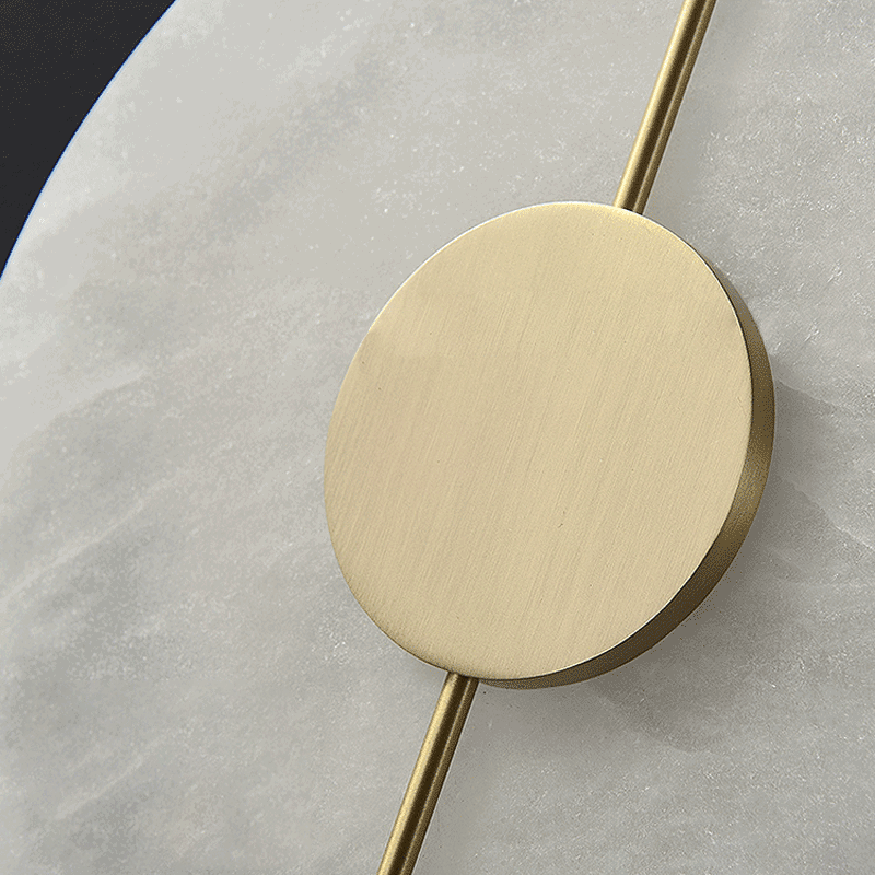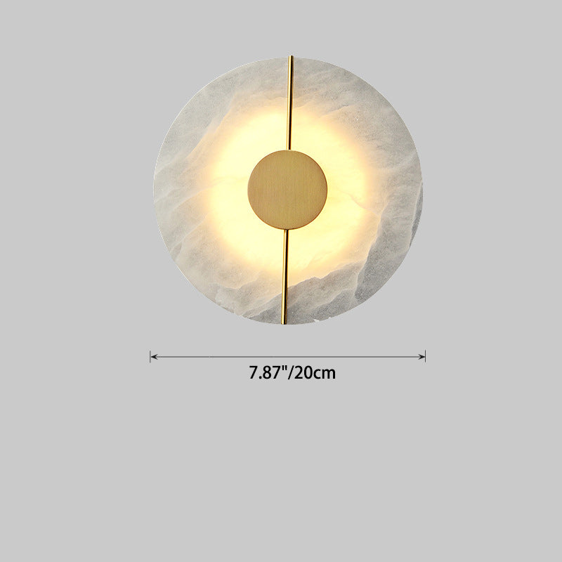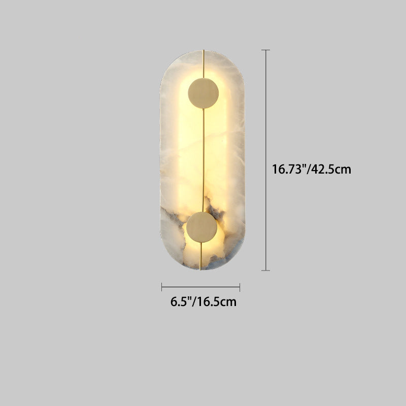 Traditional Chinese Copper Marble Round Elliptical LED Wall Sconce Lamp For Hallway