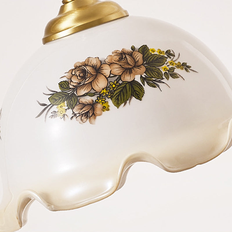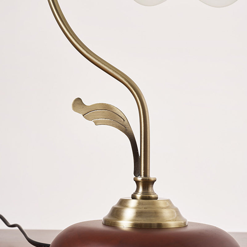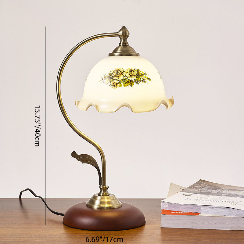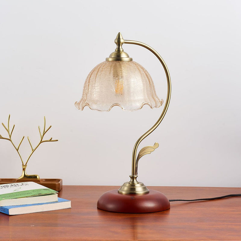 Traditional Chinese Curved Round Lotus Flower Glass Solid Wood 1-Light Table Lamp For Living Room