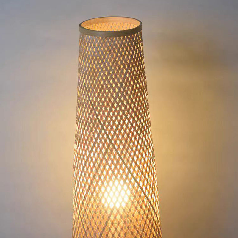Traditional Chinese Cylinder Bamboo 1-Light Standing Floor Lamp For Living Room