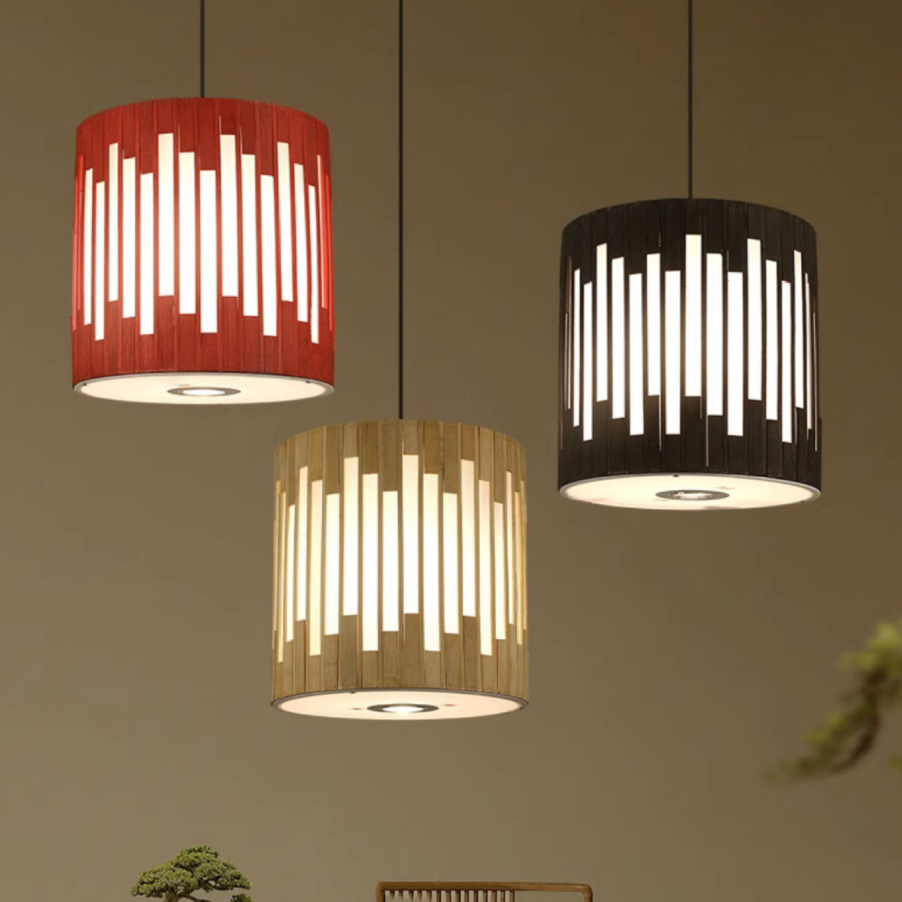 Traditional Chinese Cylinder Bamboo Woven 1-Light Pendant Light For Dining Room