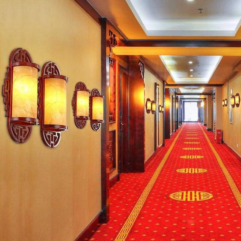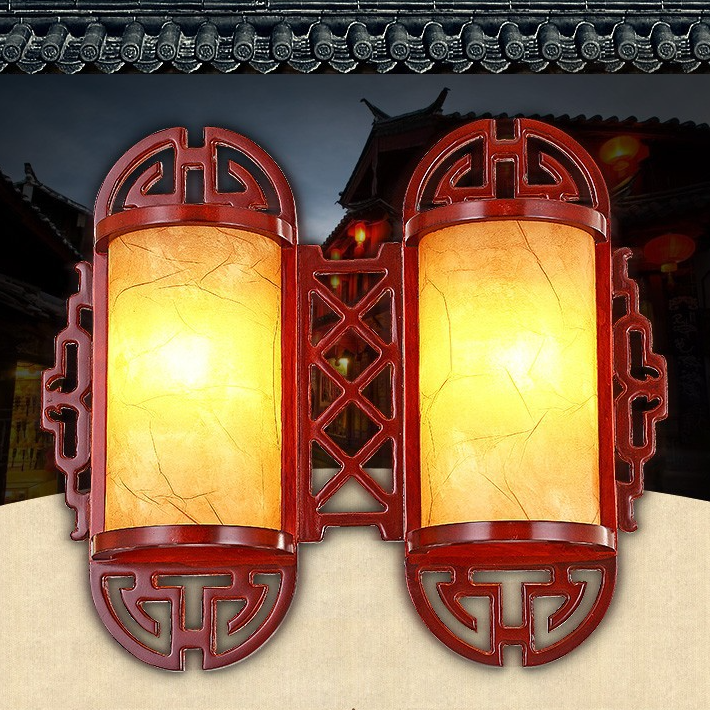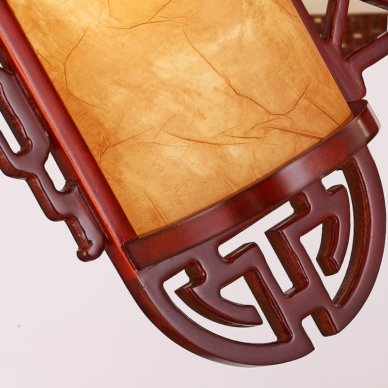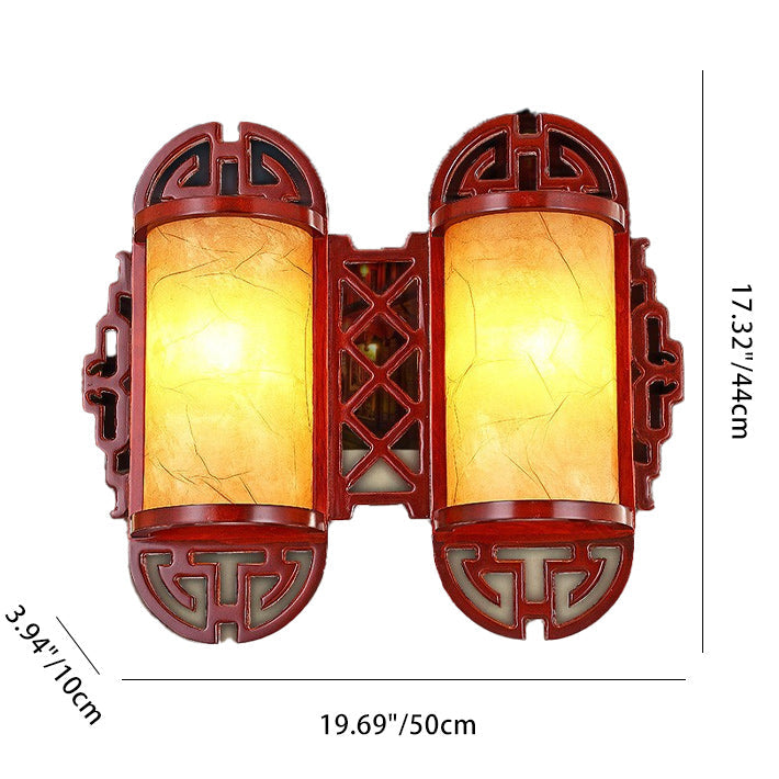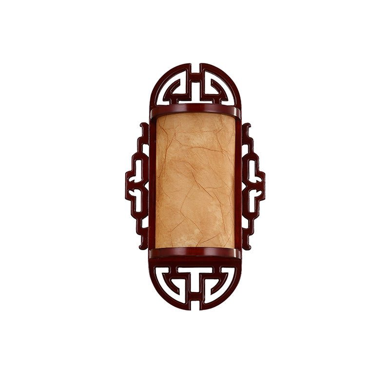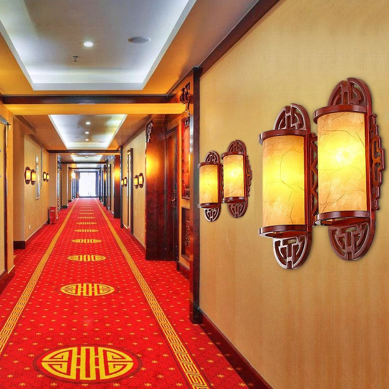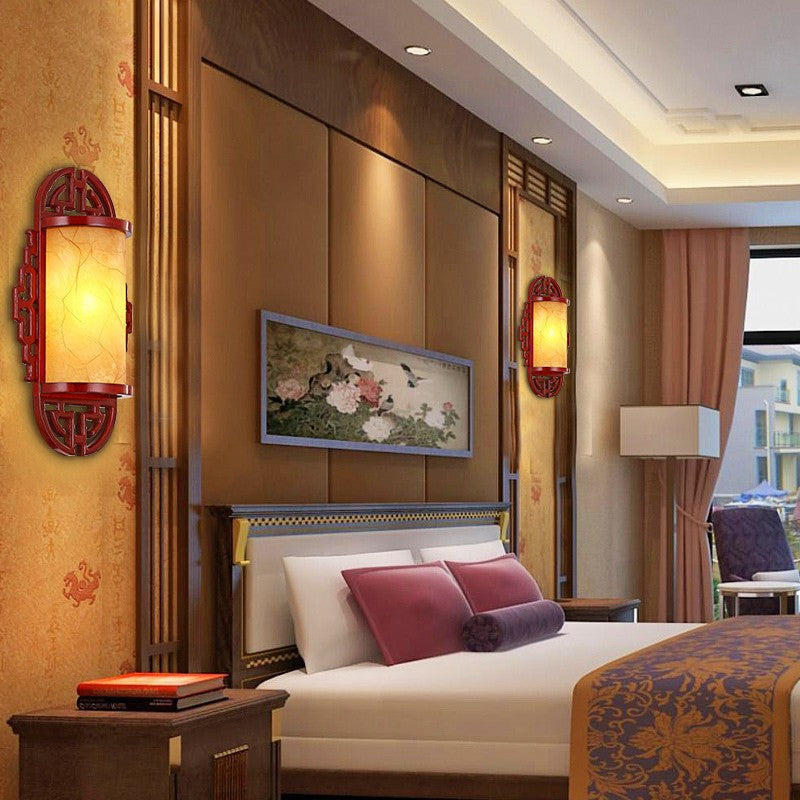 Traditional Chinese Cylinder Imitation Sheepskin Lampshade Wood 1/2 - Light Wall Sconce Lamp For Bedroom