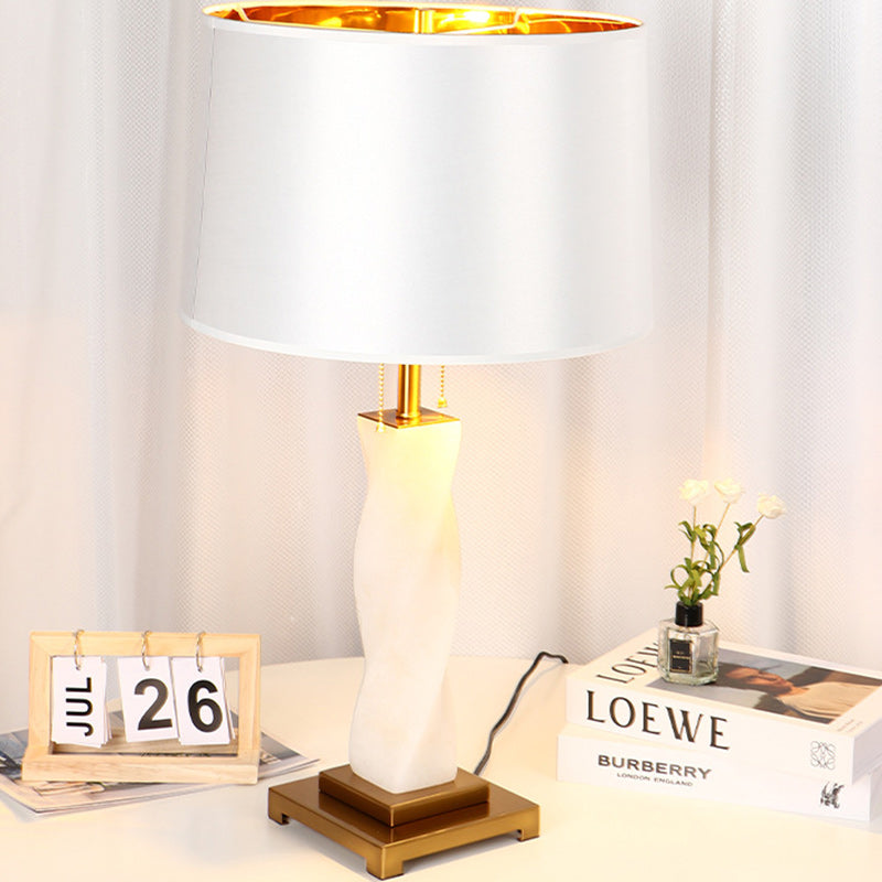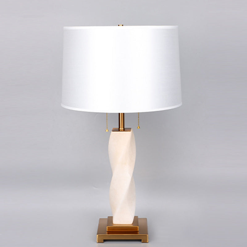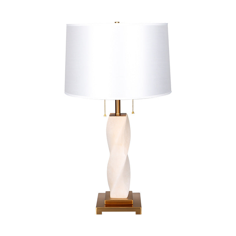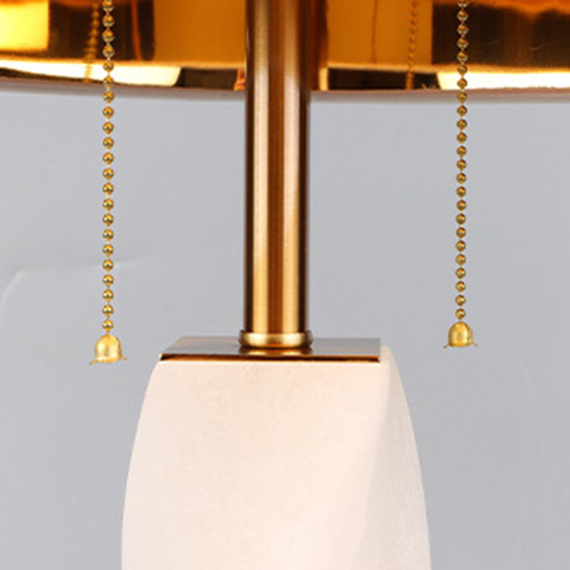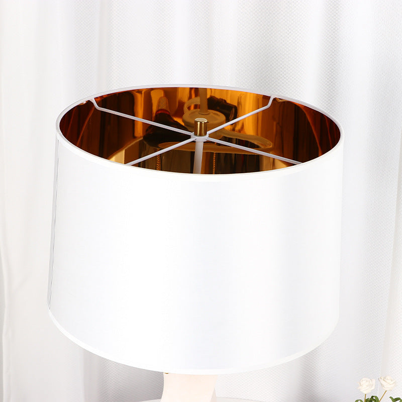 Traditional Chinese Cylinder Metal Glass Fabric 1-Light Table Lamp For Bedroom