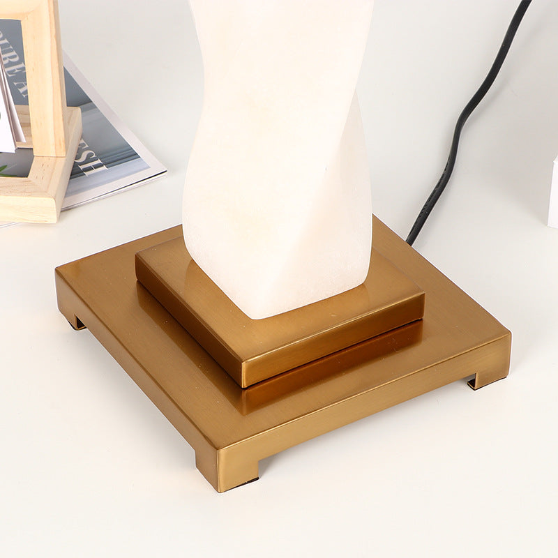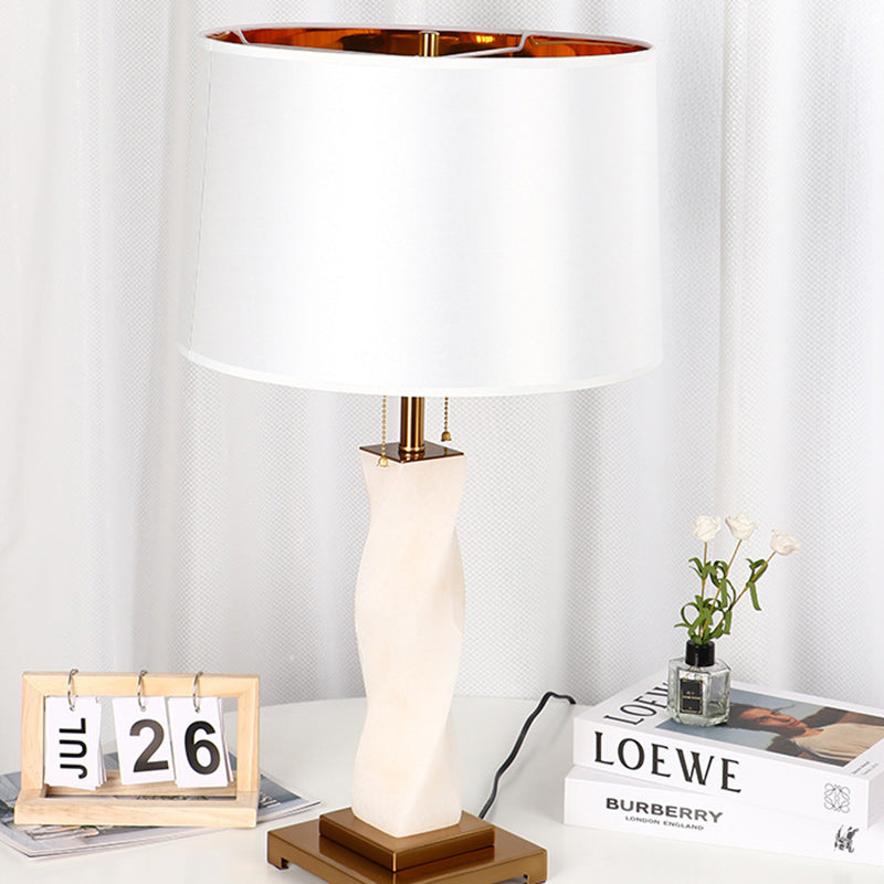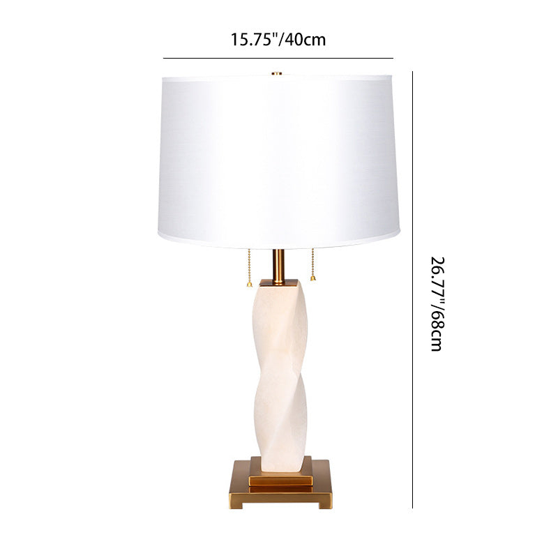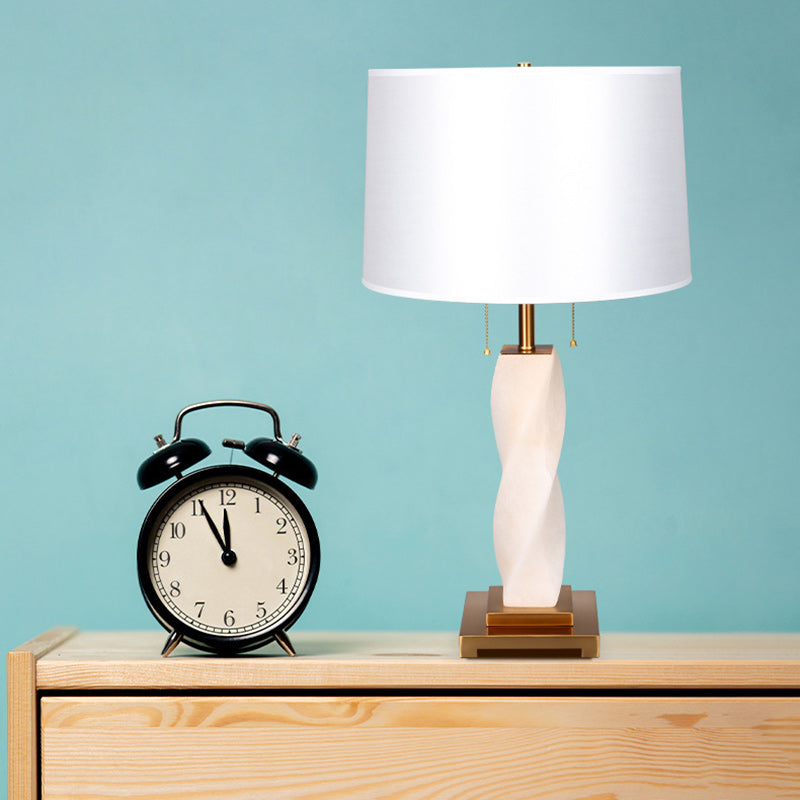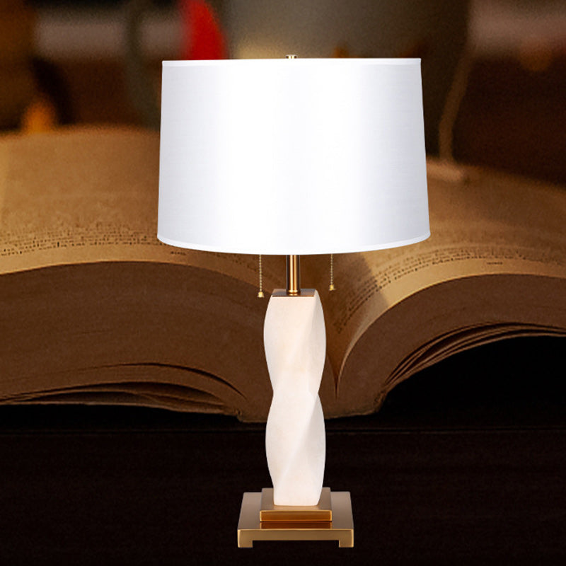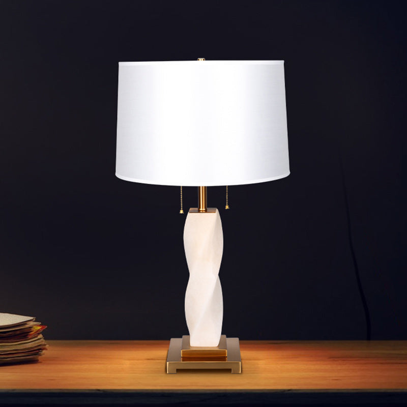 Traditional Chinese Cylinder Metal Glass Fabric 1-Light Table Lamp For Bedroom