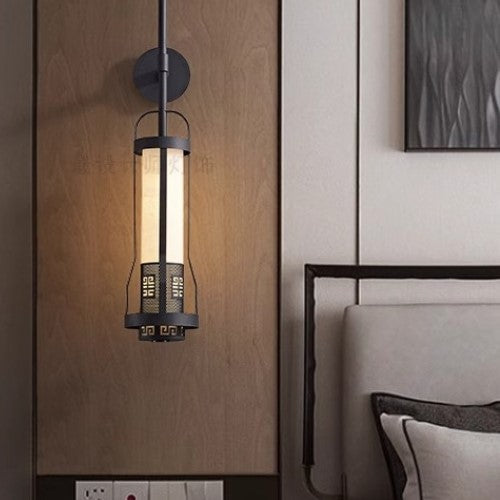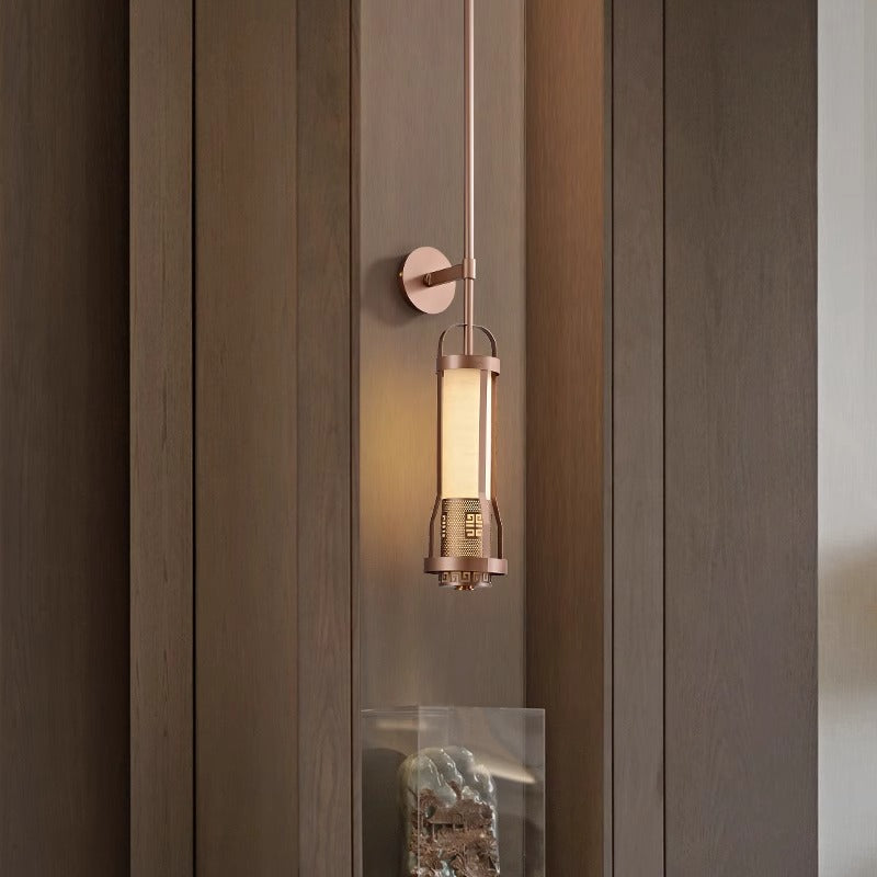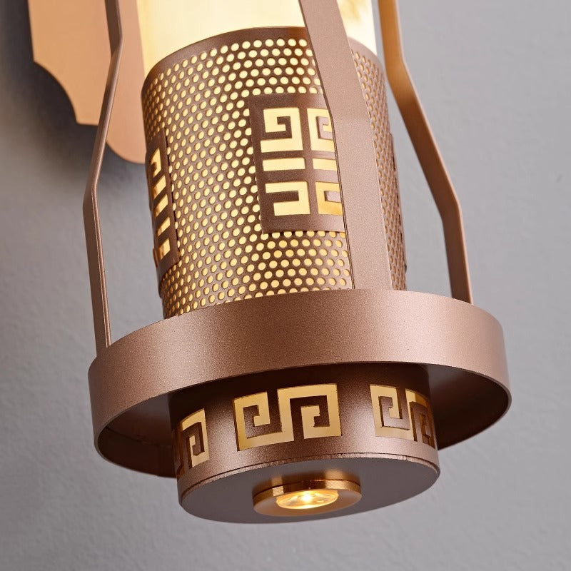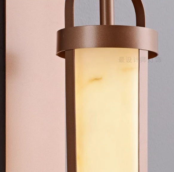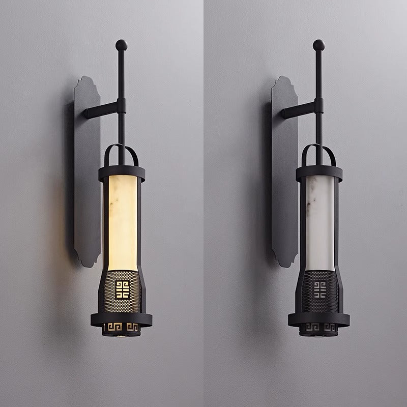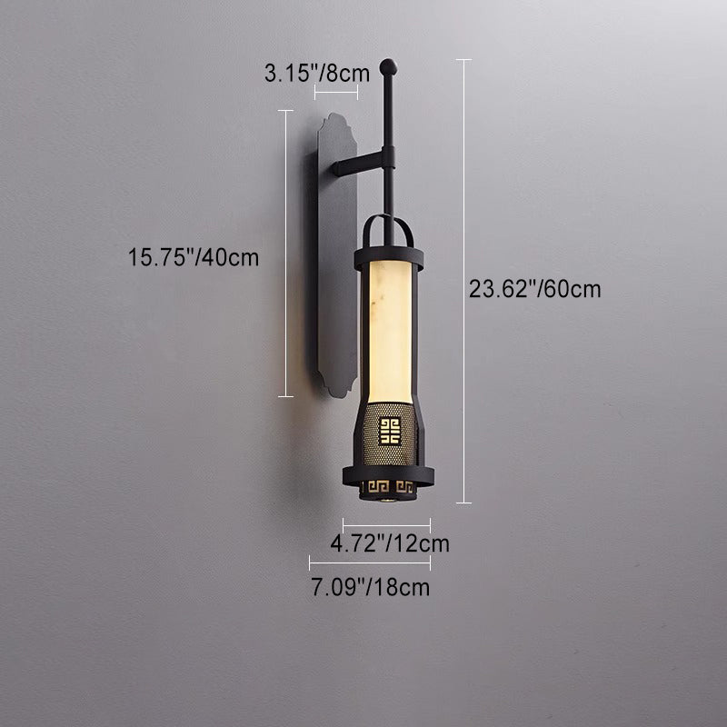 Traditional Chinese Cylinder Metal Natural Marble LED Wall Sconce Lamp For Living Room
