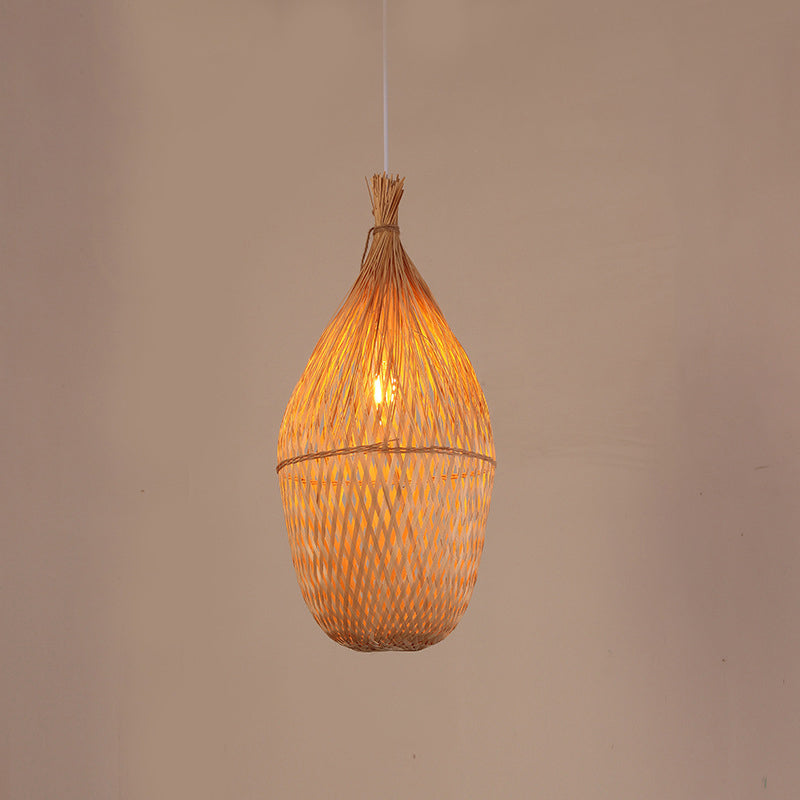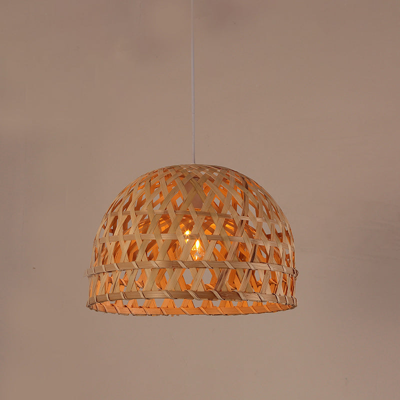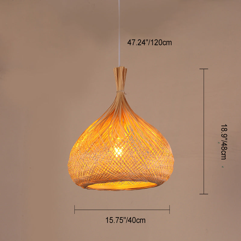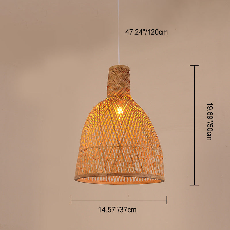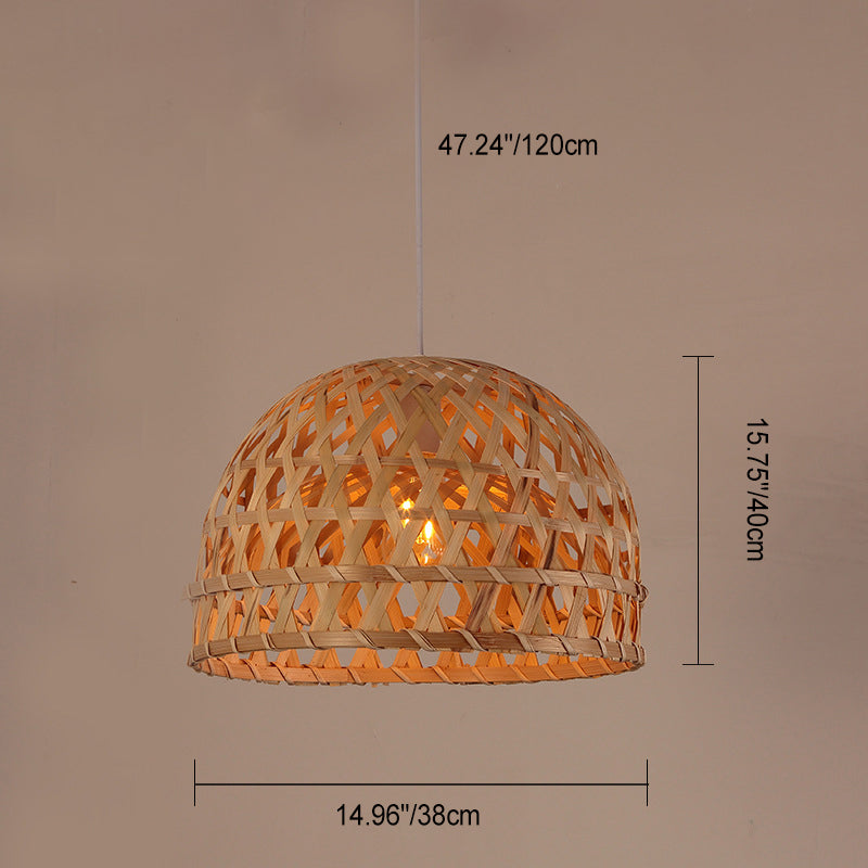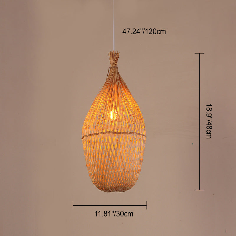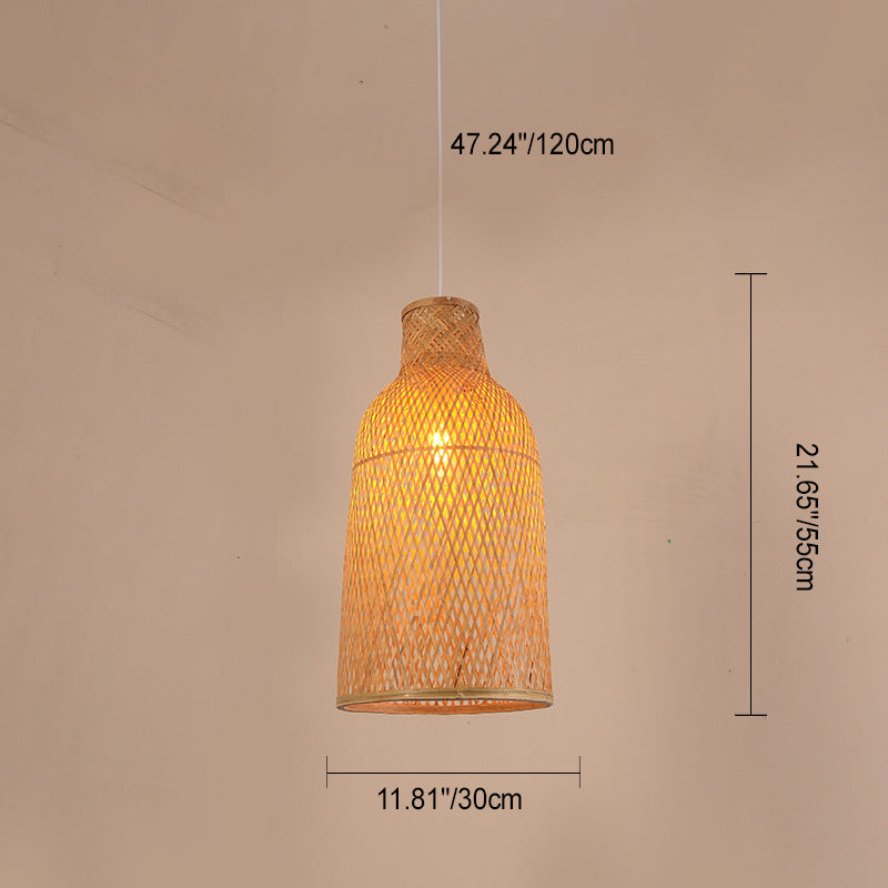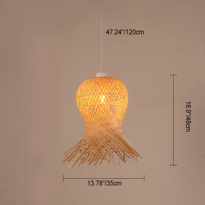 Traditional Chinese Cylinder Octopus Round Bamboo 1-Light Pendant Light For Living Room