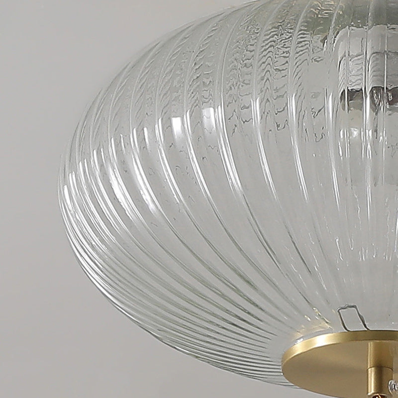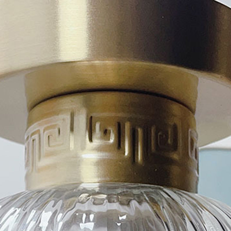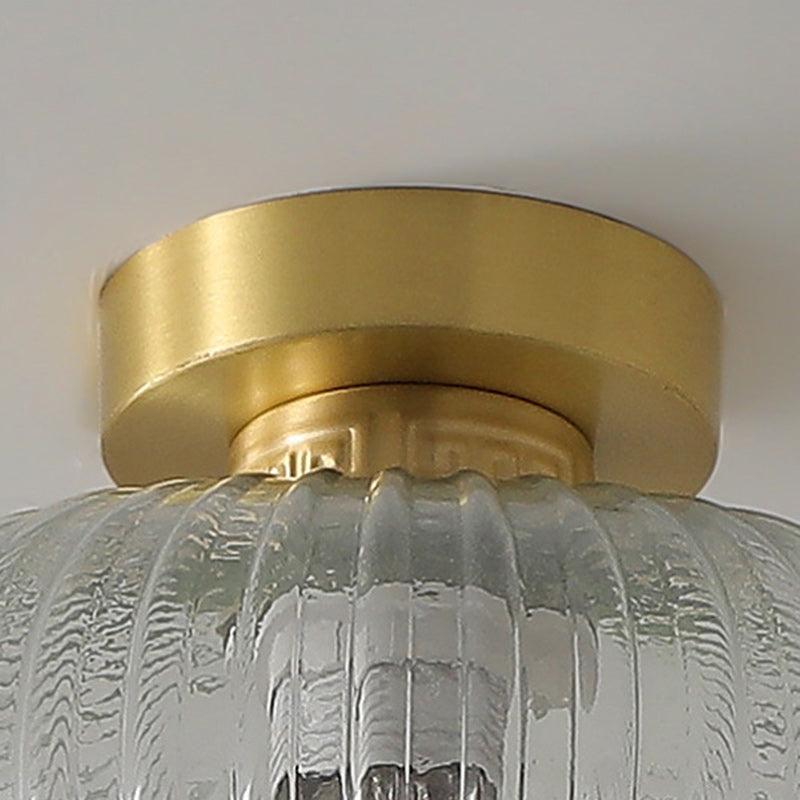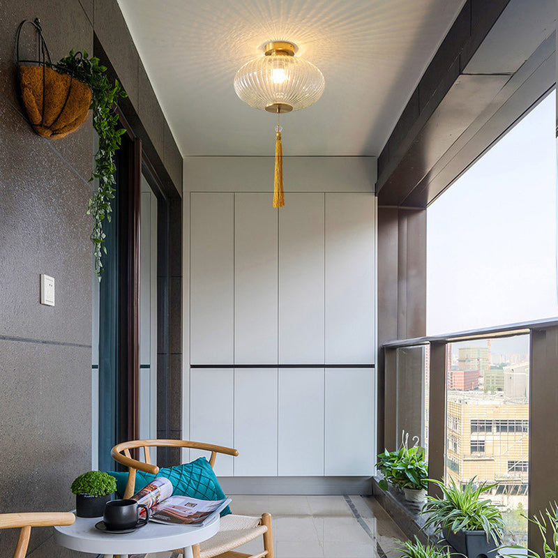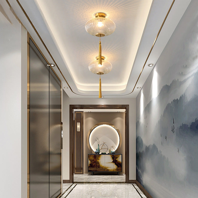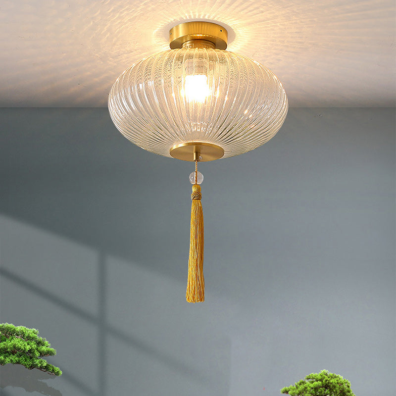 Traditional Chinese Cylinder Oval Copper Glass 1-Light Semi-Flush Mount Ceiling Light For Hallway