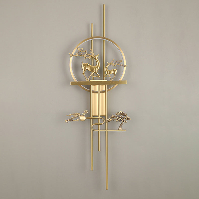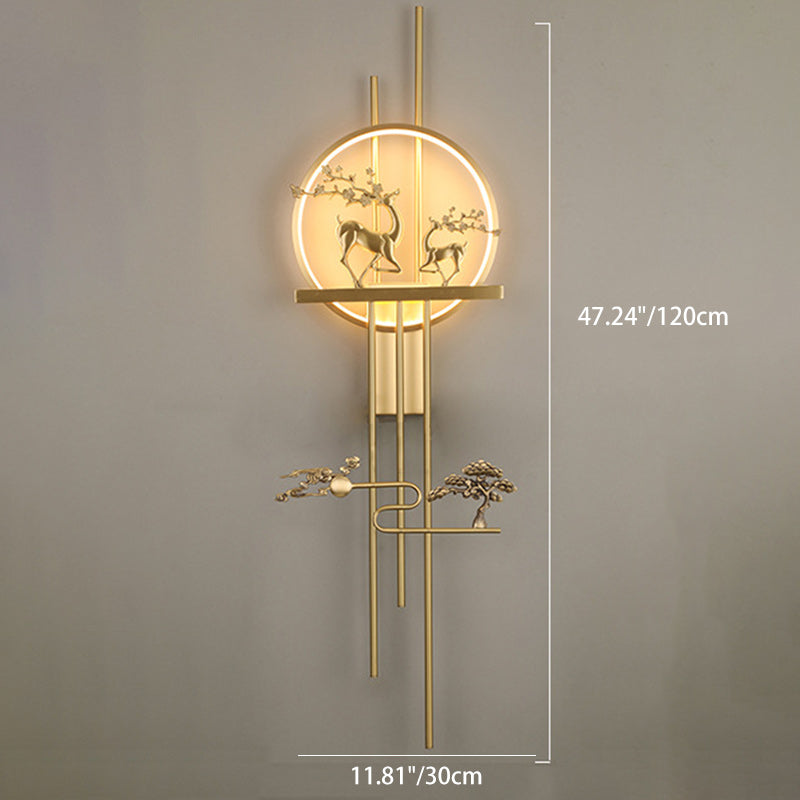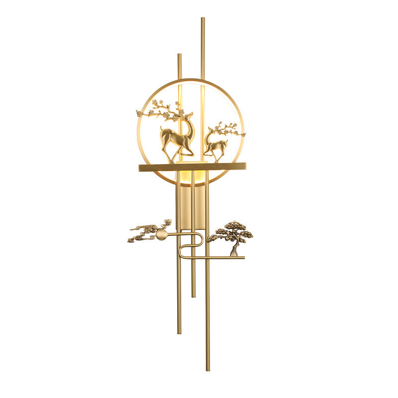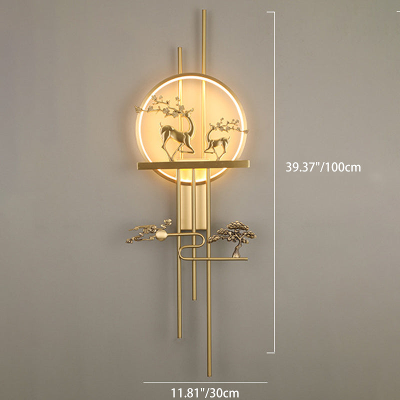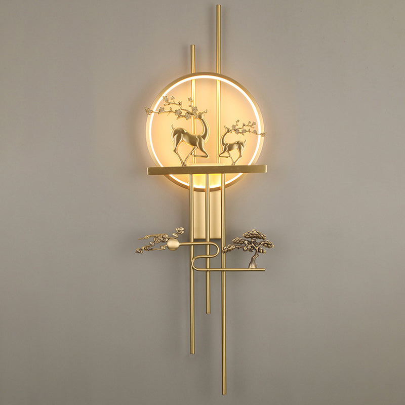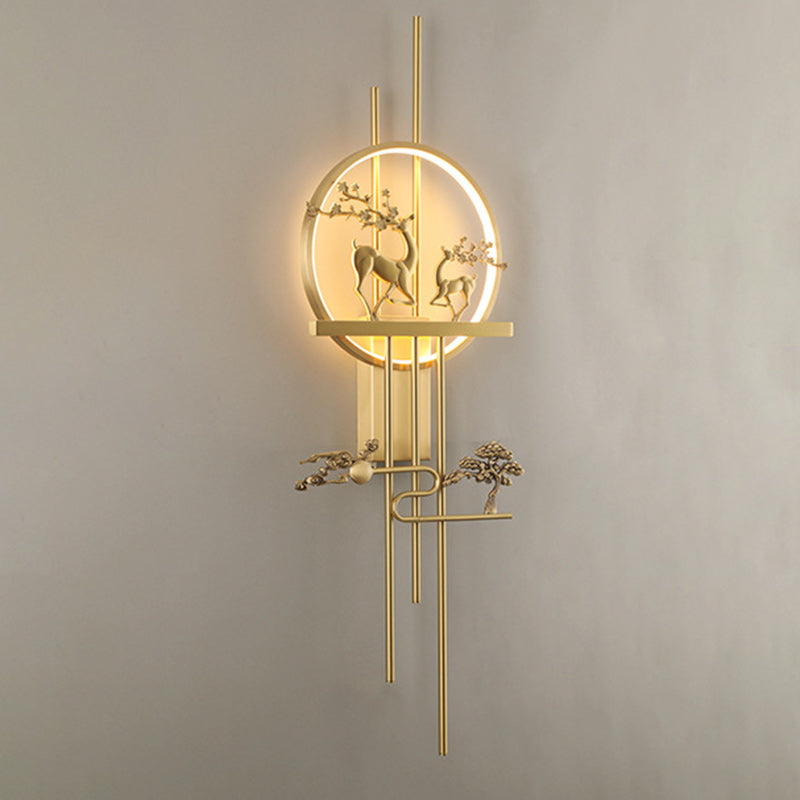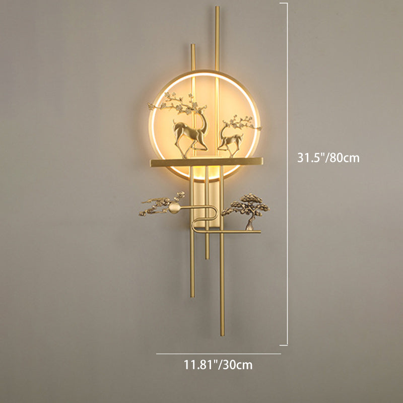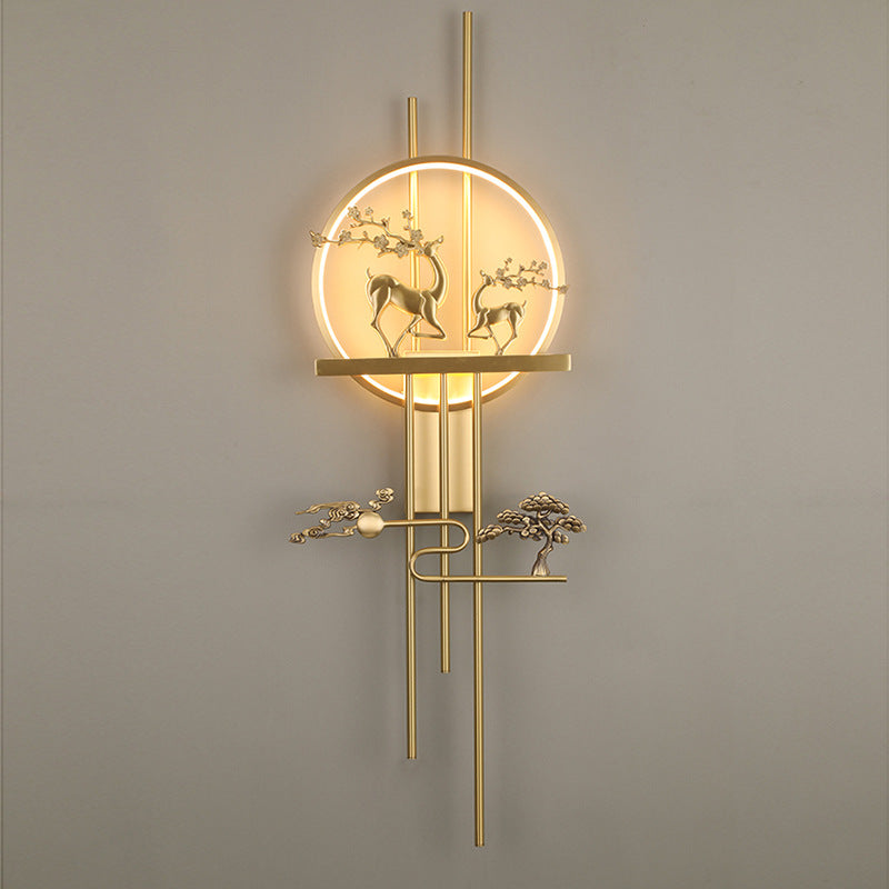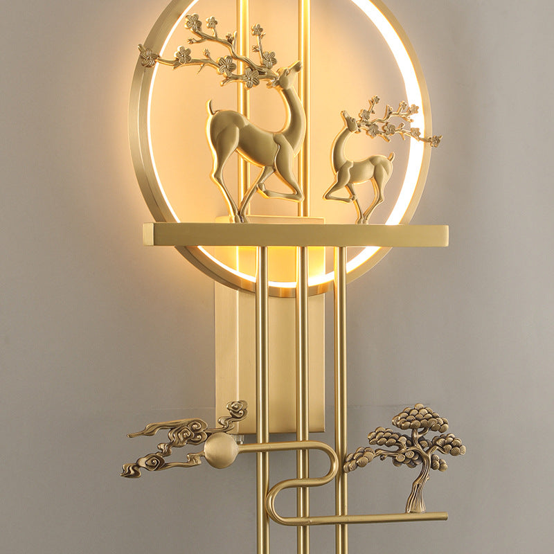 Traditional Chinese Deer Circle Brass LED Wall Sconce Lamp For Living Room