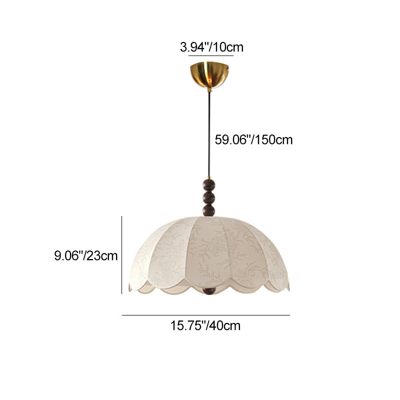 Traditional Chinese Dome Ash Wood Fabric 3-Light Pendant Light For Bedroom
