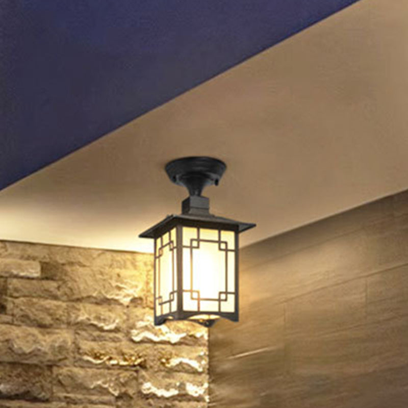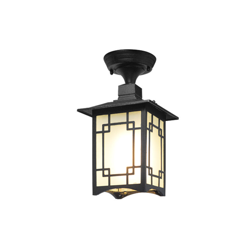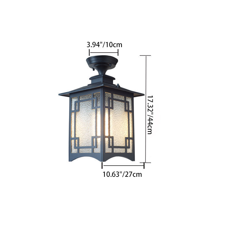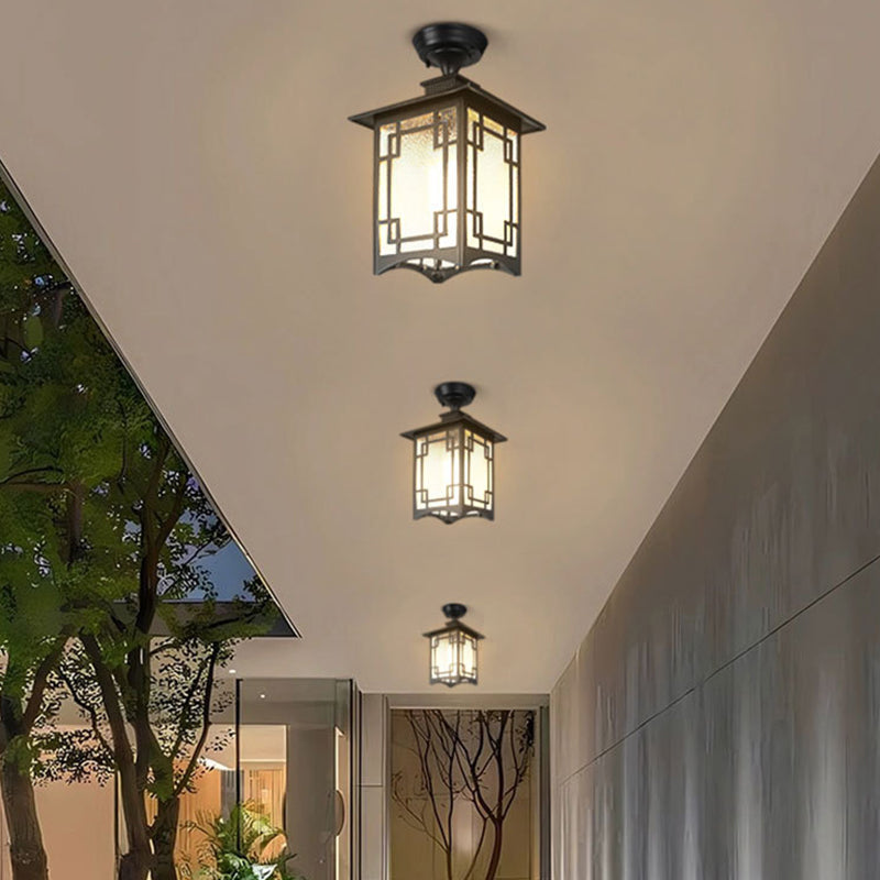 Traditional Chinese Dome Square Cube Aluminum Iron Glass Waterproof 1 - Light Semi-Flush Mount Ceiling Light For Hallways