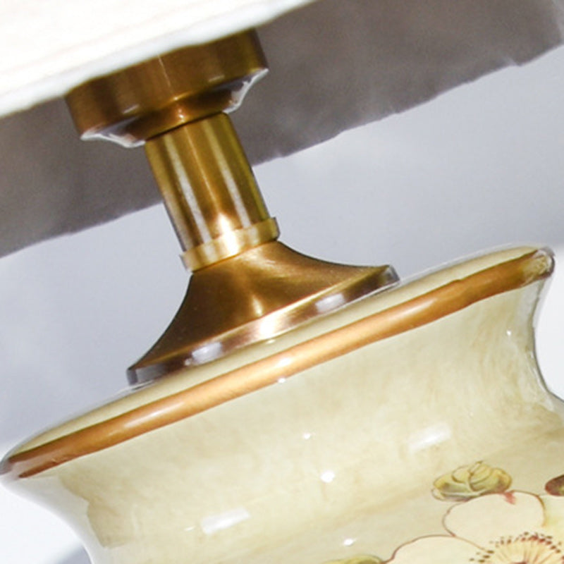 Traditional Chinese Drum Ceramic Fabric 1-Light Table Lamp For Living Room