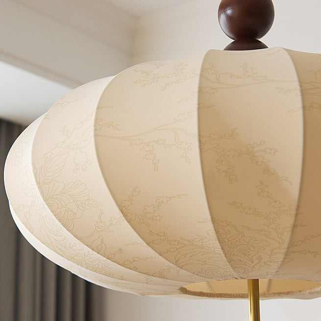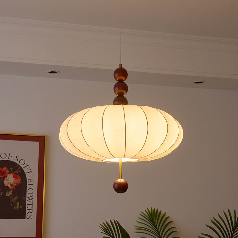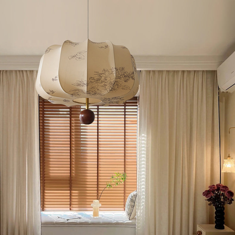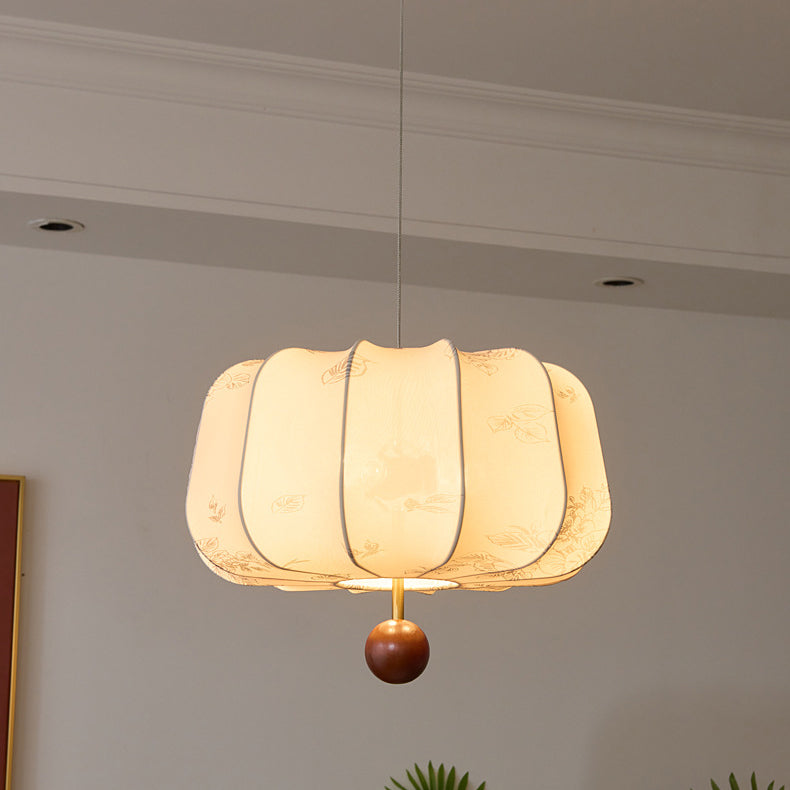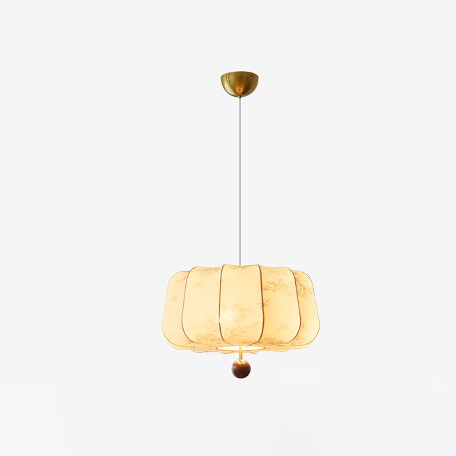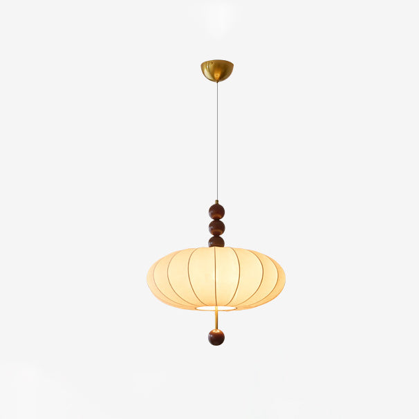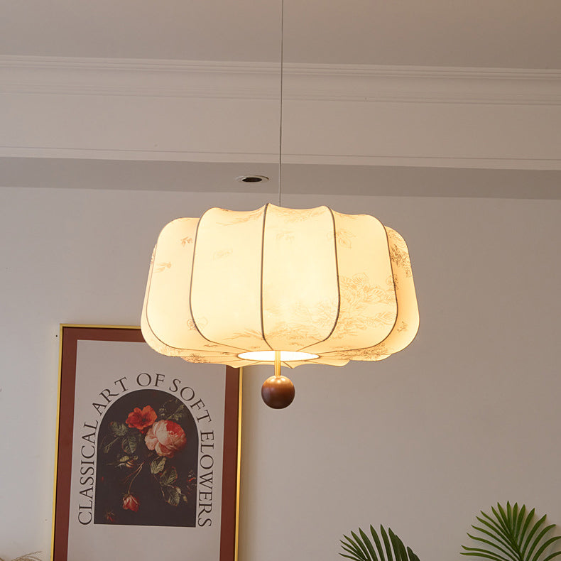Traditional Chinese Flat Round Fabric Wood 3/4 Light Pendant Light For Bedroom