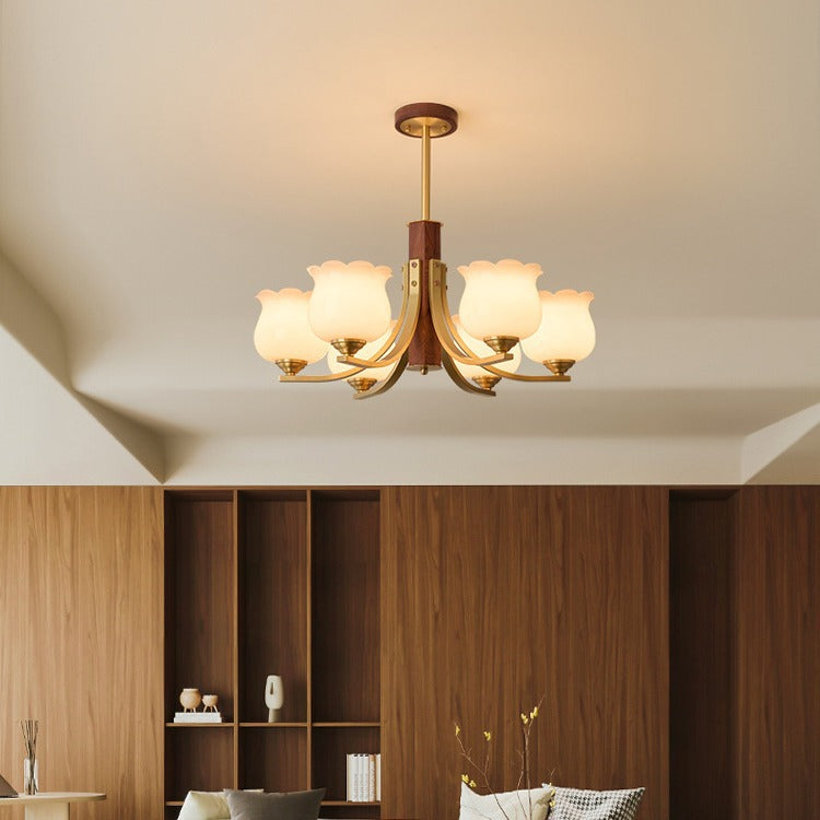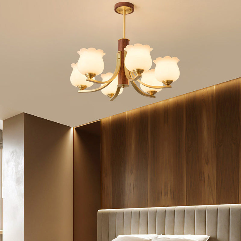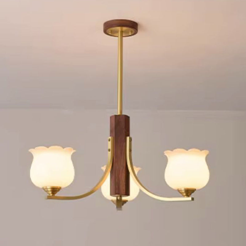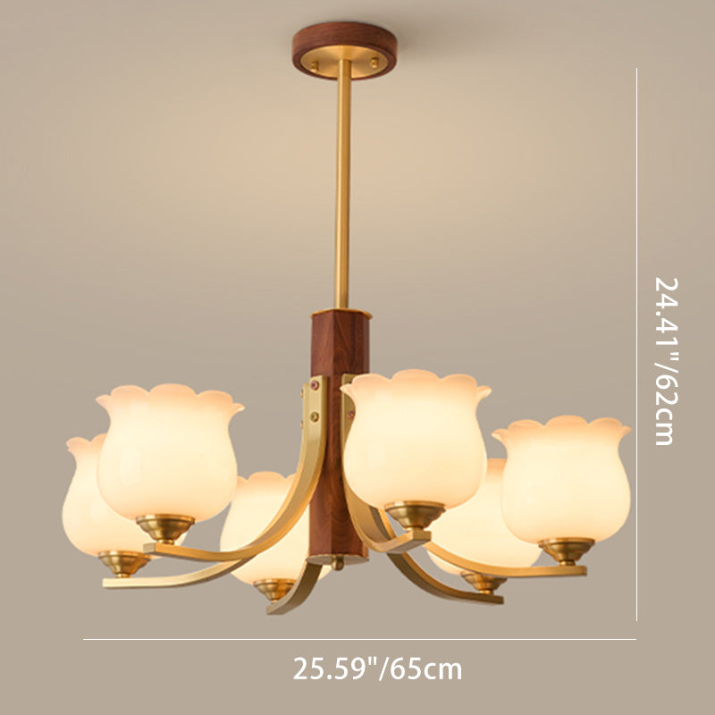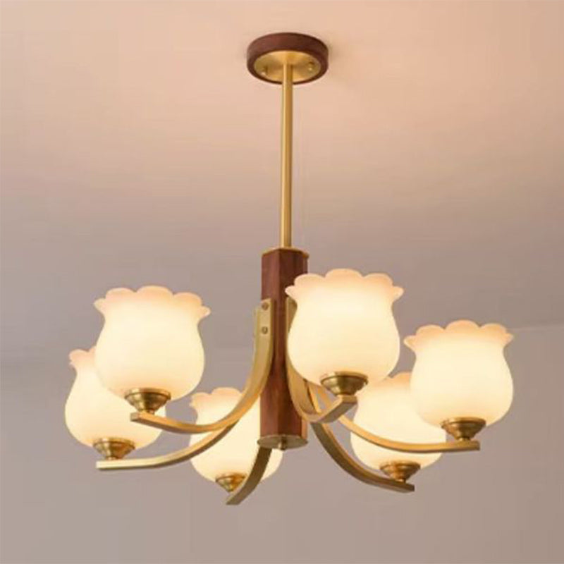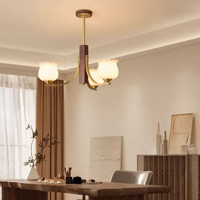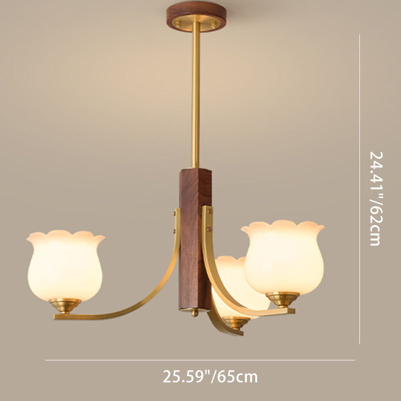 Traditional Chinese Flower Wood Copper Resin 3/6-Light Chandelier For Living Room