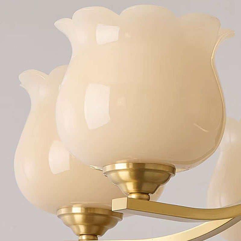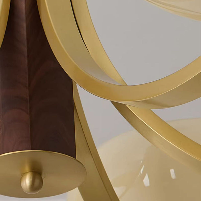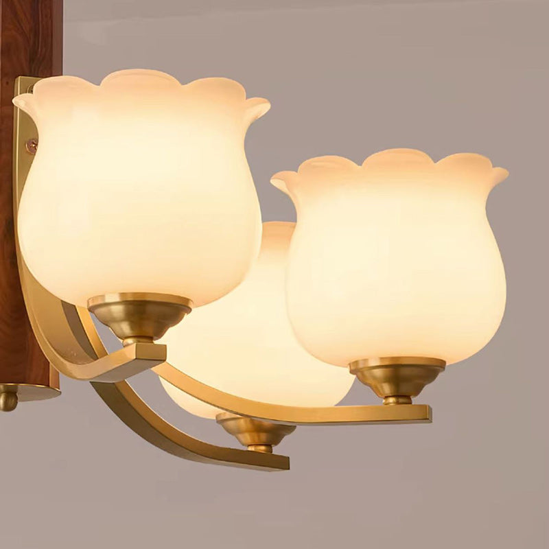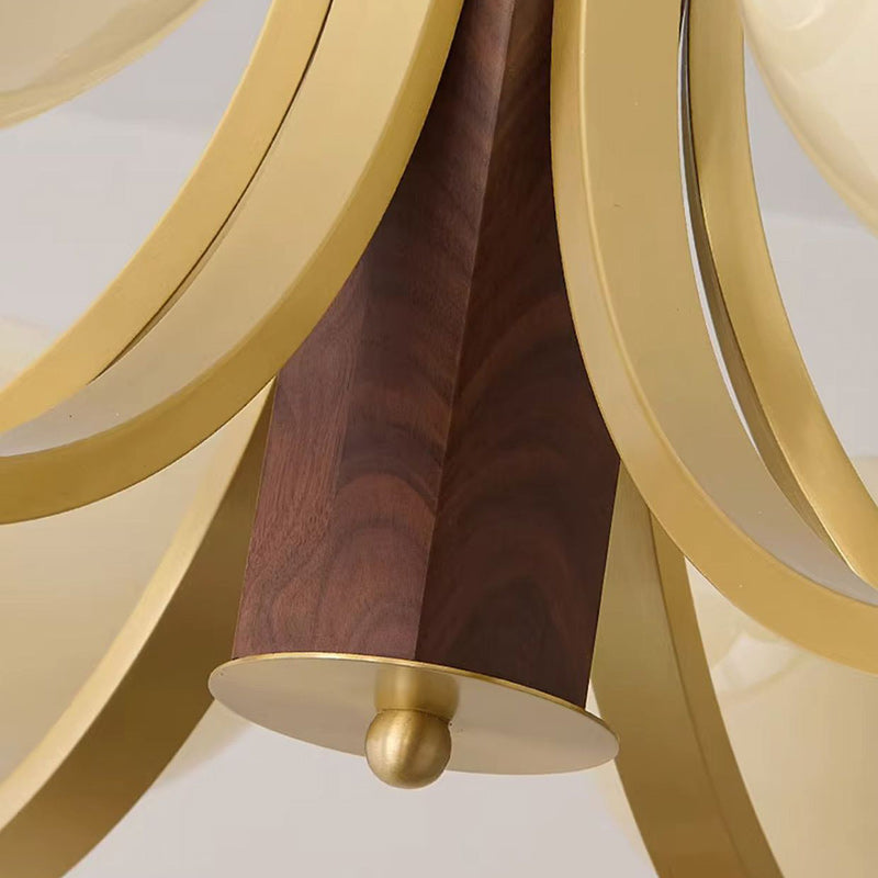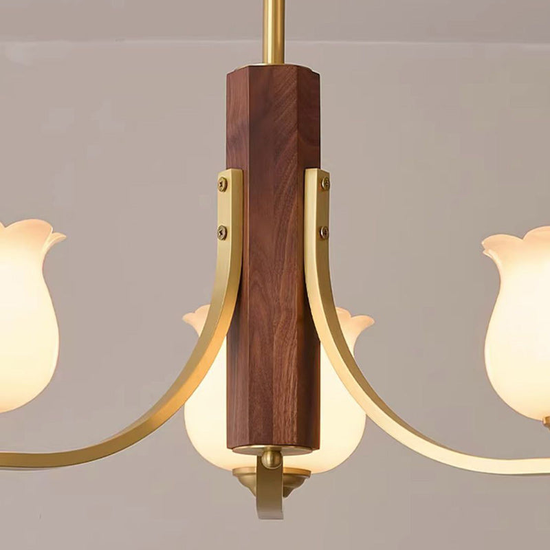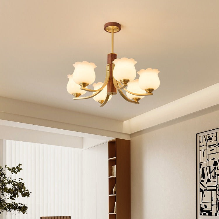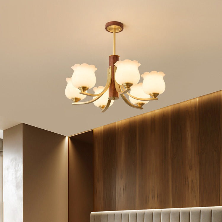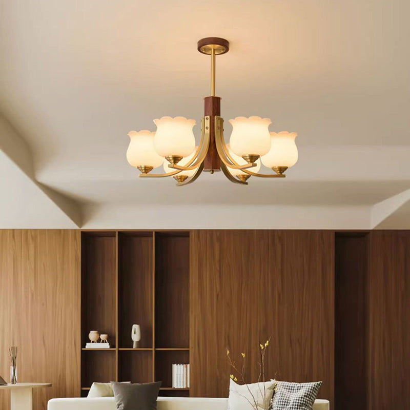 Traditional Chinese Flower Wood Copper Resin 3/6-Light Chandelier For Living Room