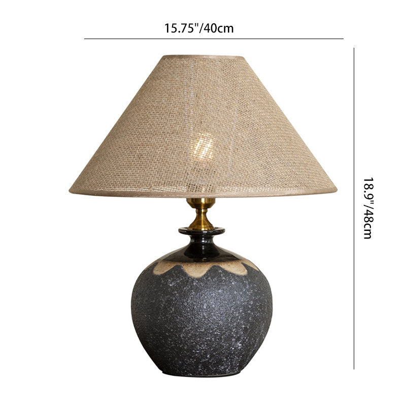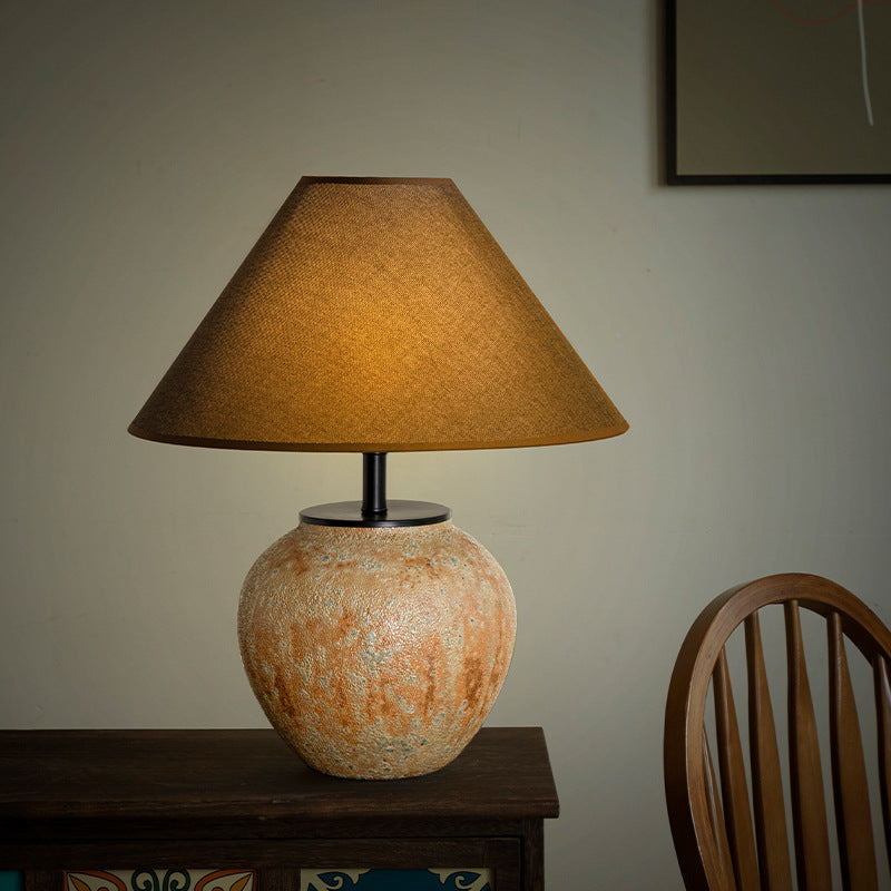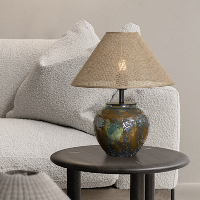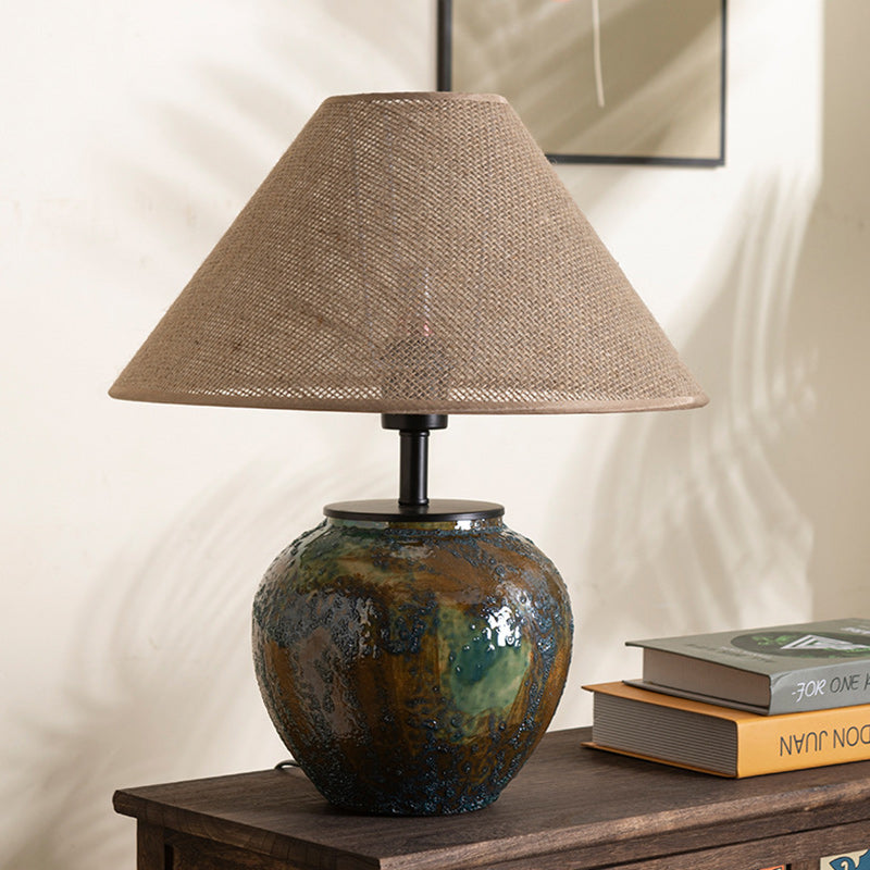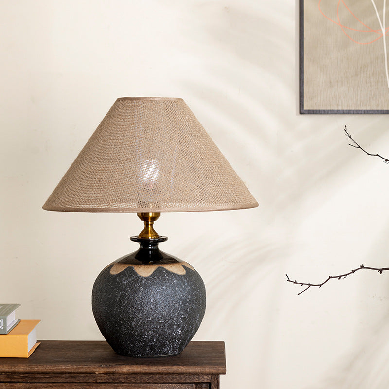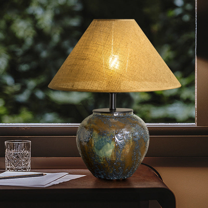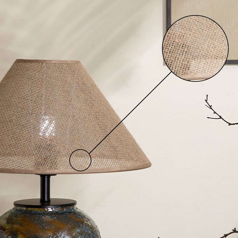 Traditional Chinese Frustum Cone Ceramic Metal Fabric 1-Light Table Lamp For Bedroom