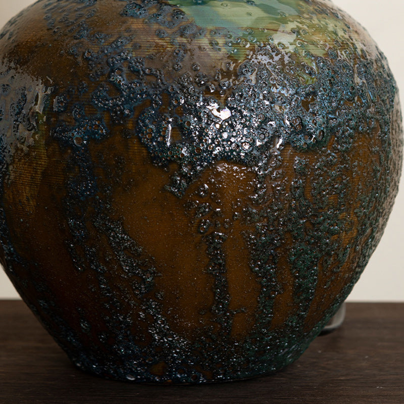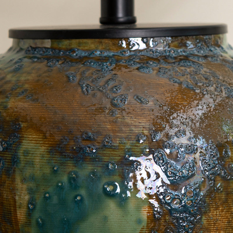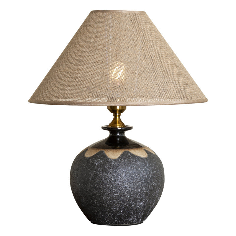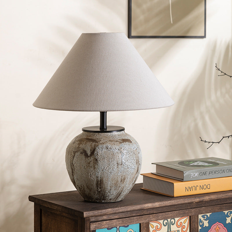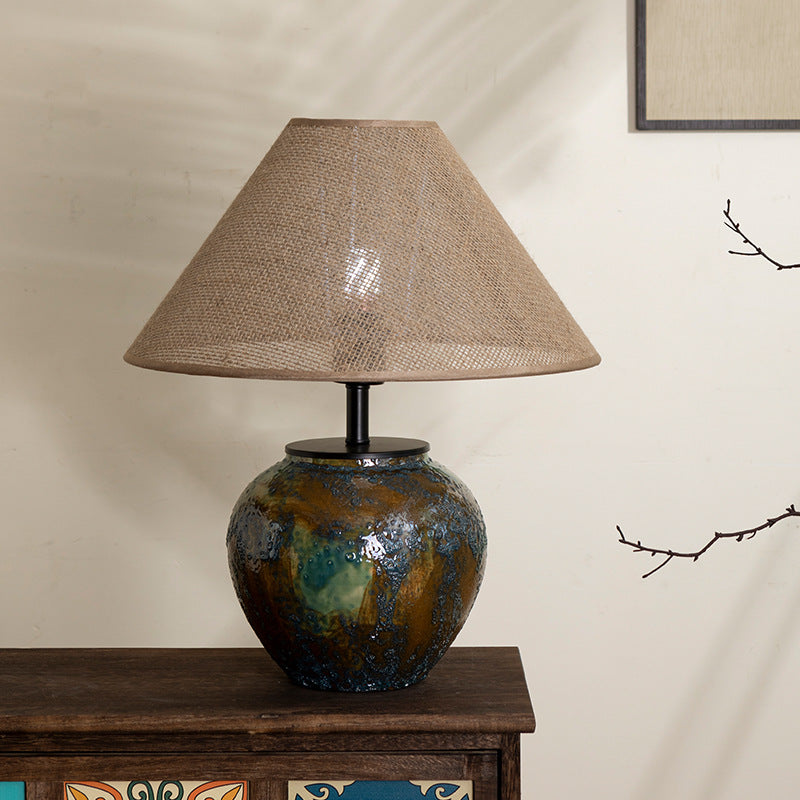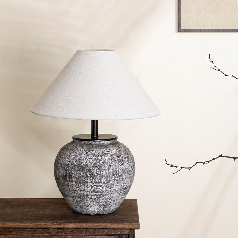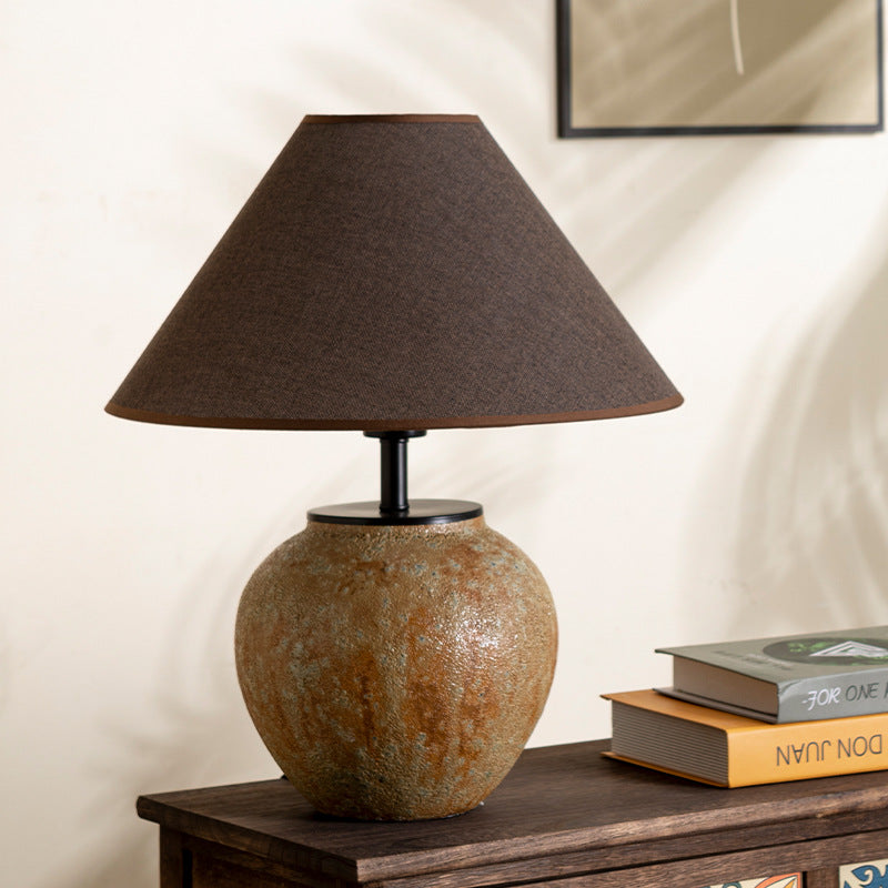 Traditional Chinese Frustum Cone Ceramic Metal Fabric 1-Light Table Lamp For Bedroom