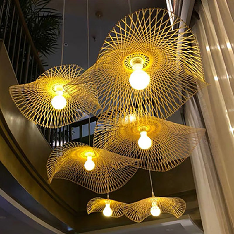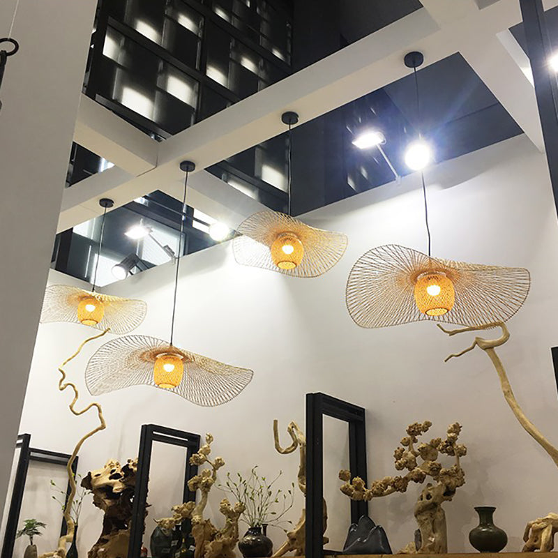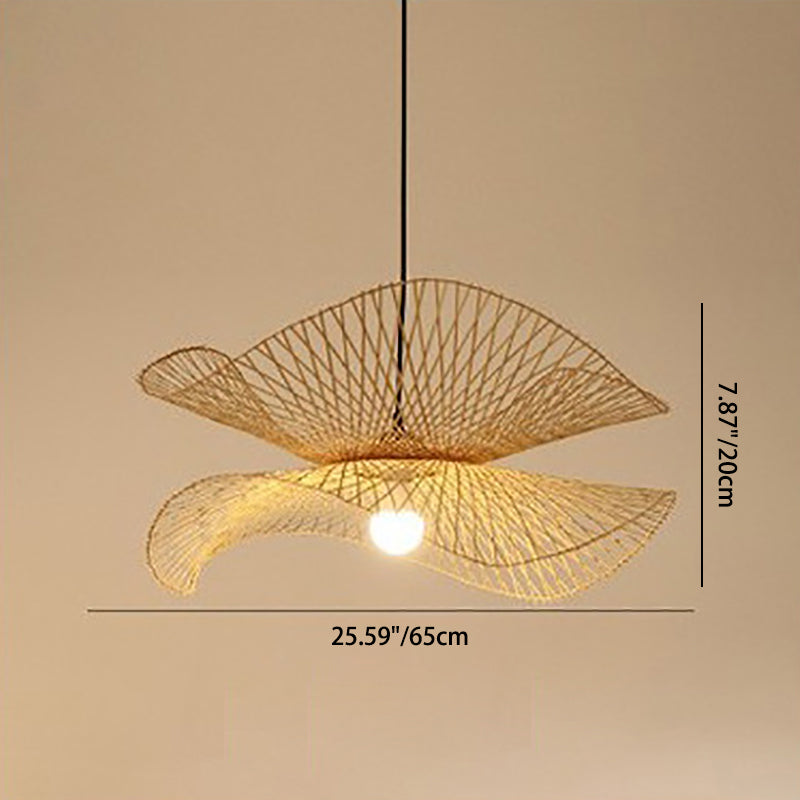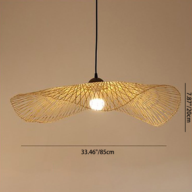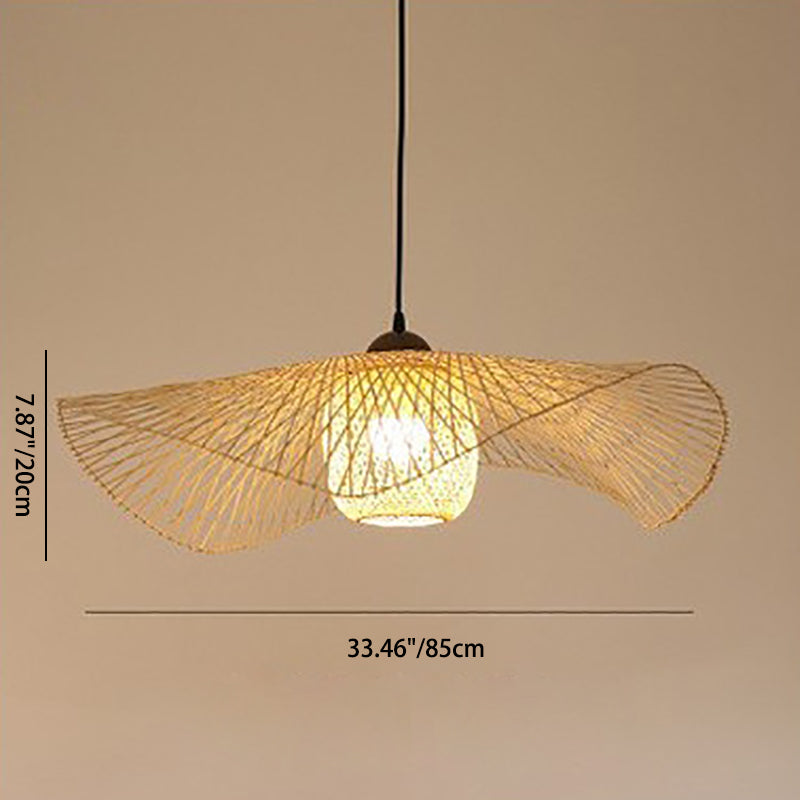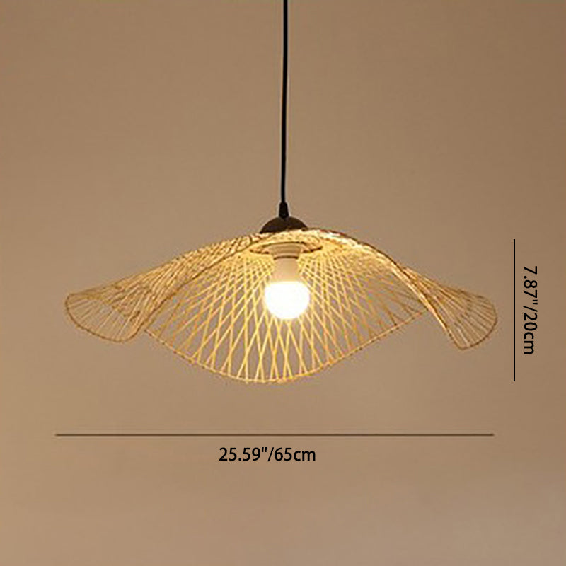 Traditional Chinese Iron Bamboo Weaving Hat Irregular Round Ball 1-Light Pendant Light For Dining Room