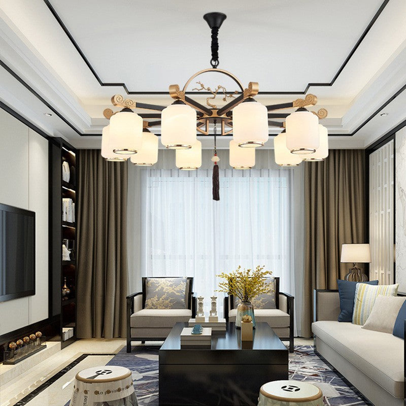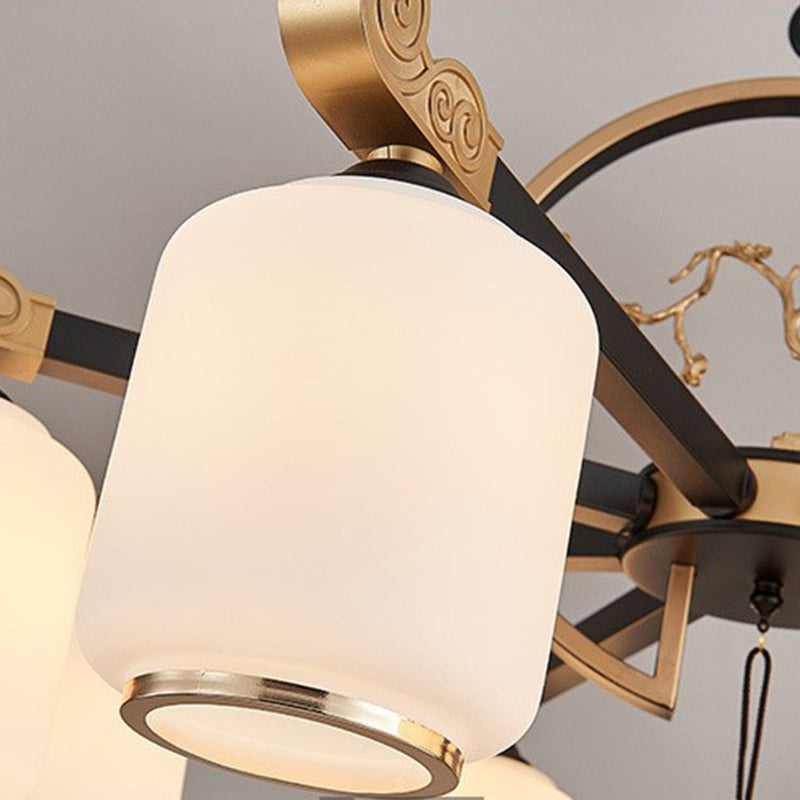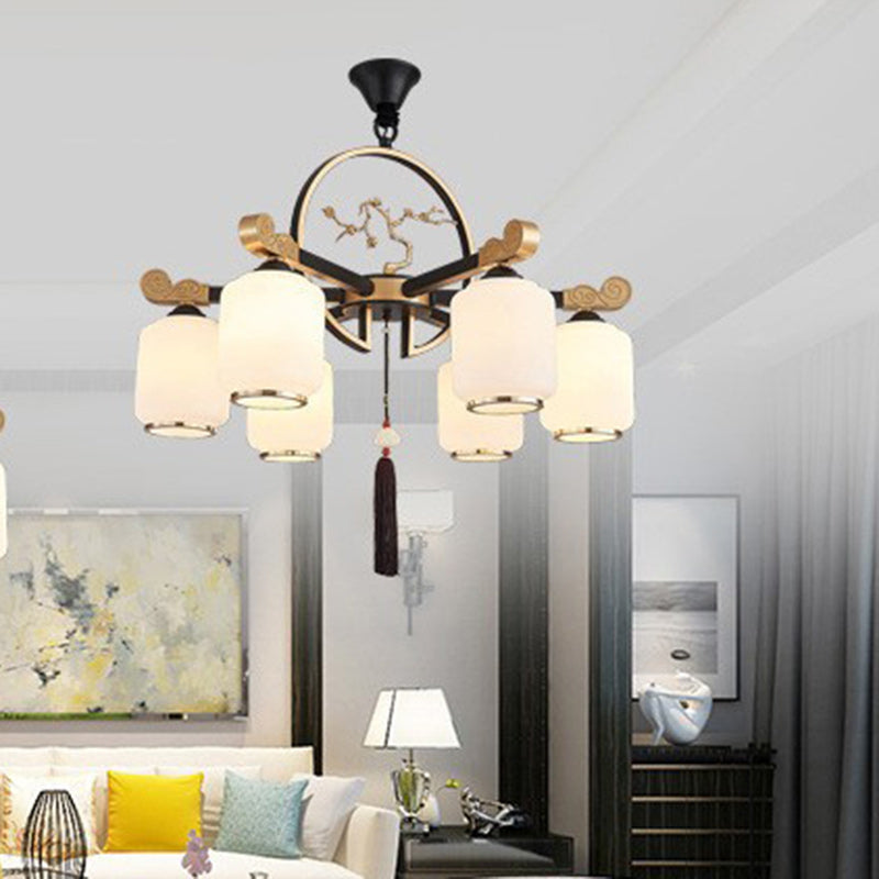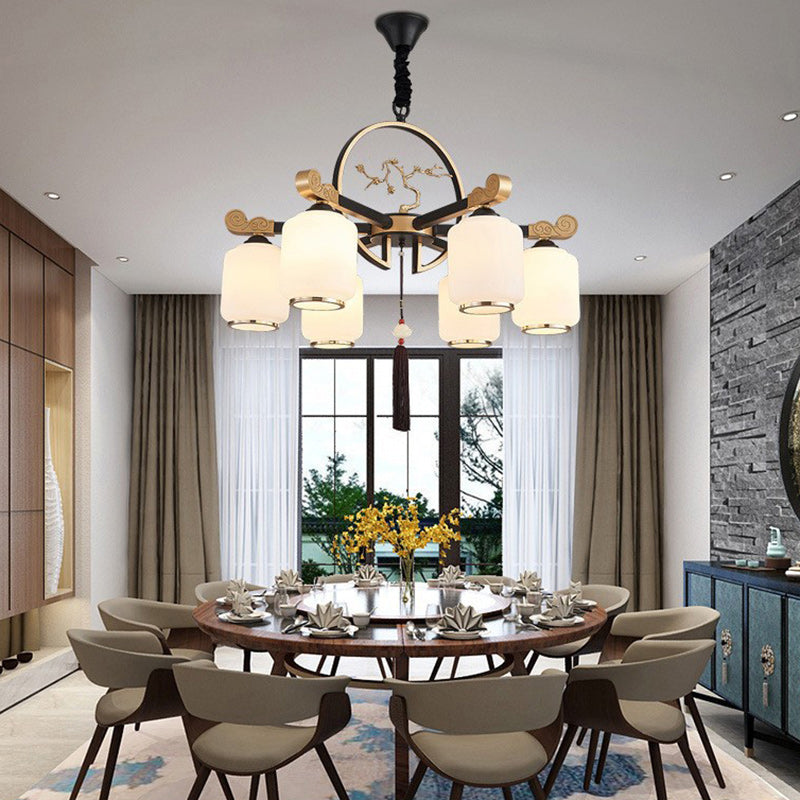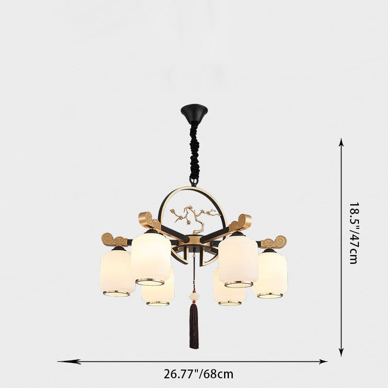 Traditional Chinese Iron Glass Lantern Shape 6/8/10 - Light Chandeliers For Living Room