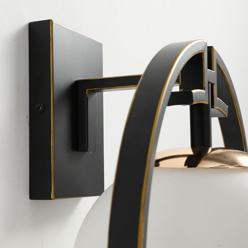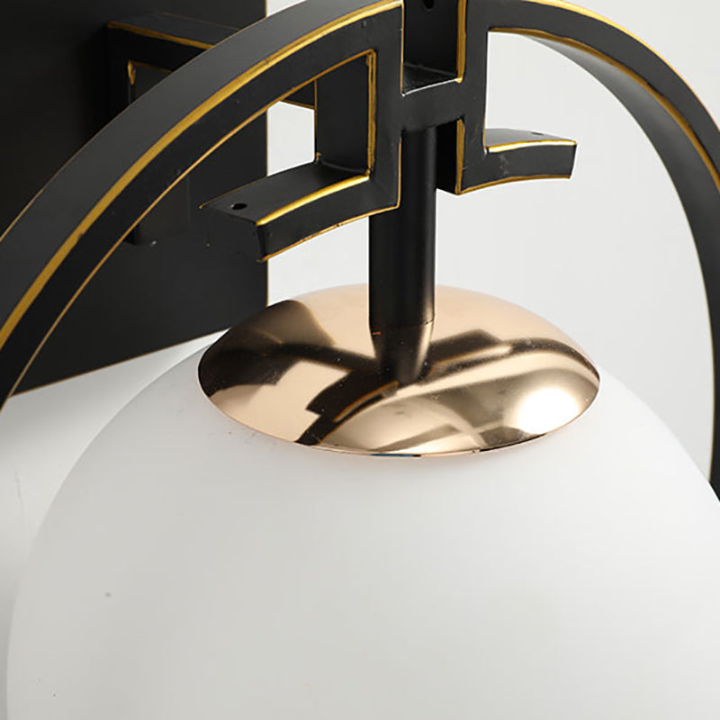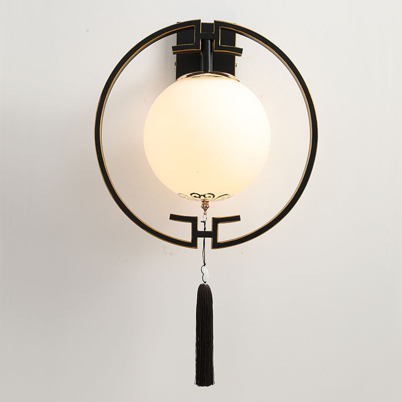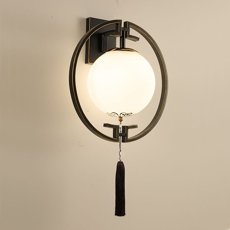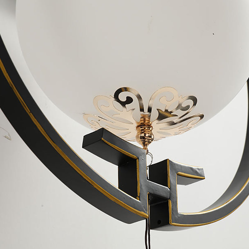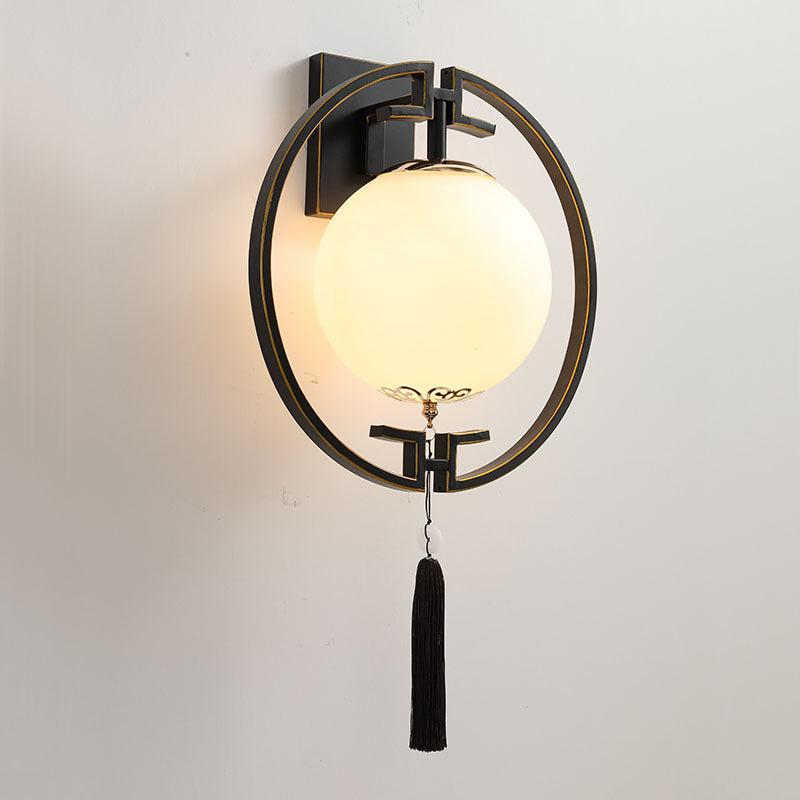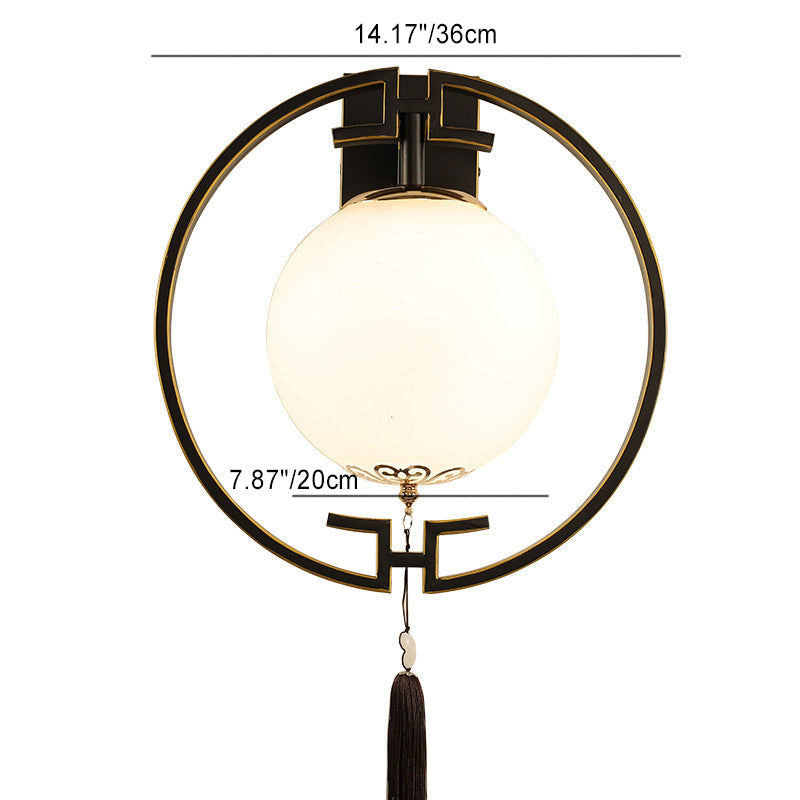 Traditional Chinese Iron Glass Round Ball 1-Light Wall Sconce Lamp For Hallway