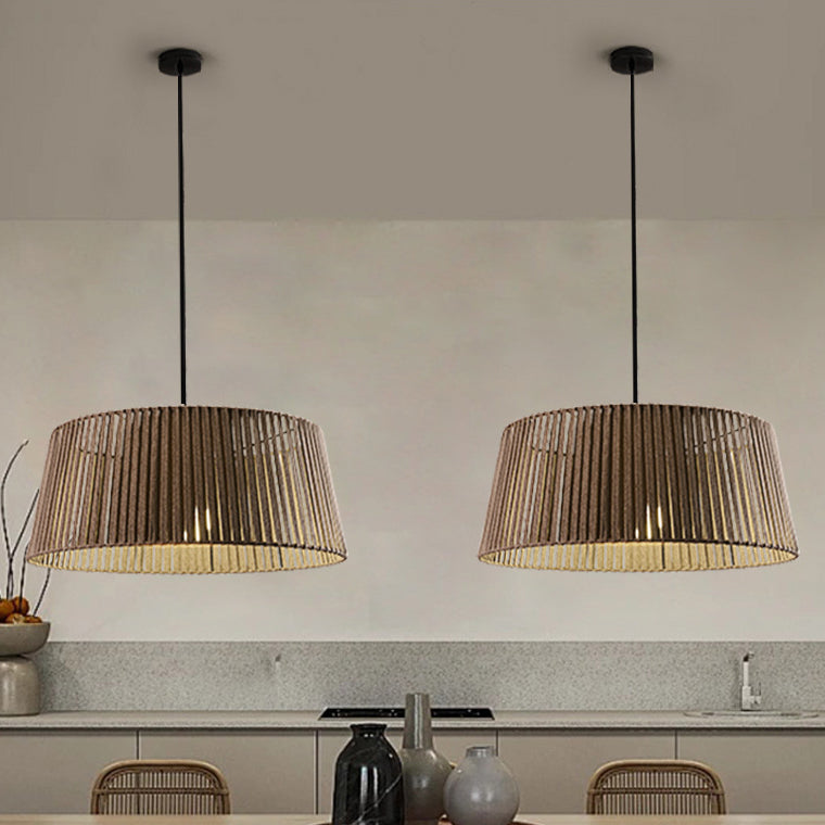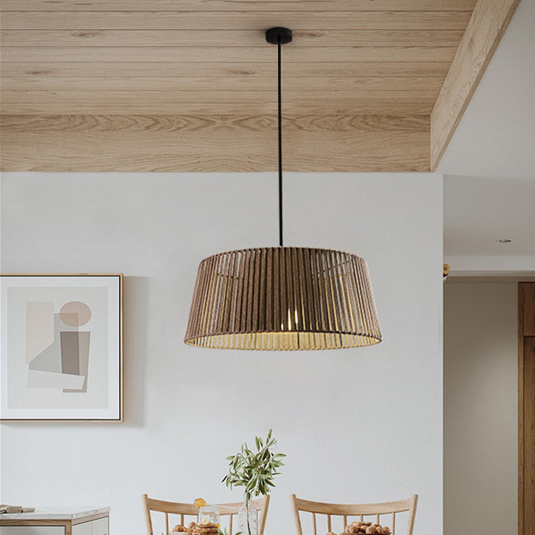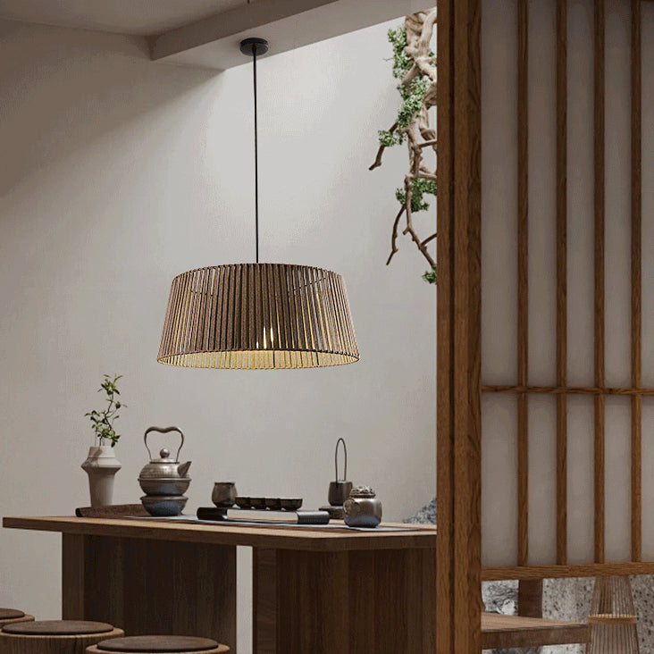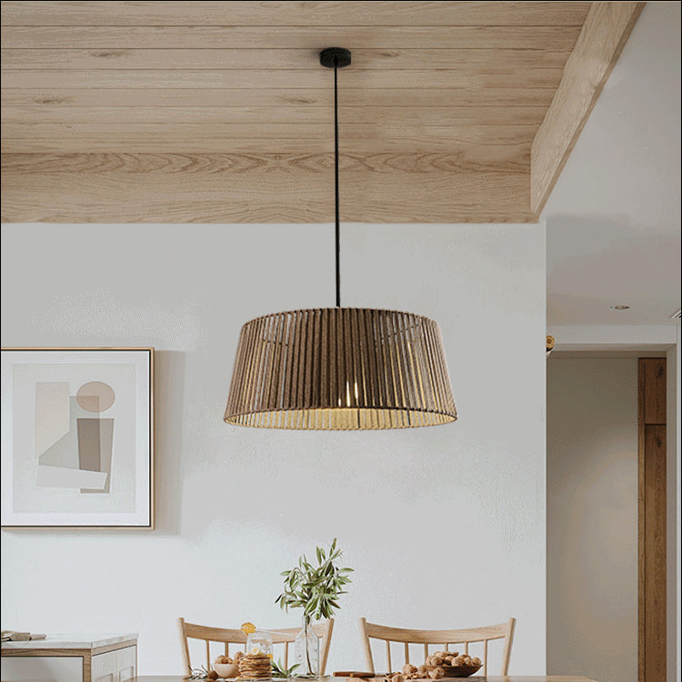 Immerse your living space in the charm of east Asian decor with our Traditional Chinese Iron Hemp Rope Round Pendant Light. This 1-light fixture infuses your room with a warm, inviting glow, setting the perfect ambiance for relaxation or entertaining. The blend of sturdy iron and natural hemp rope creates a unique, rustic aesthetic that is sure to stand out. The pendant's round shape and line shade add a touch of elegance to your interior design, creating a statement piece that complements both traditional and modern decors. Plus, its adjustable hanging cord ensures it fits perfectly in your space, whether high or low ceilings. Experience the fusion of style and function with this exceptional piece of lighting decor.