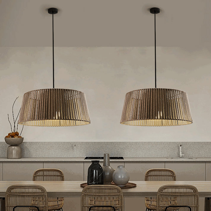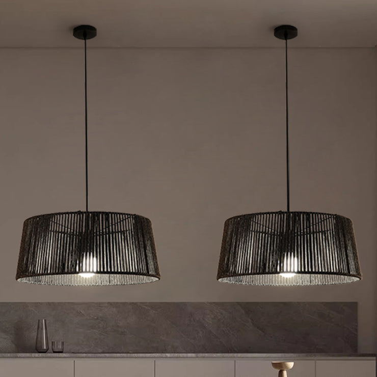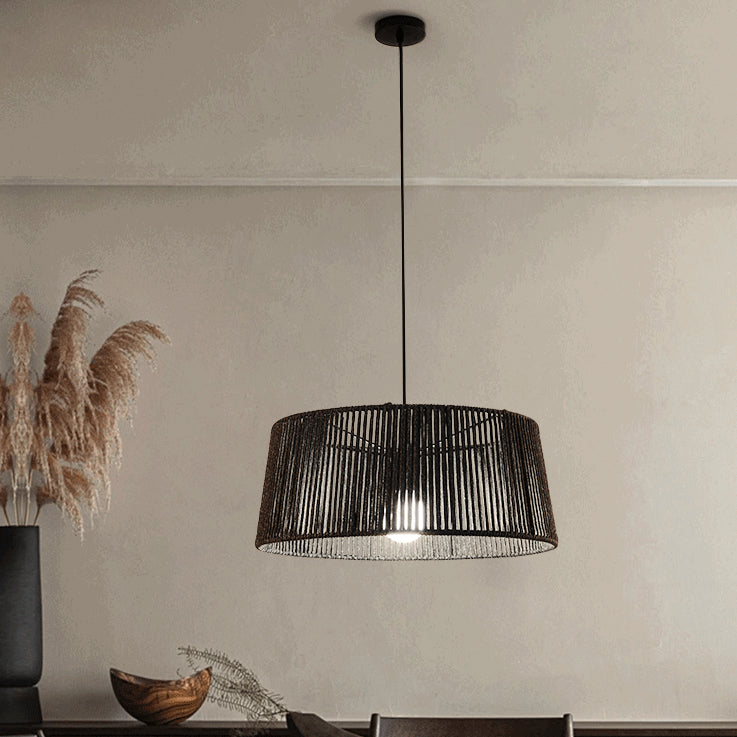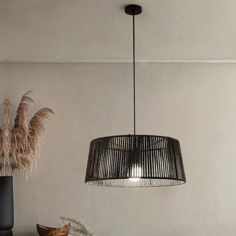 Traditional Chinese Iron Hemp Rope Round 1-Light Pendant Light For Living Room