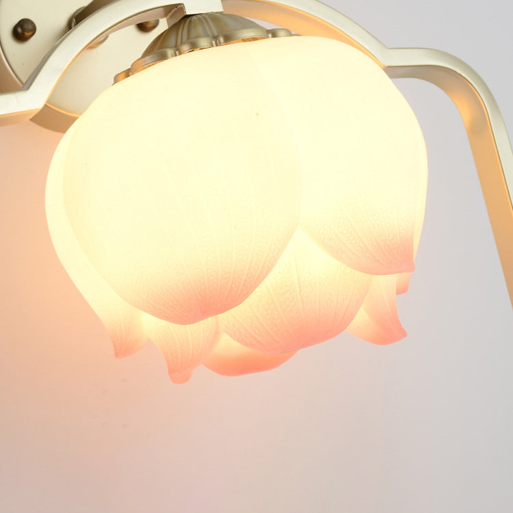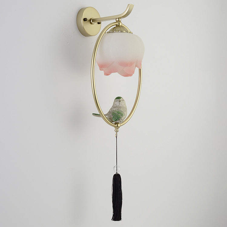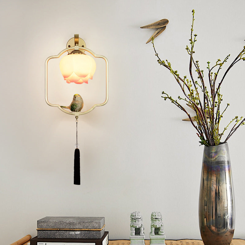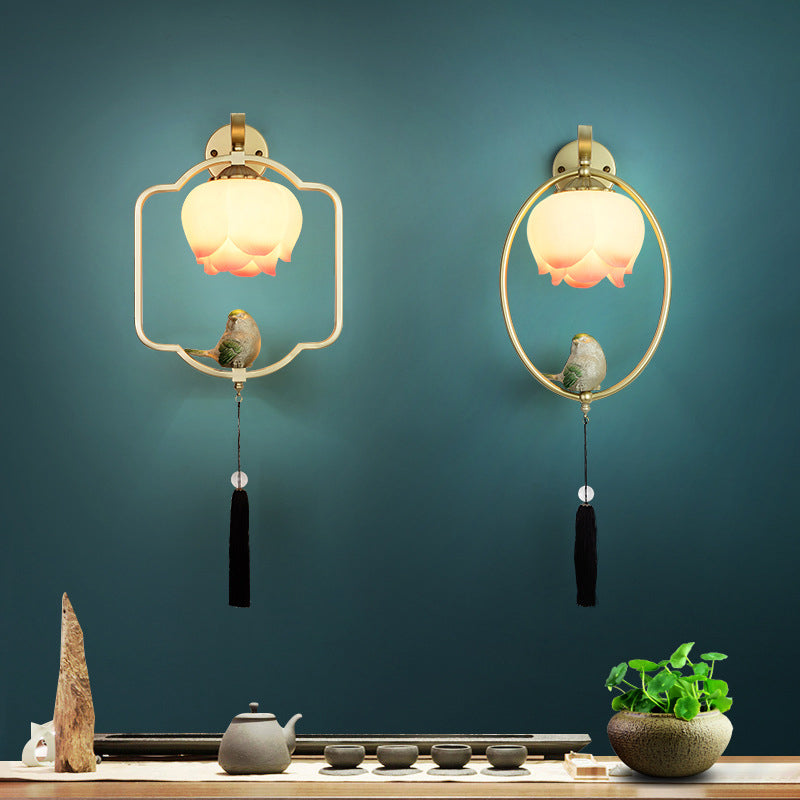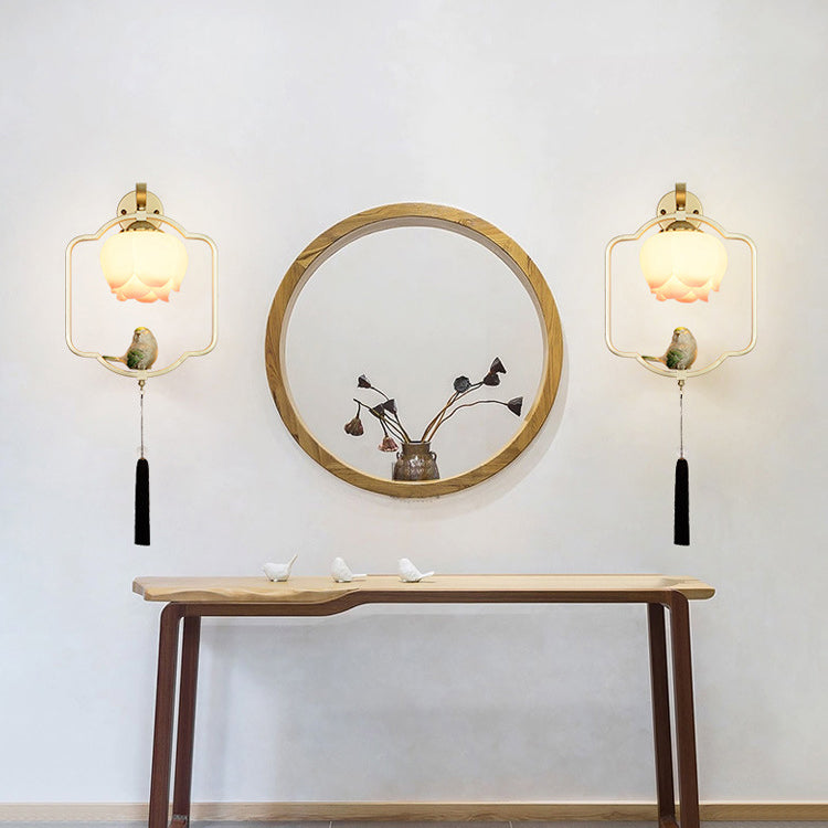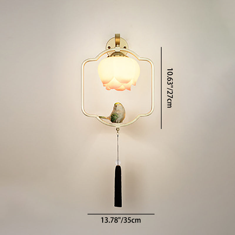 Traditional Chinese Iron Resin Lotus Flower Elliptical Irregular Shape 1-Light Wall Sconce Lamp For Dining Room