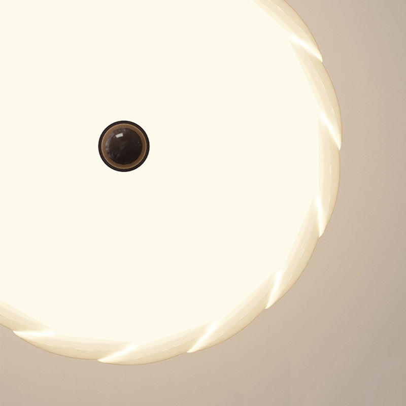 Crafted from iron, natural wood, and durable PE, this semi-flush mount ceiling light features a soft wavy round design with subtle folds, adding a touch of vintage Eastern charm. The high-performance LED delivers high color accuracy, zero blue light hazard, and fast heat dissipation—ideal for a cozy and healthy living room environment.