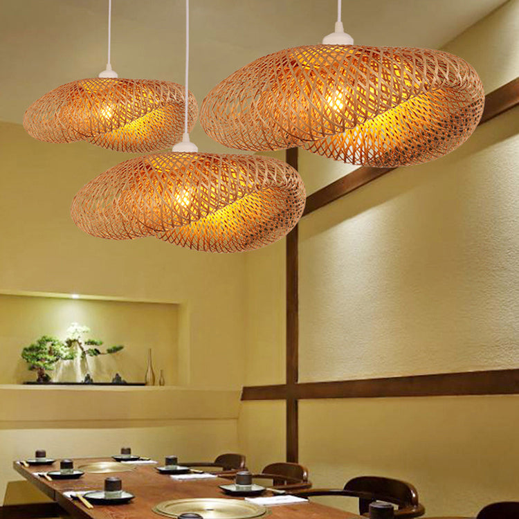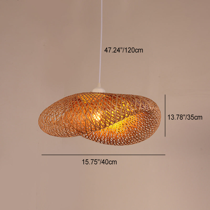 Traditional Chinese Irregular Hat Bamboo 1-Light Pendant Light For Living Room