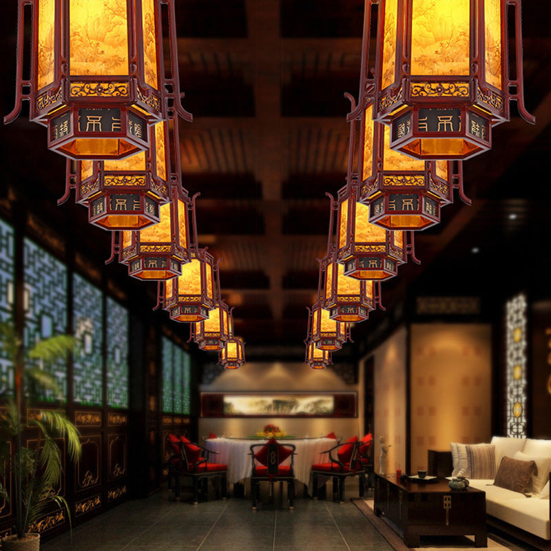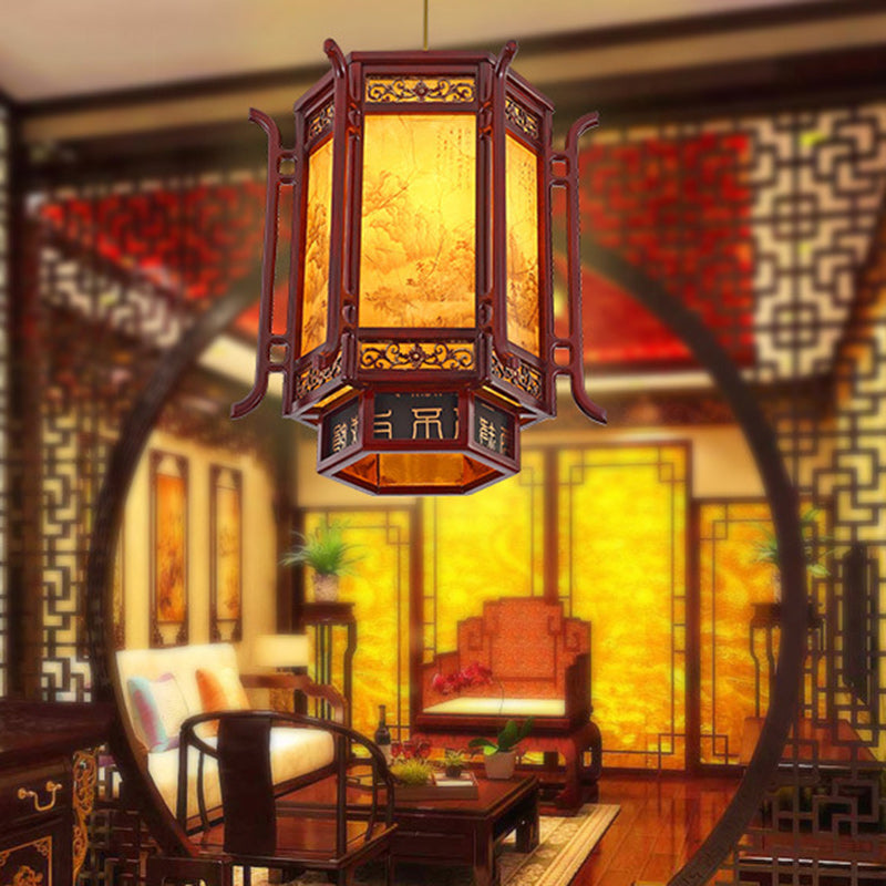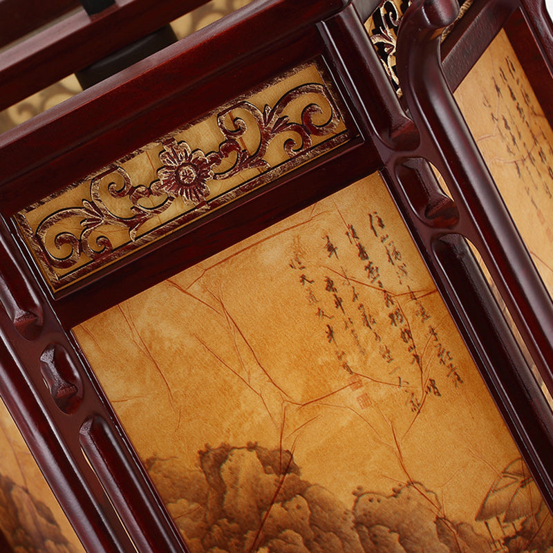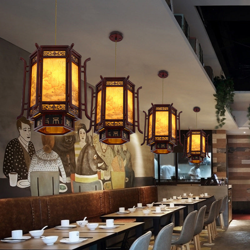 Traditional Chinese Lantern Shape Pine Imitation Sheepskin Lampshade 1 - Light Chandeliers For Dining Room
