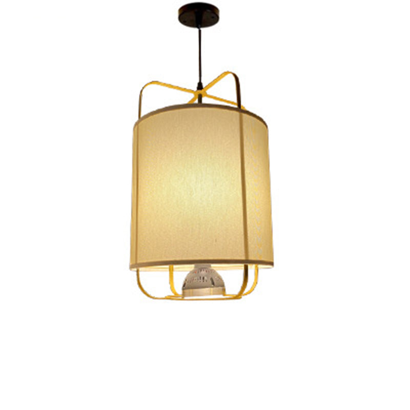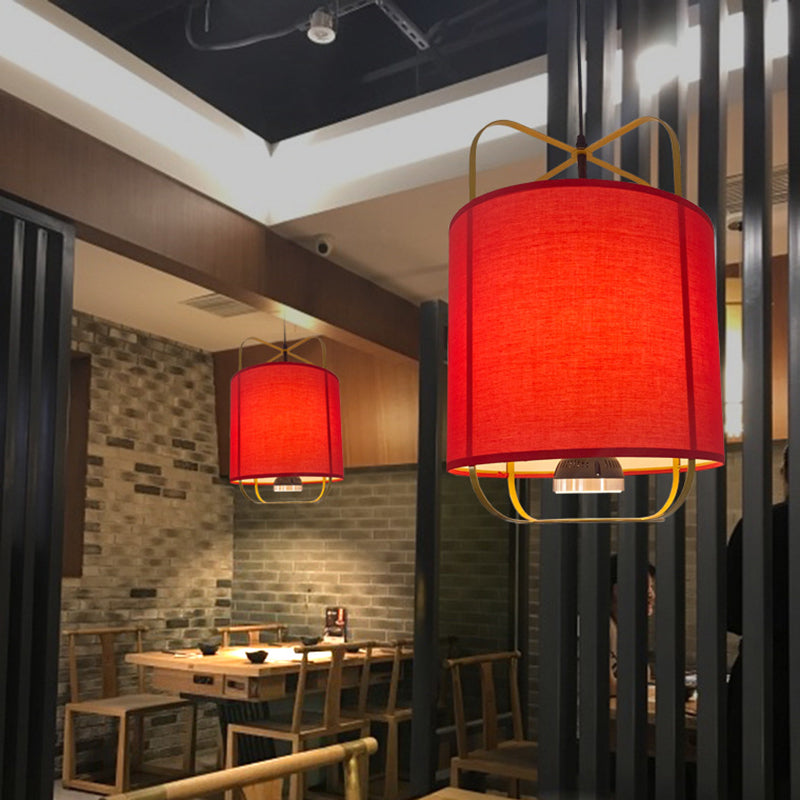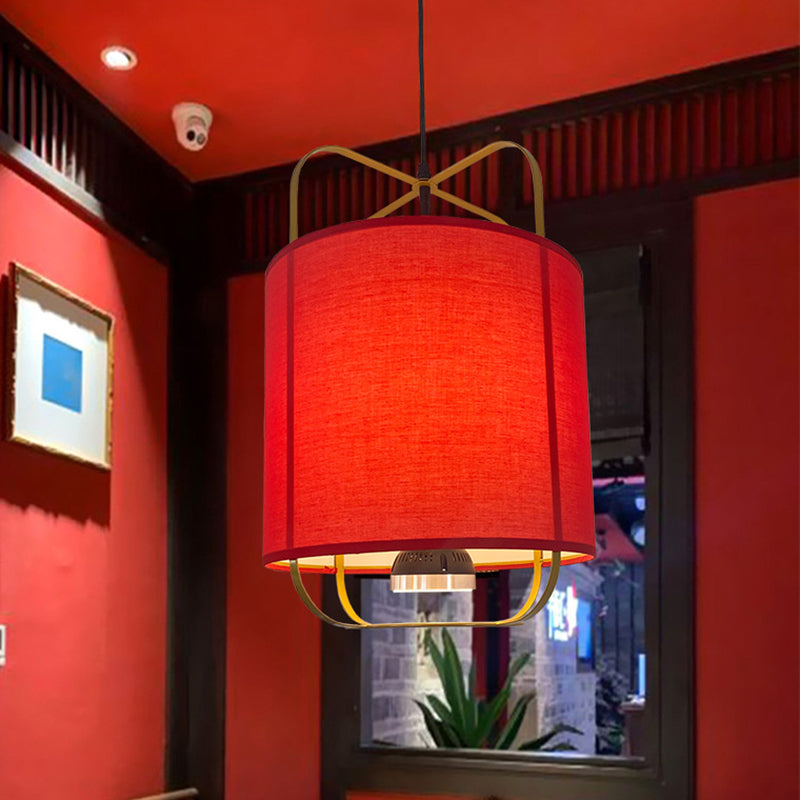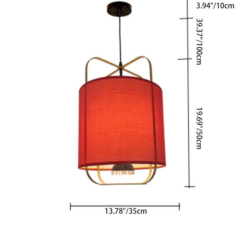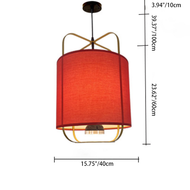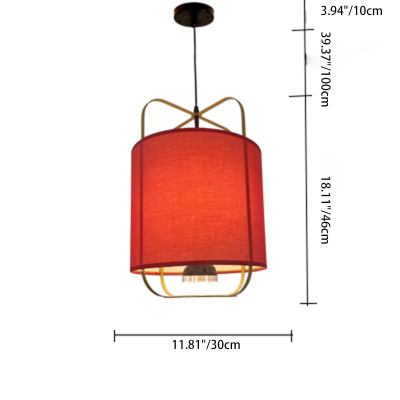 Traditional Chinese Lantern Shape Round Fabric Iron 2-Light Pendant Light For Living Room