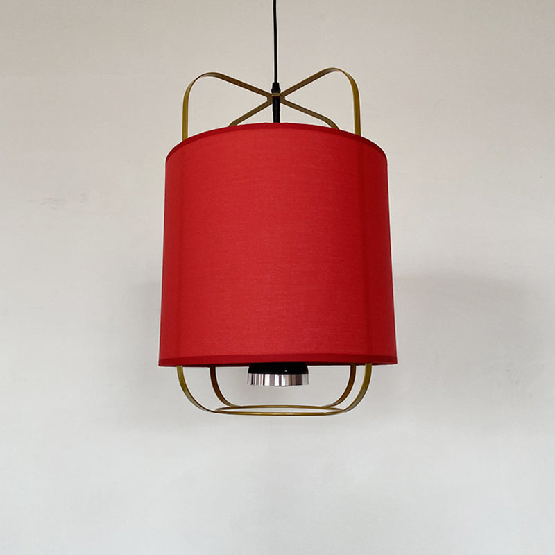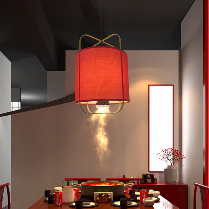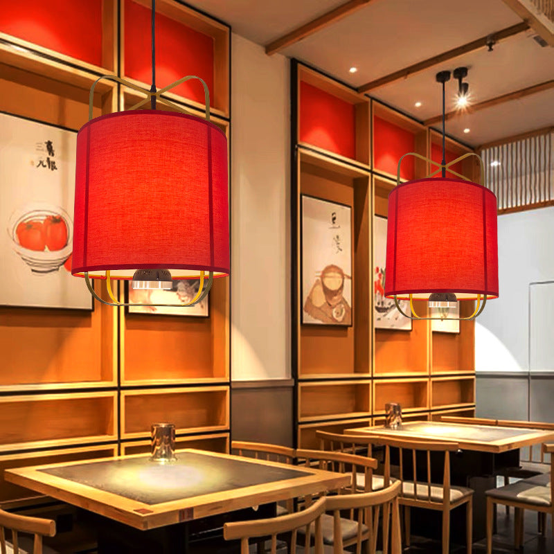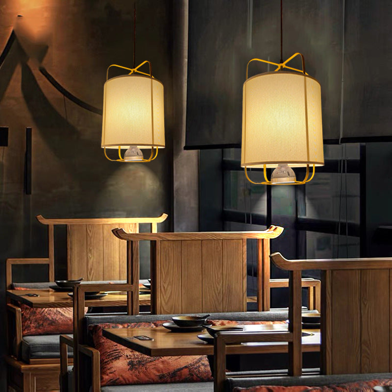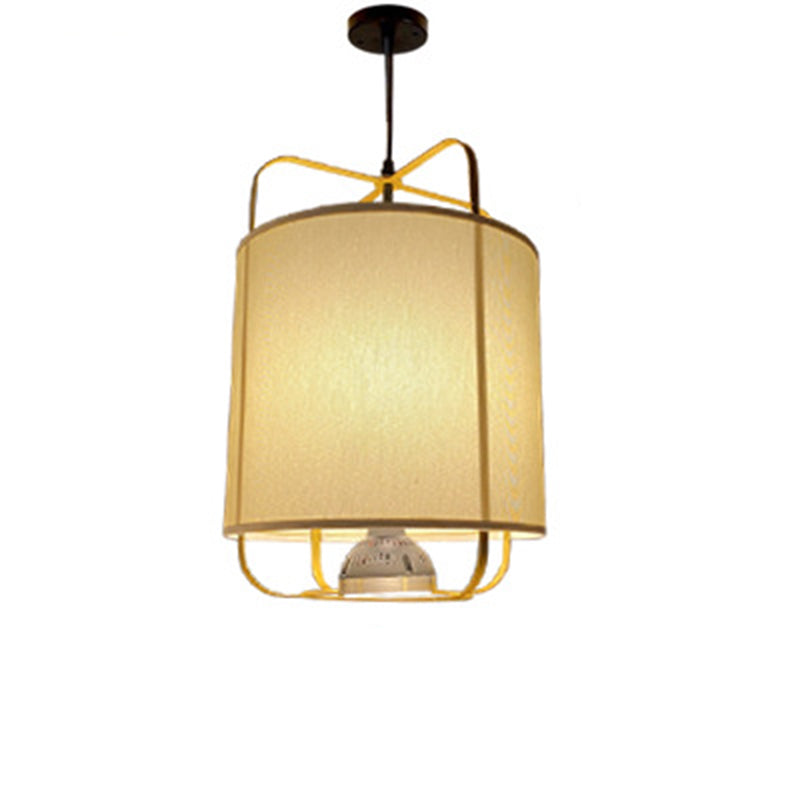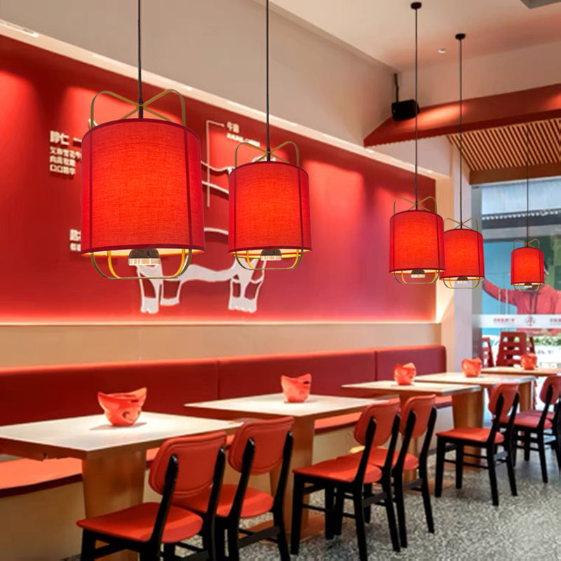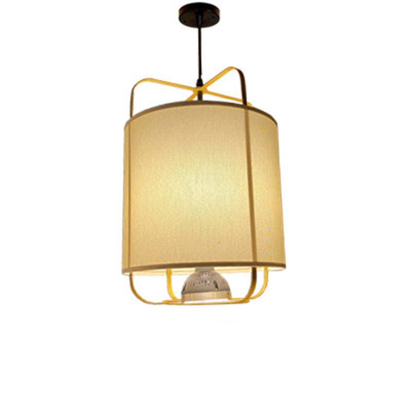 Traditional Chinese Lantern Shape Round Fabric Iron 2-Light Pendant Light For Living Room