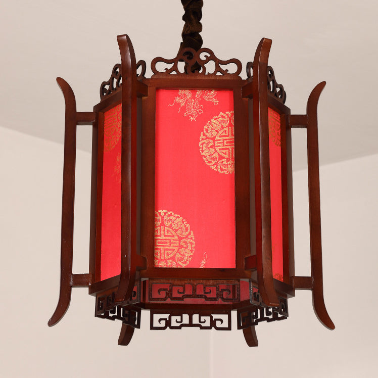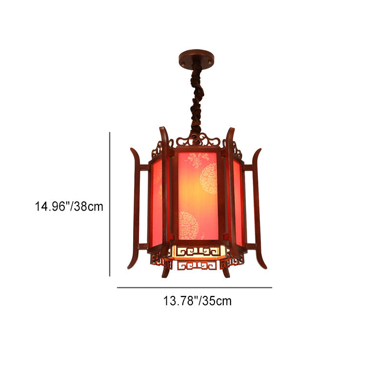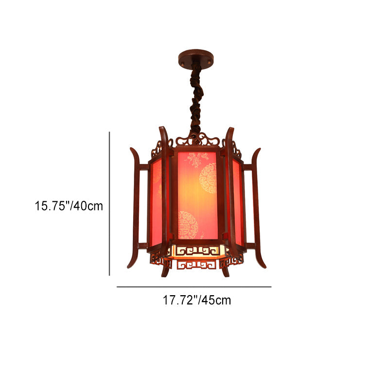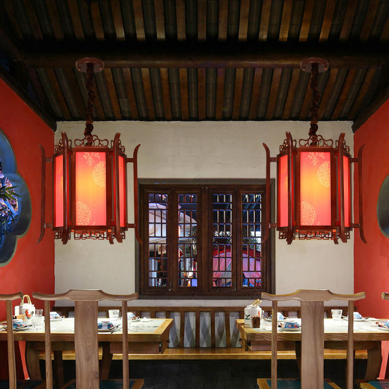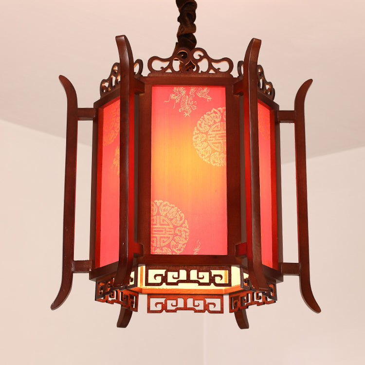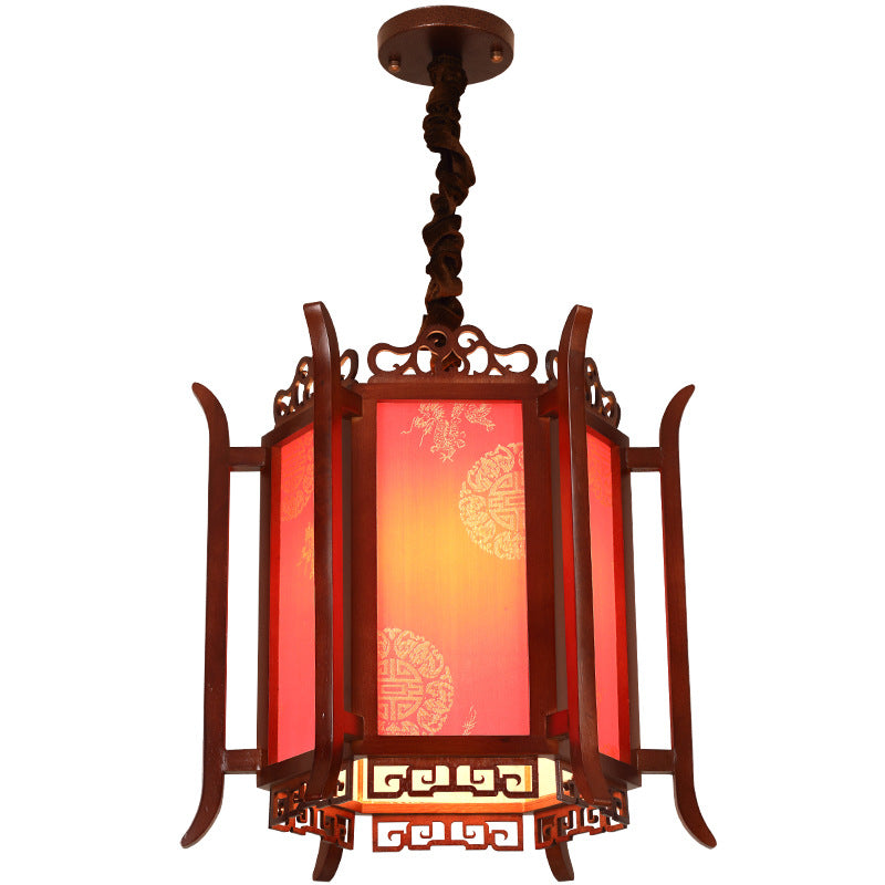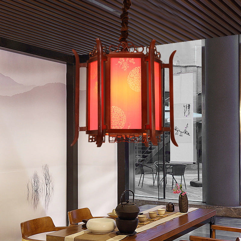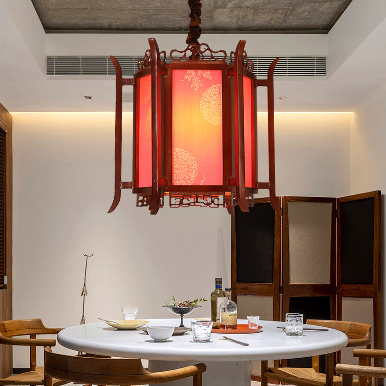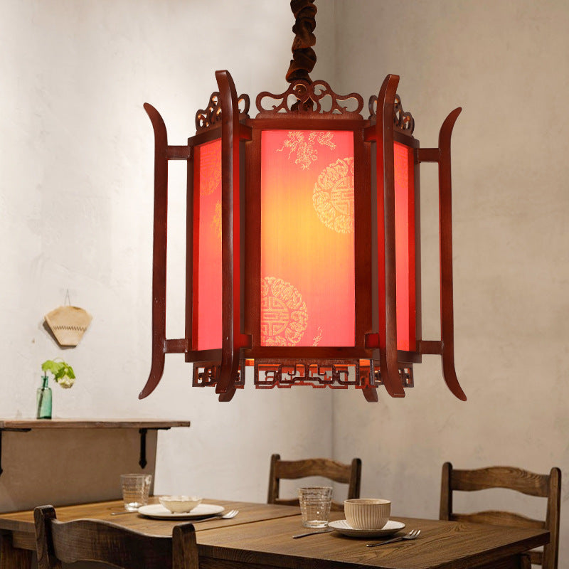 Traditional Chinese Lantern Shape Wood Imitation Sheepskin 1 - Light Pendant Light For Dining Room