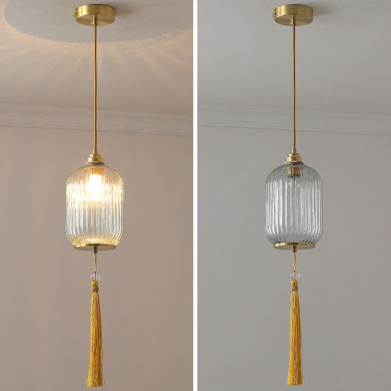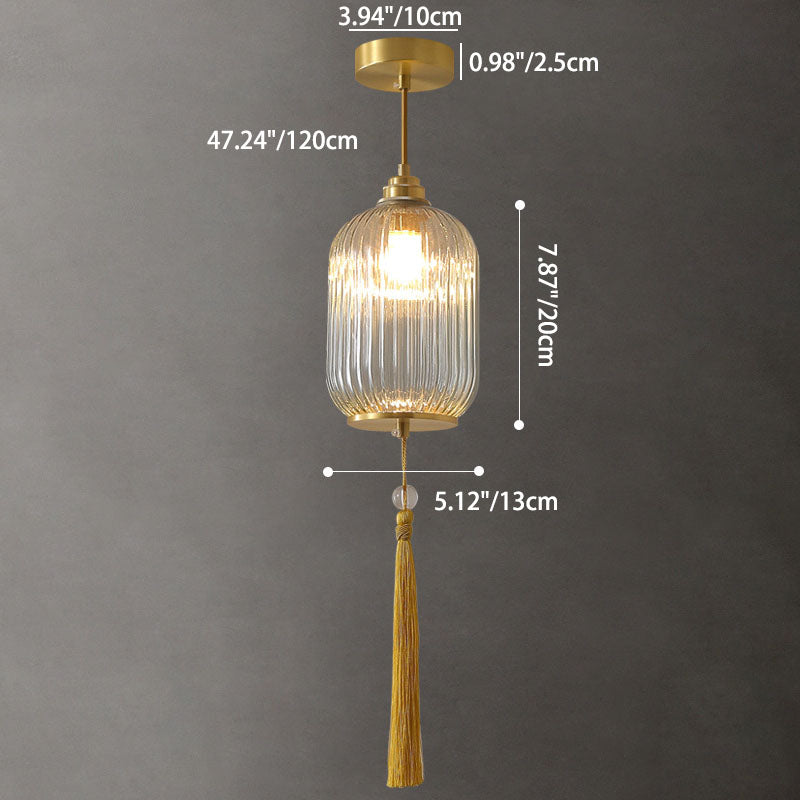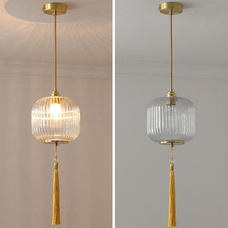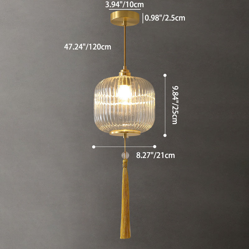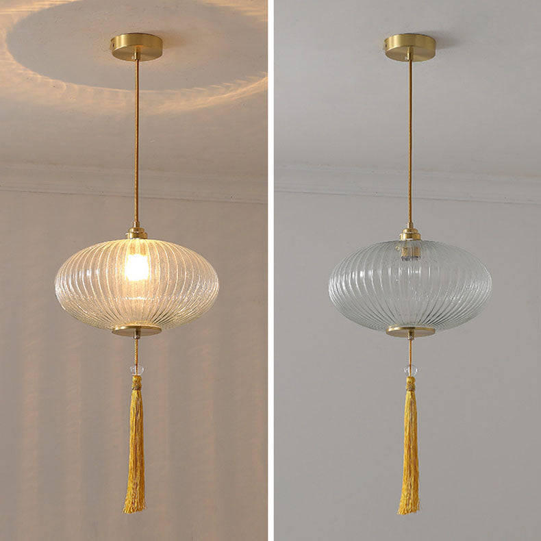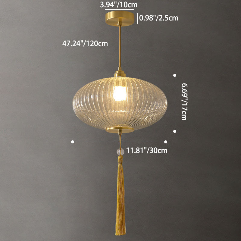 Traditional Chinese Lantern Spherical Copper Glass 1-Light Pendant Light For Bedroom
