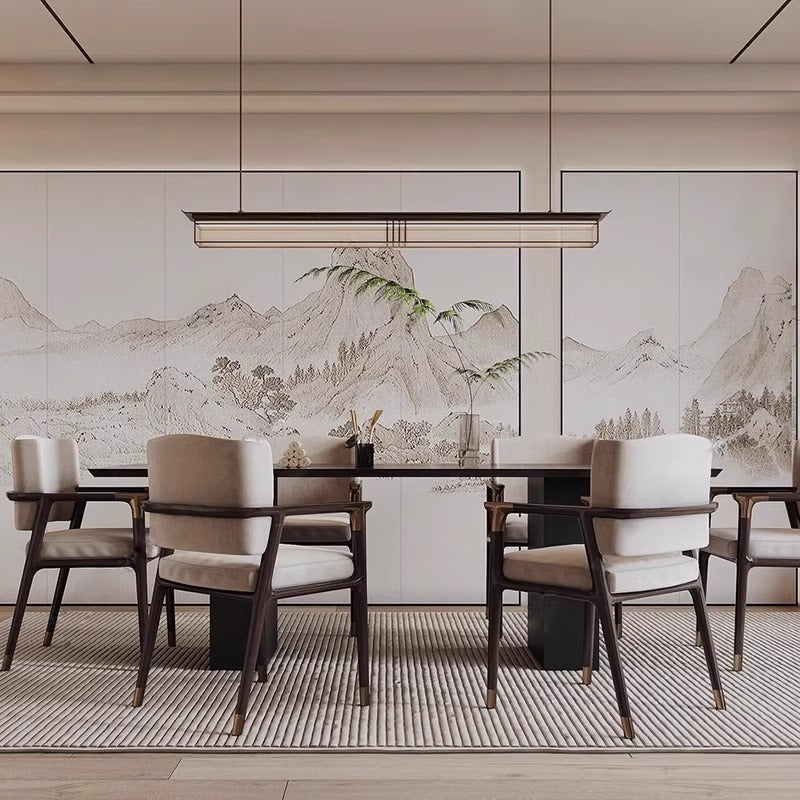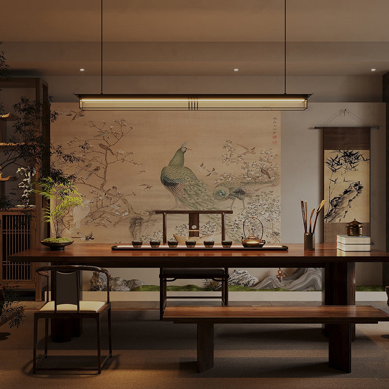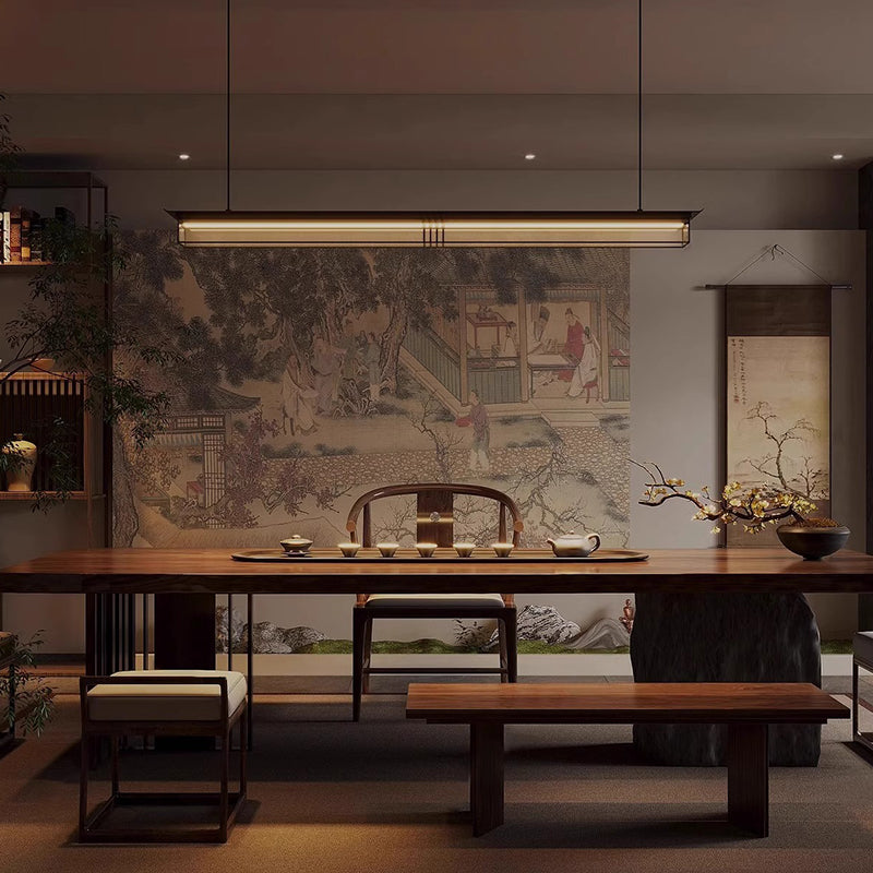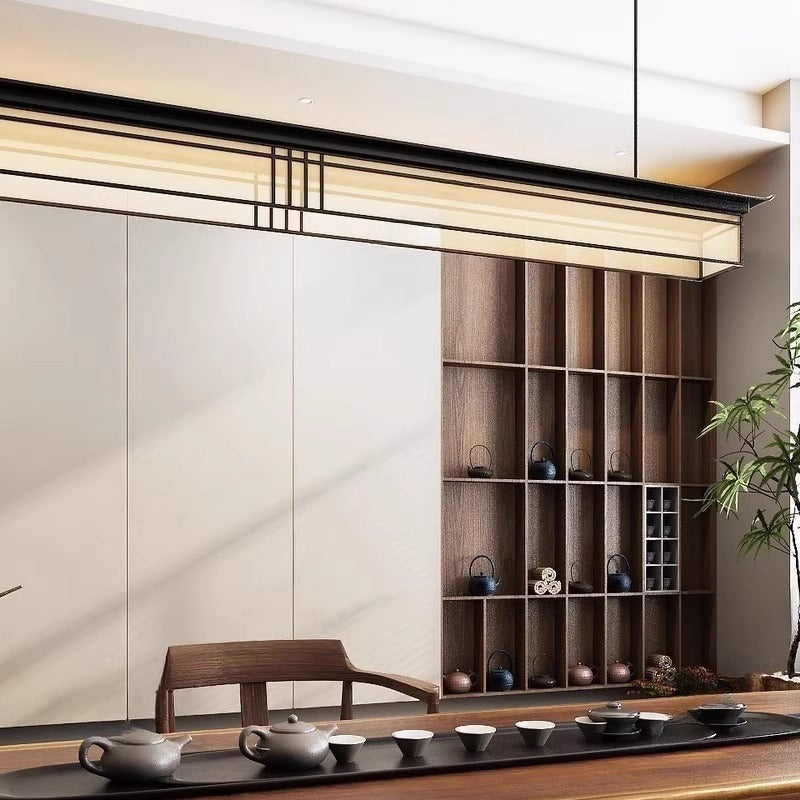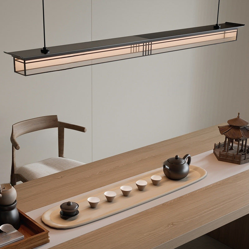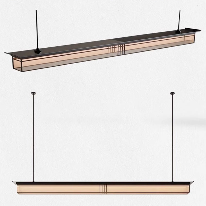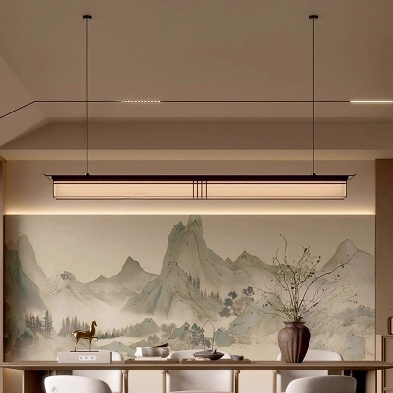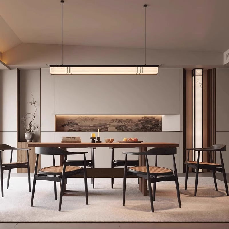 Traditional Chinese Long Strip Acrylic Lampshade Aluminum Iron LED Chandeliers Island Light For Dining Room