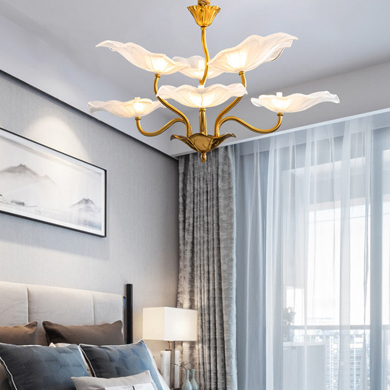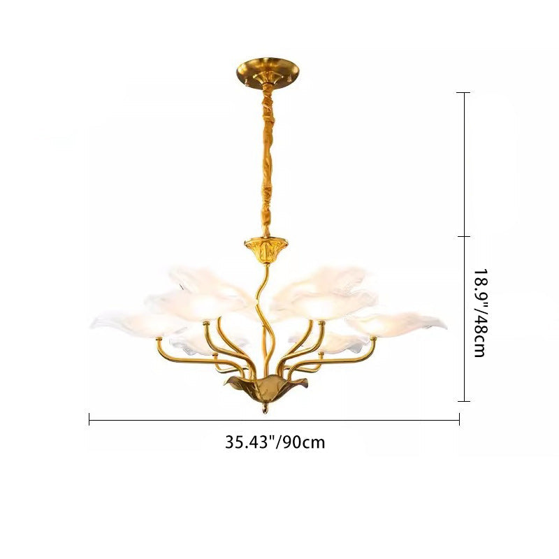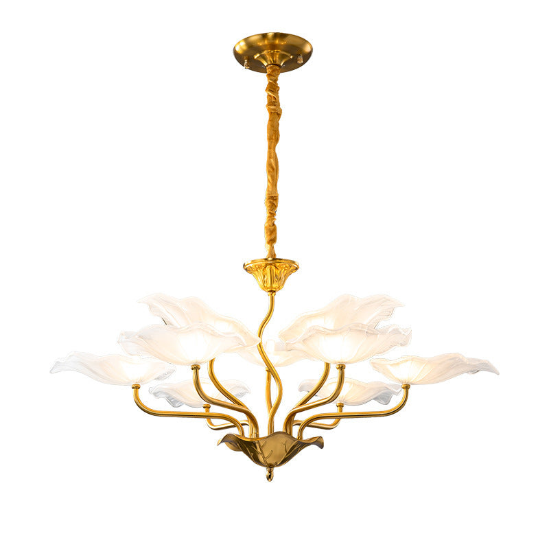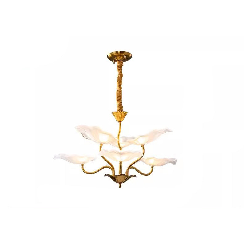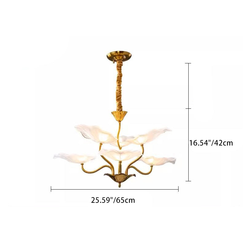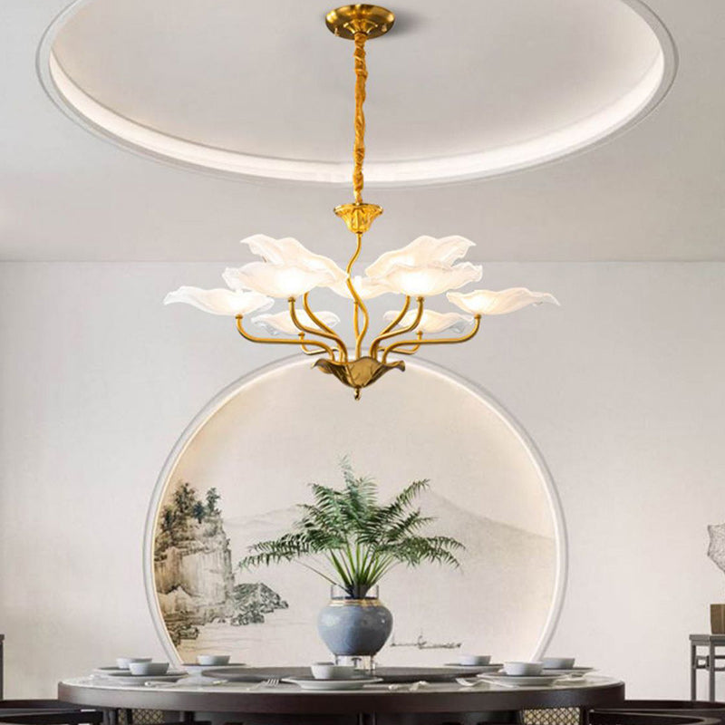 Traditional Chinese Lotus Copper Glass 6/9 - Light Chandelier For Dining Room