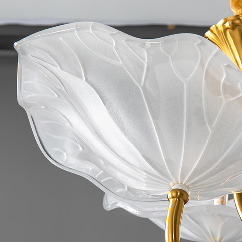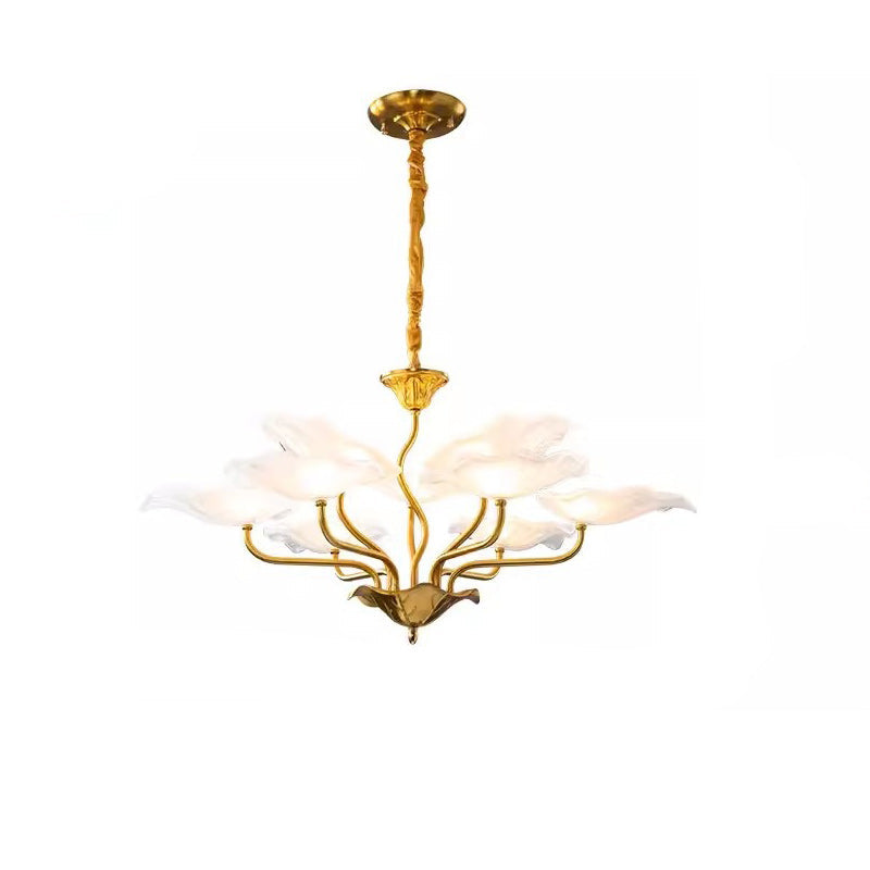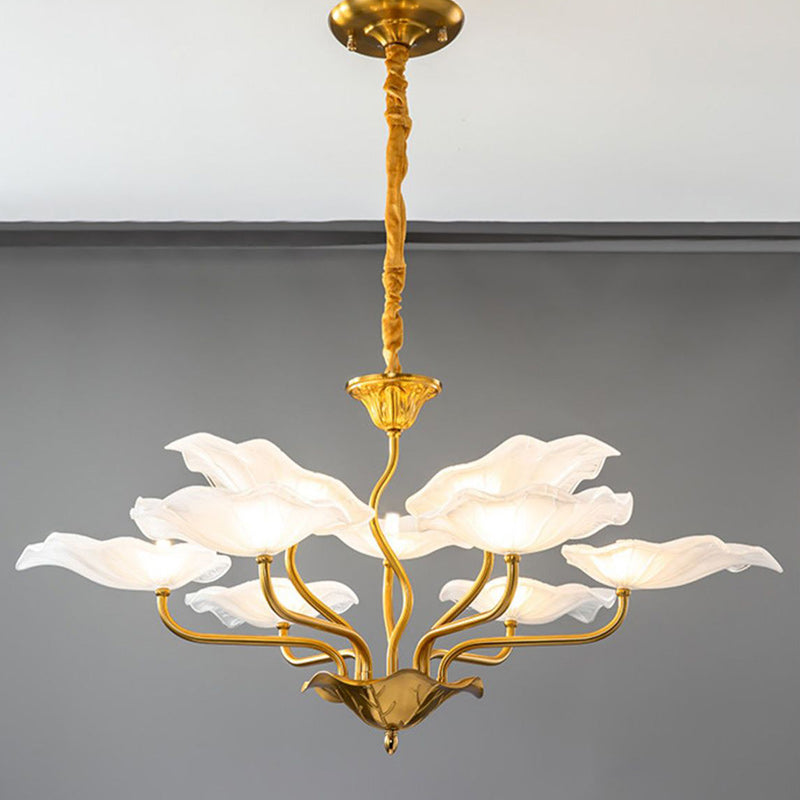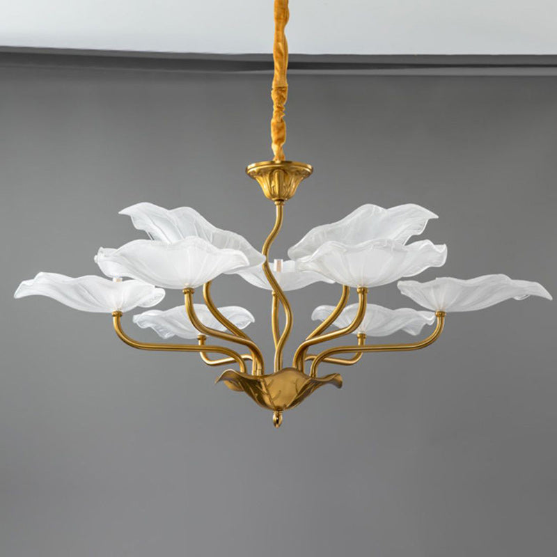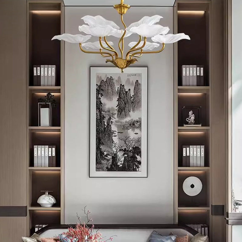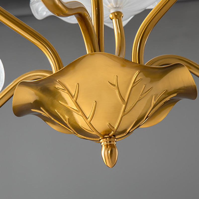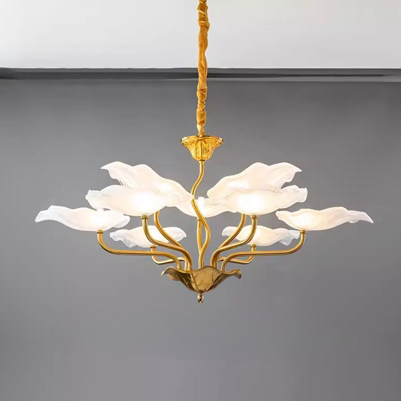 Traditional Chinese Lotus Copper Glass 6/9 - Light Chandelier For Dining Room