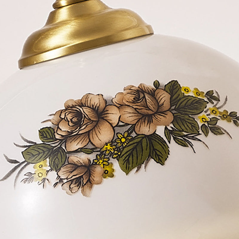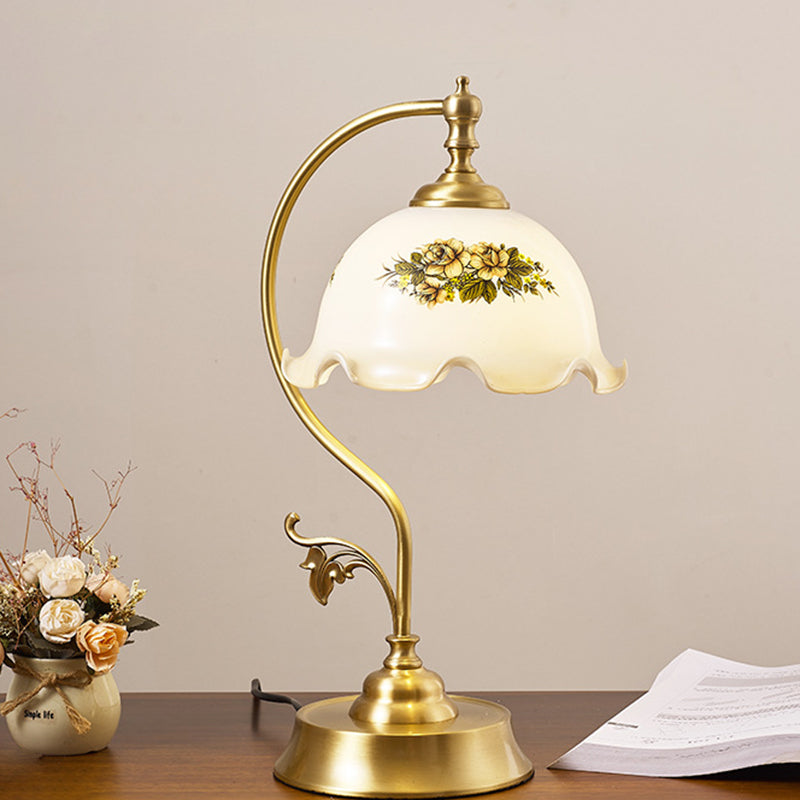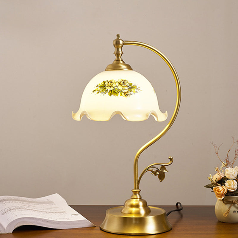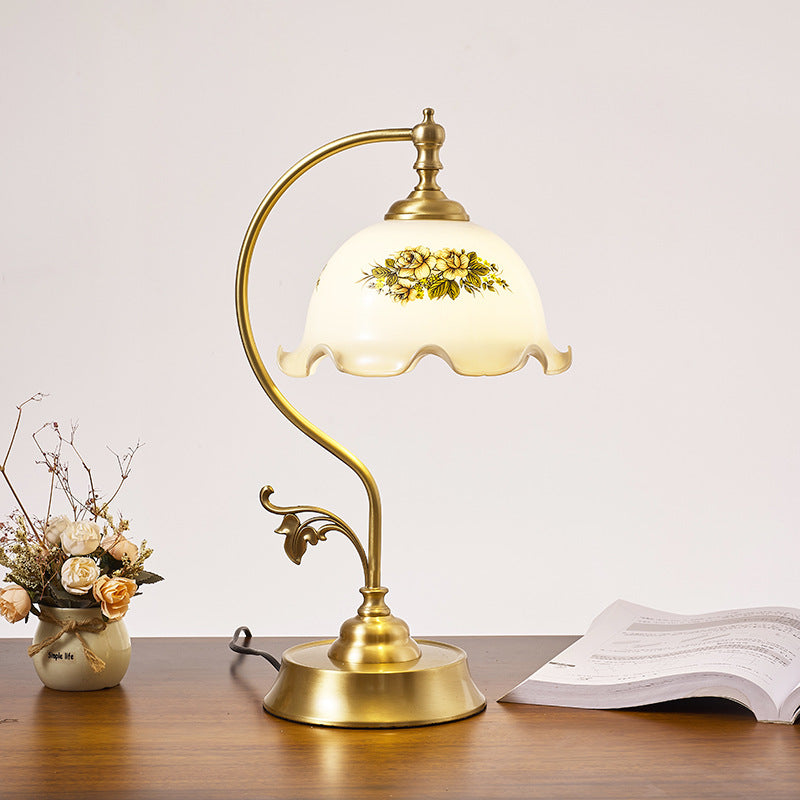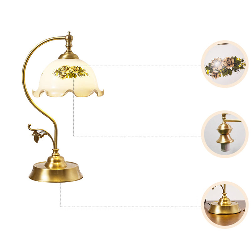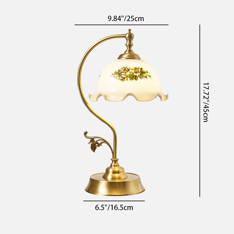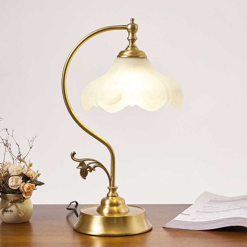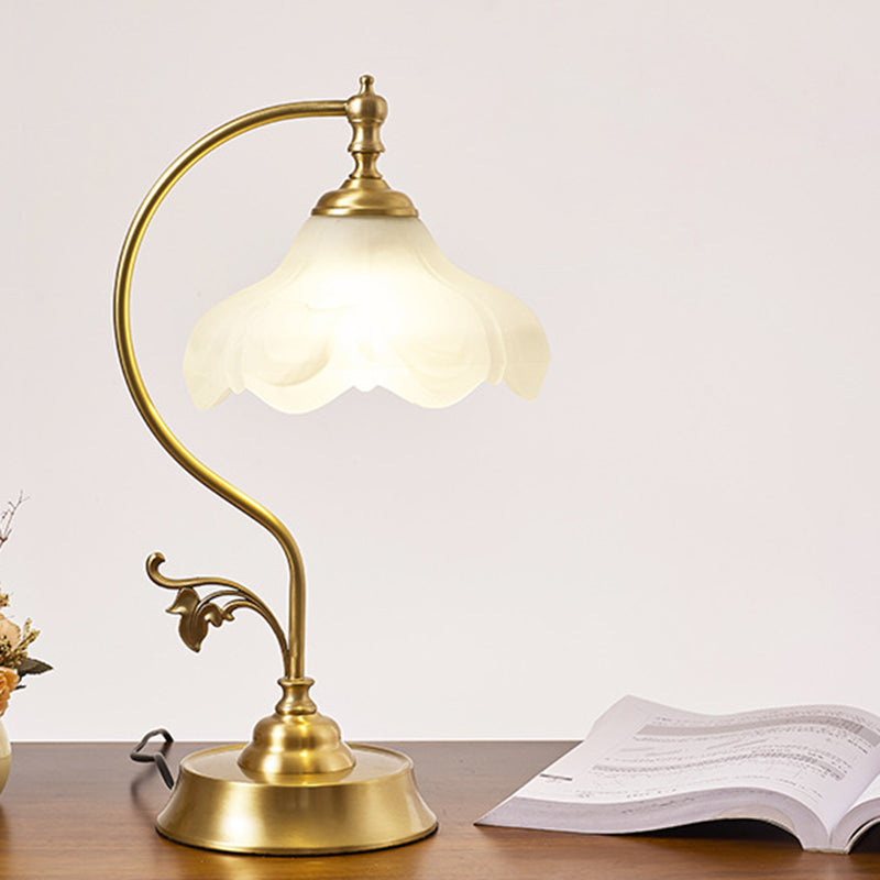 Traditional Chinese Lotus Curved Round Glass Brass 1-Light Table Lamp For Living Room