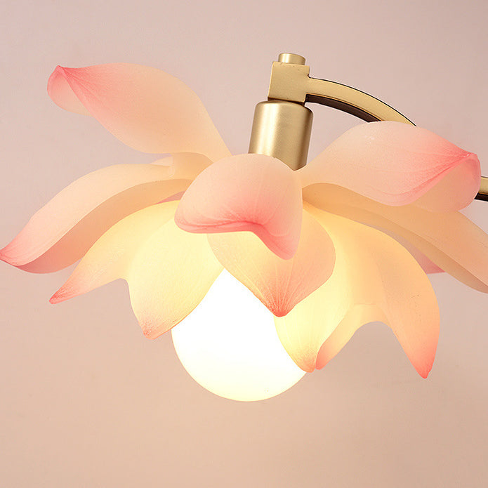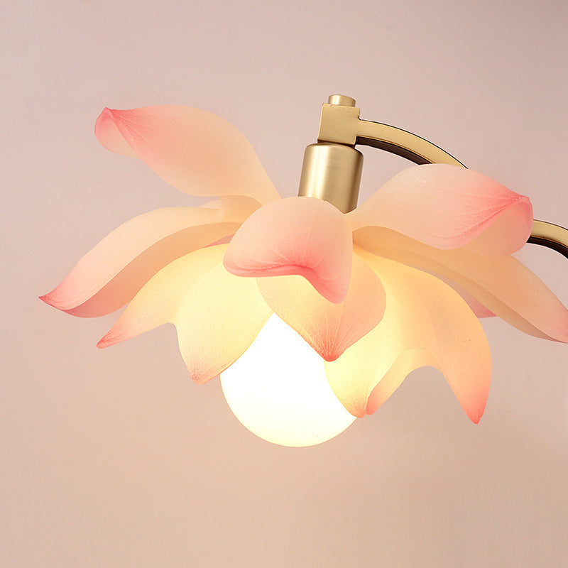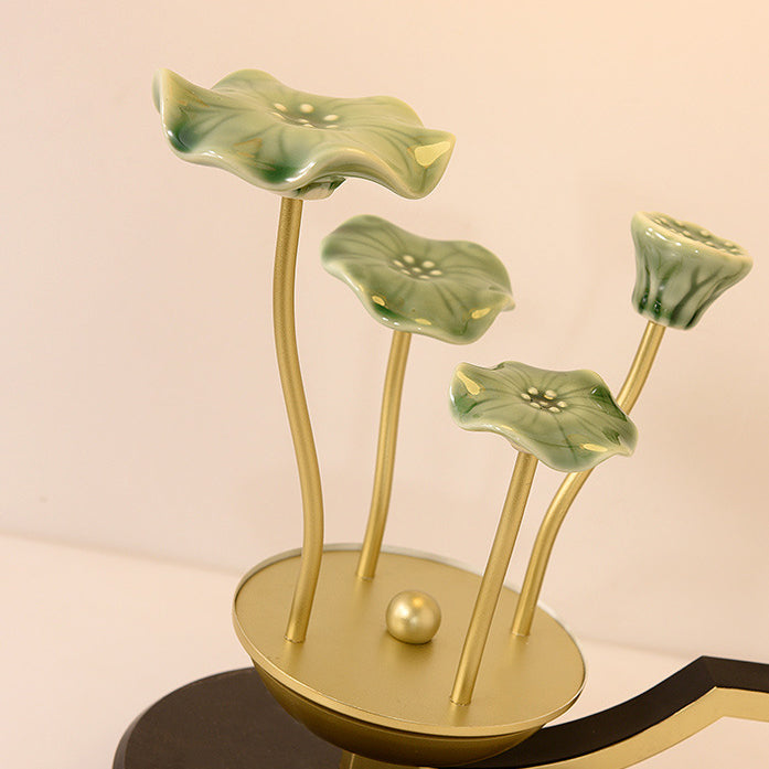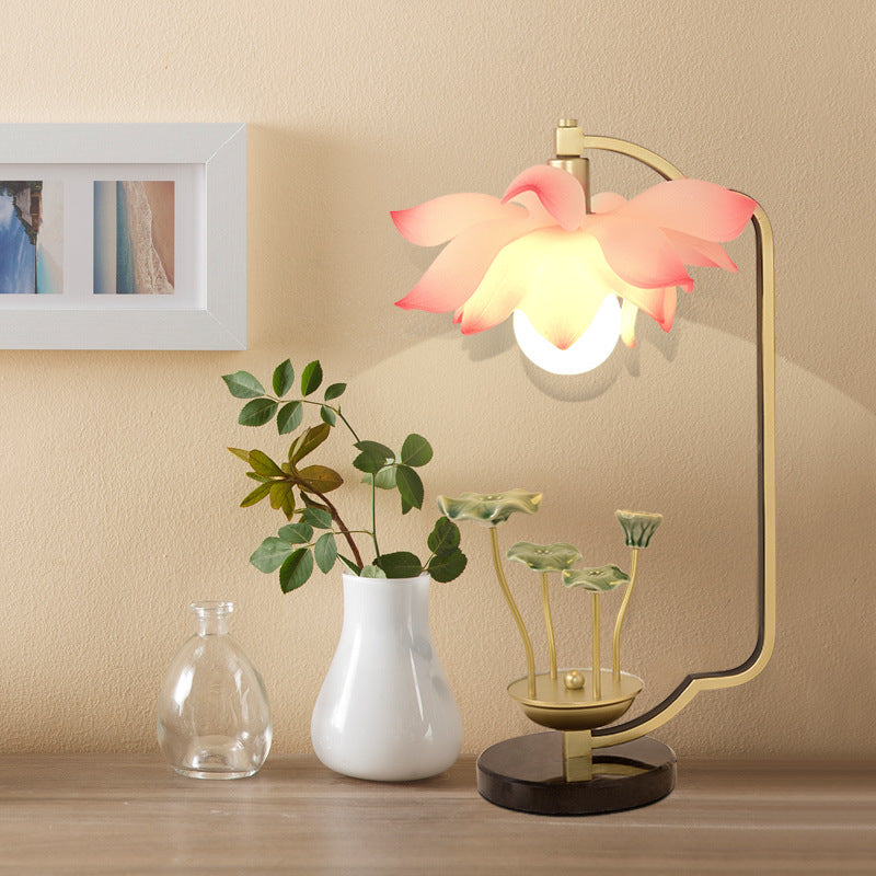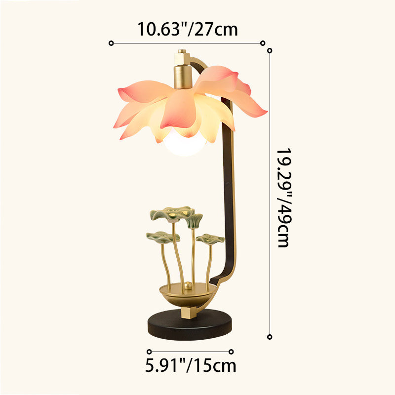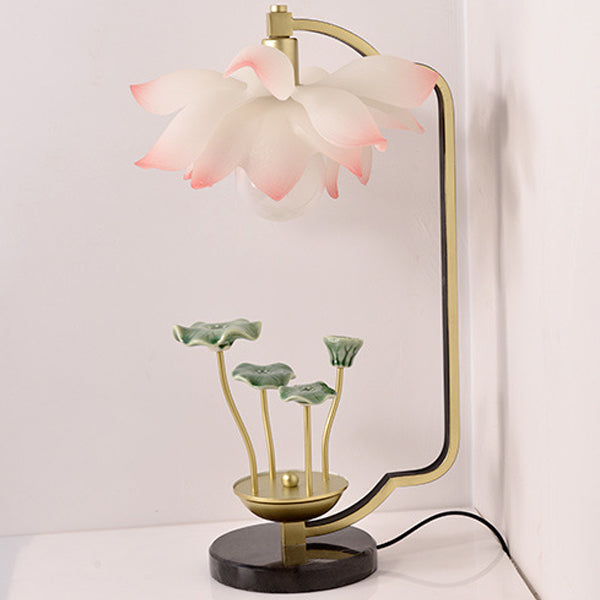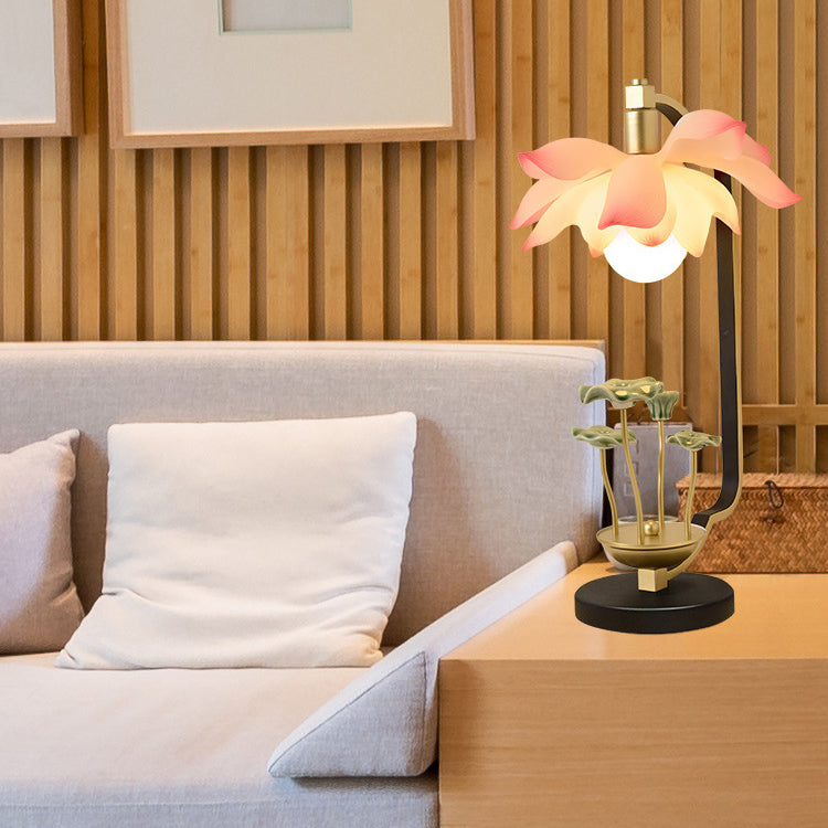 Traditional Chinese Lotus Leaf Round Resin Iron Ceramic 1-Light Table Lamp For Bedroom