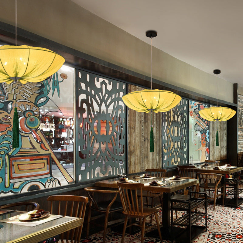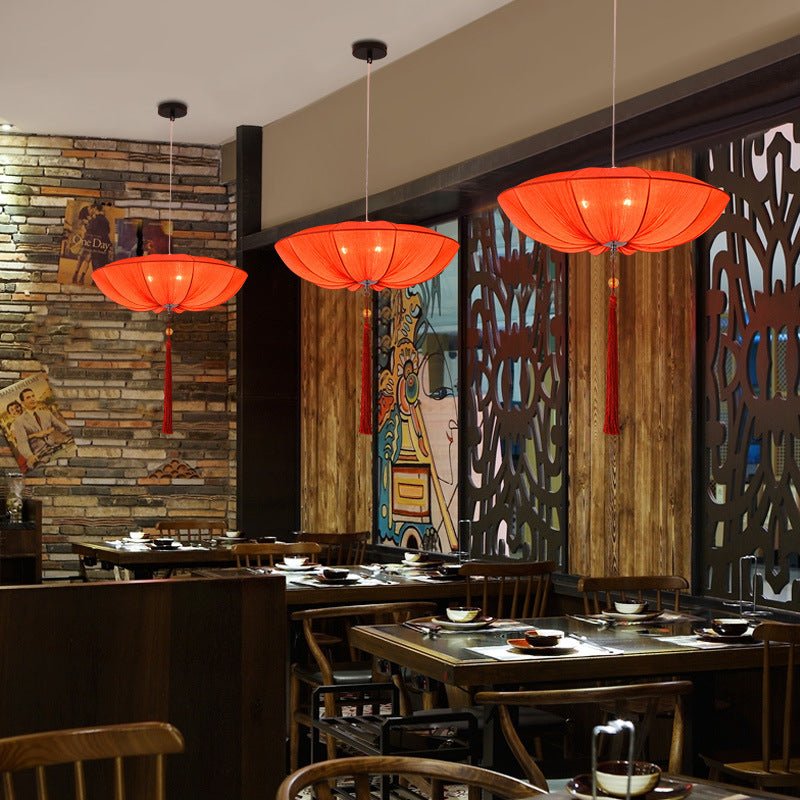 Traditional Chinese Lotus Petal Shape Fabric Lampshade Hardware 1/3 - Light Chandeliers For Dining Room