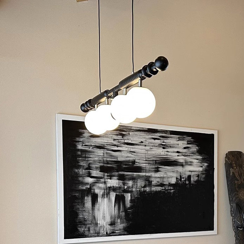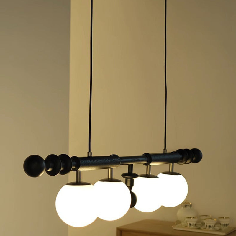 Traditional Chinese Magic Bean Long Orb Glass Wood 4-Light Island Light Chandelier For Living Room