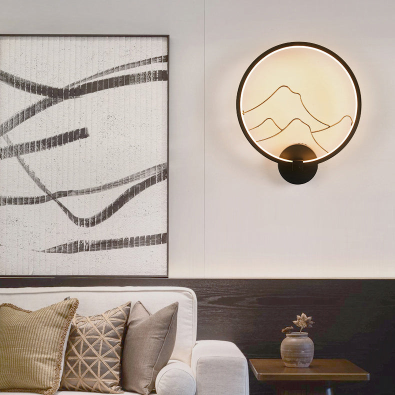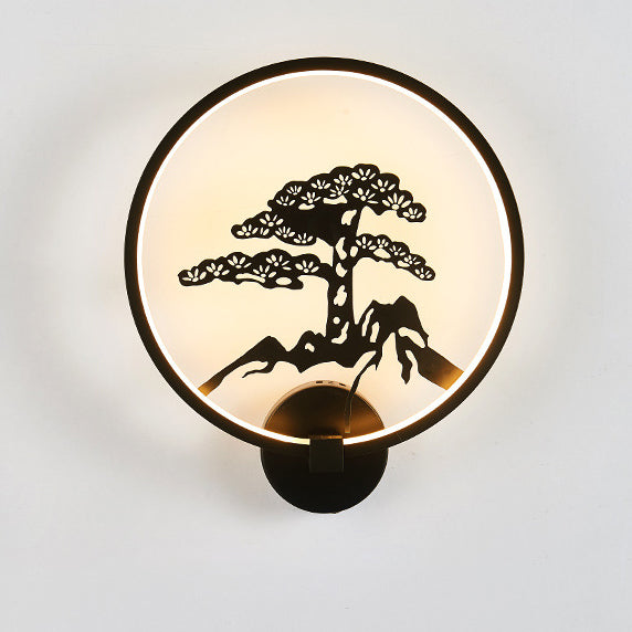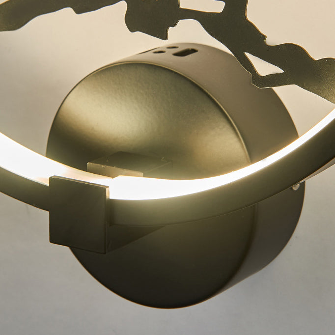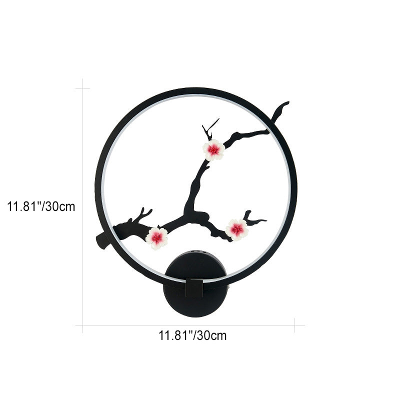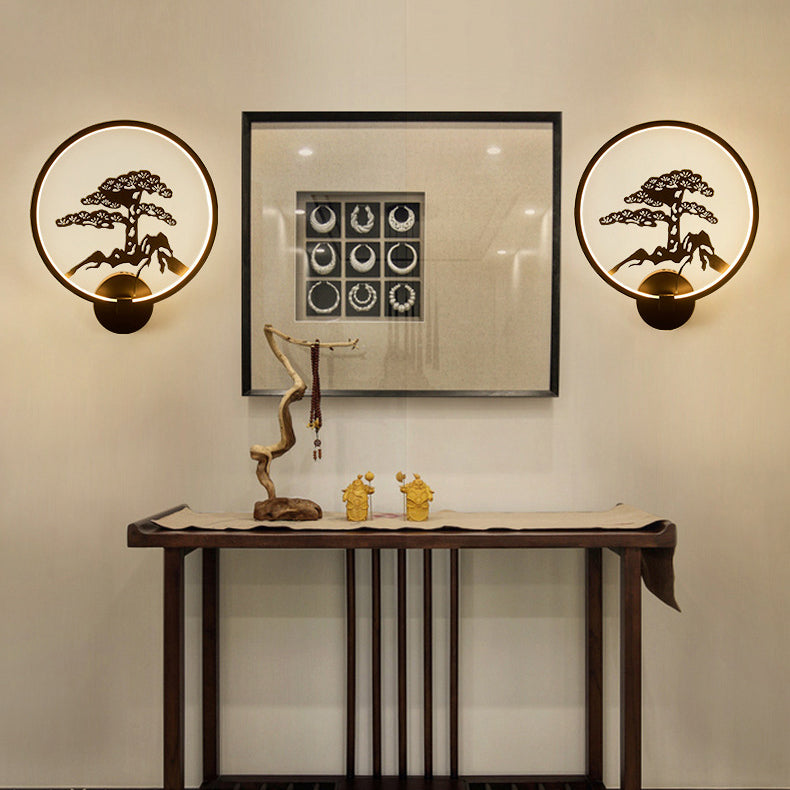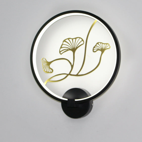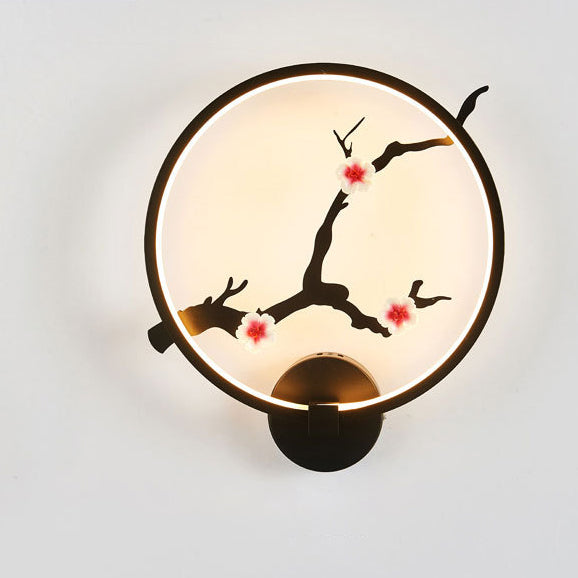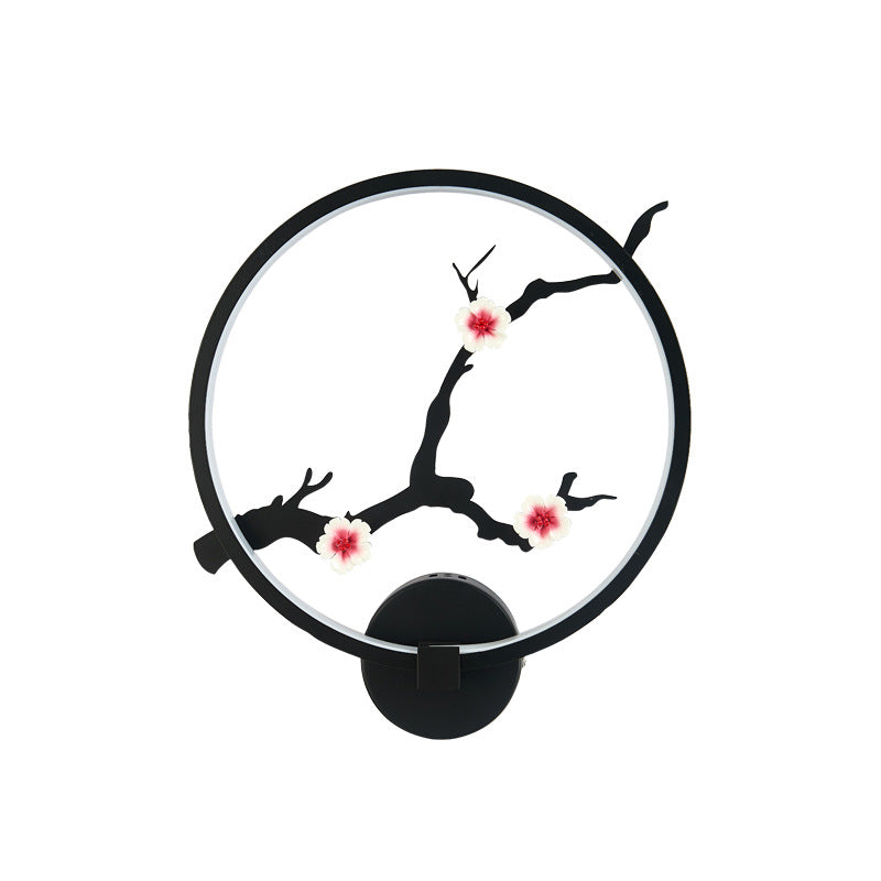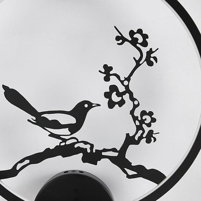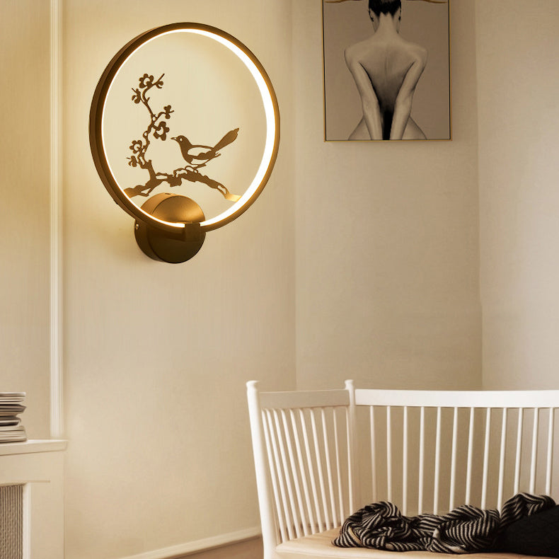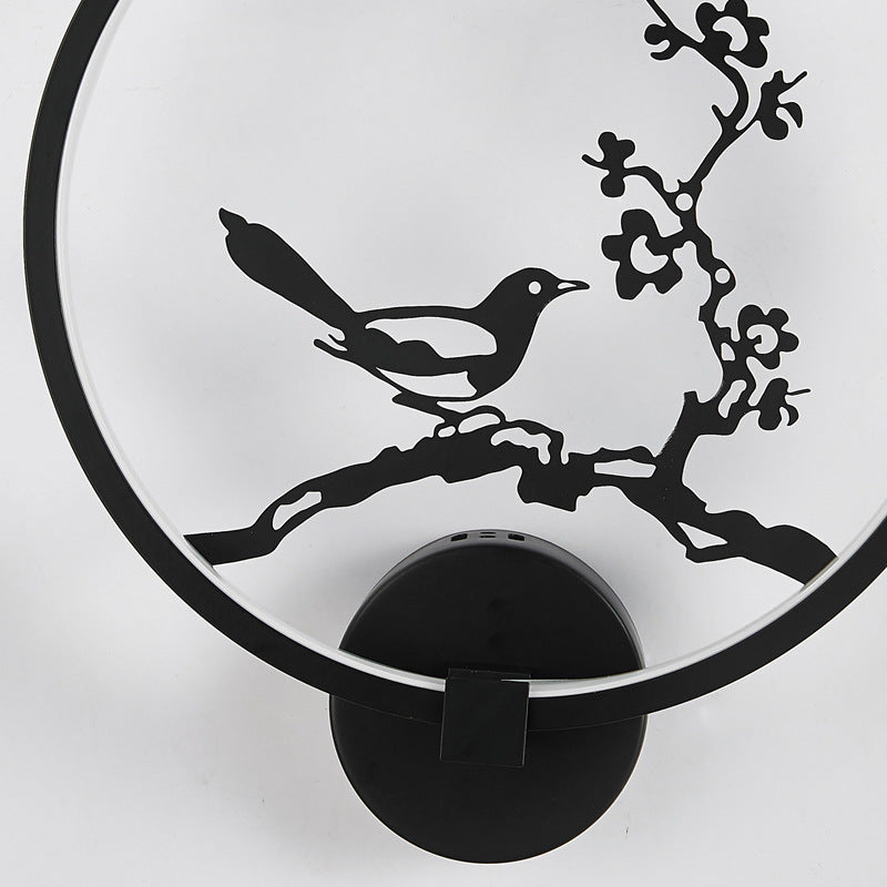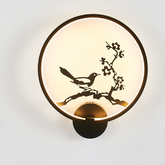 Traditional Chinese Magpie Lotus Leaf Acrylic Round LED Wall Sconce Lamp For Bedroom