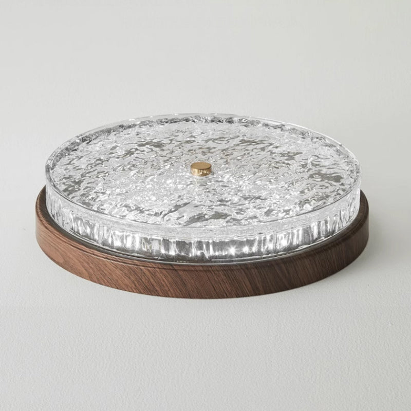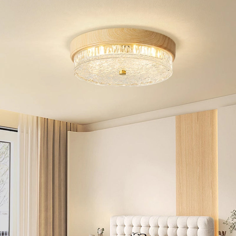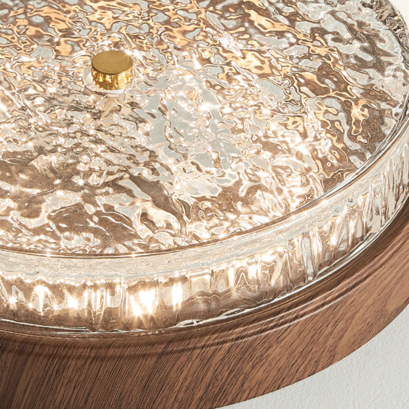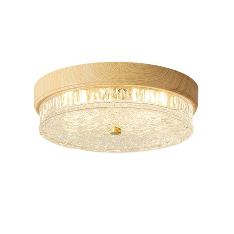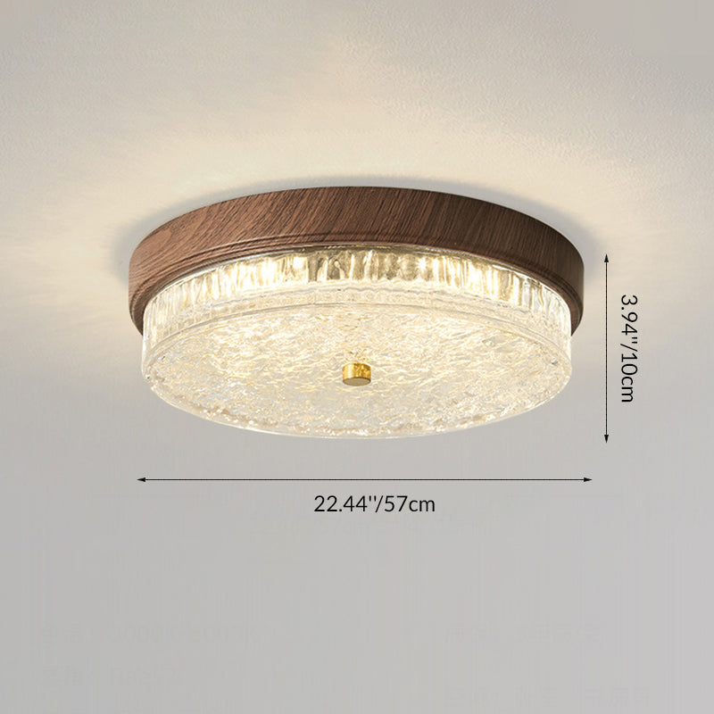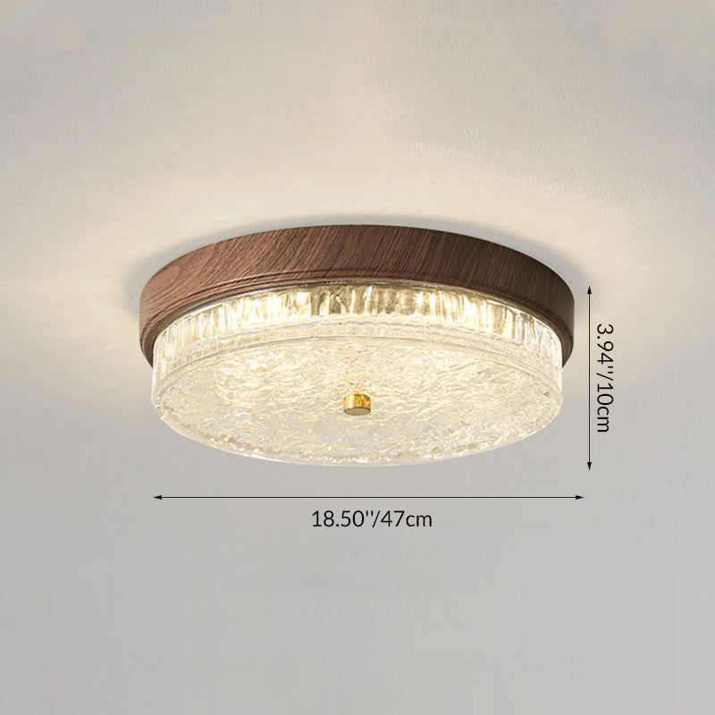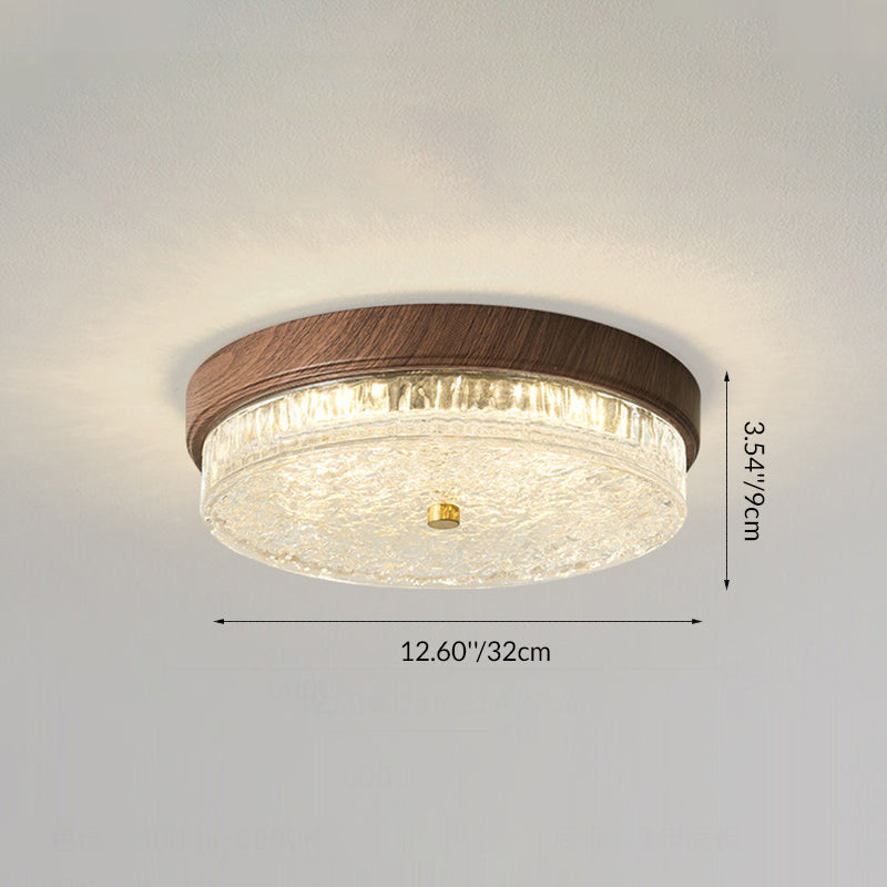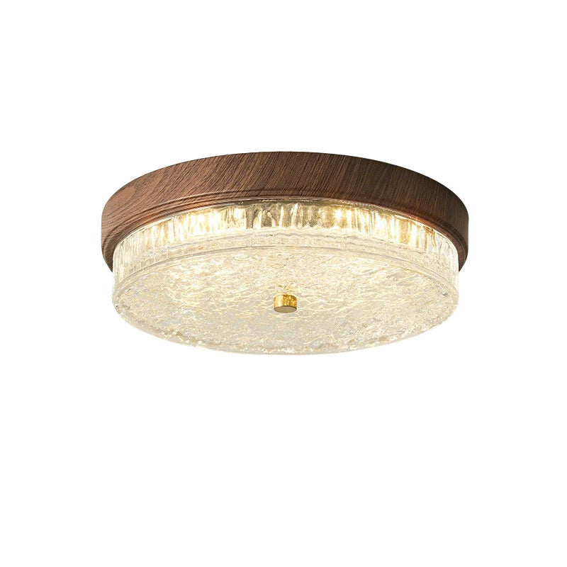 Featuring a water transfer wood grain finish and ripple-textured glass shade, this traditional Chinese LED flush mount ceiling light offers strong anti-oxidation and soft ambient glow. Available in natural wood and walnut tones, it blends vintage charm with eye-friendly performance—perfect for bedrooms or studies.