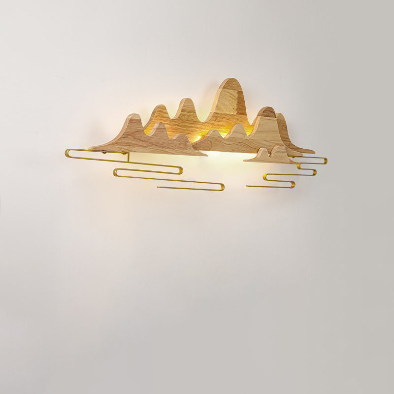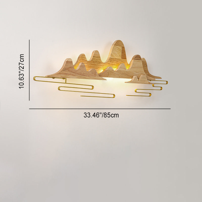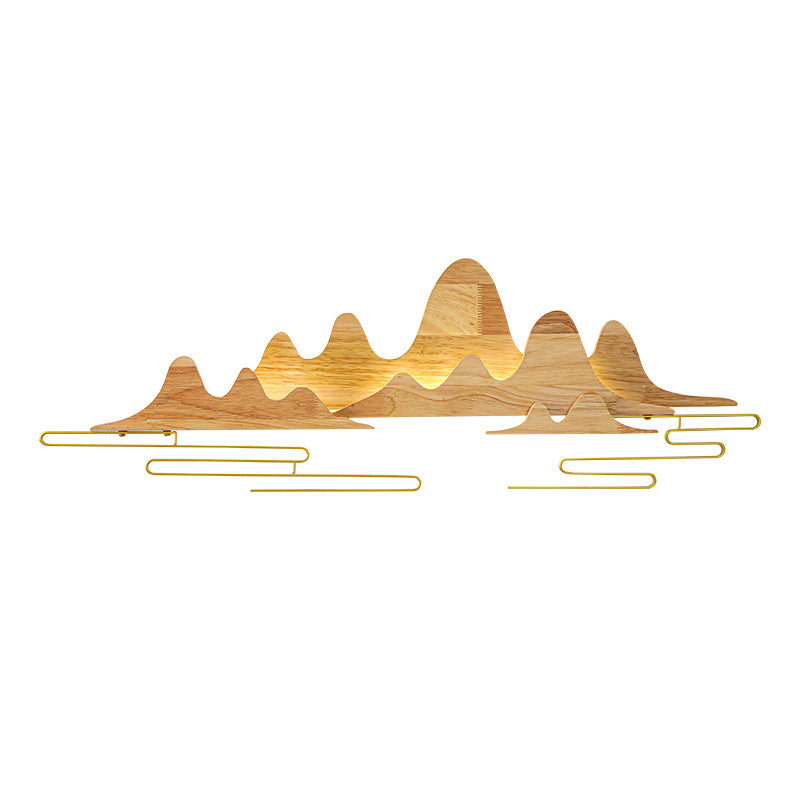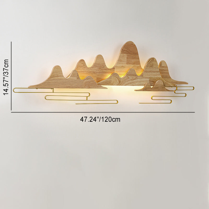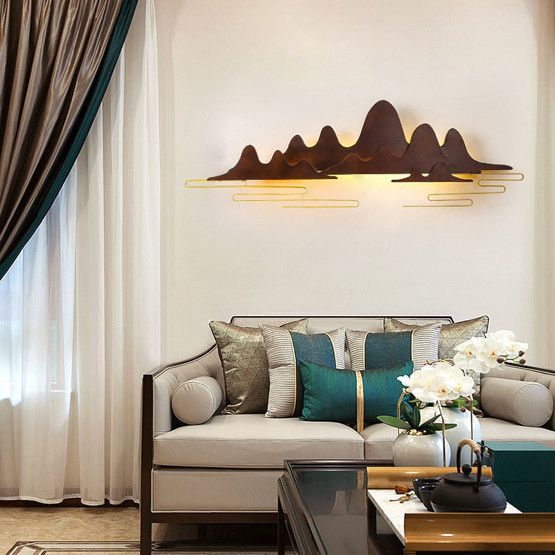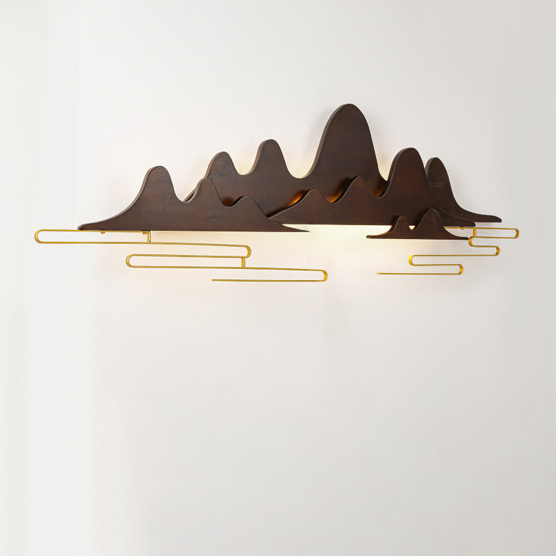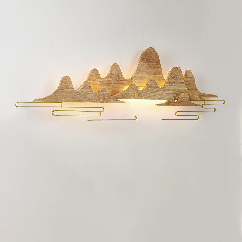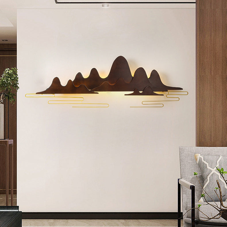 Traditional Chinese Mountain Line Meandering Solid Wood Iron LED Wall Sconce Lamp For Living Room
