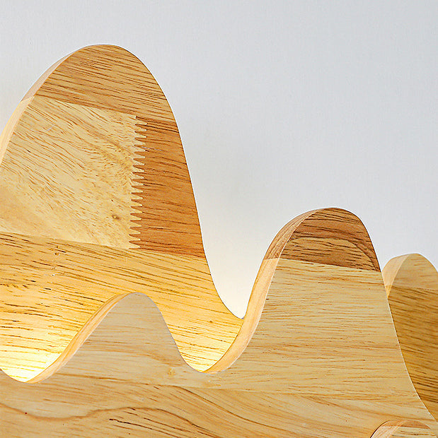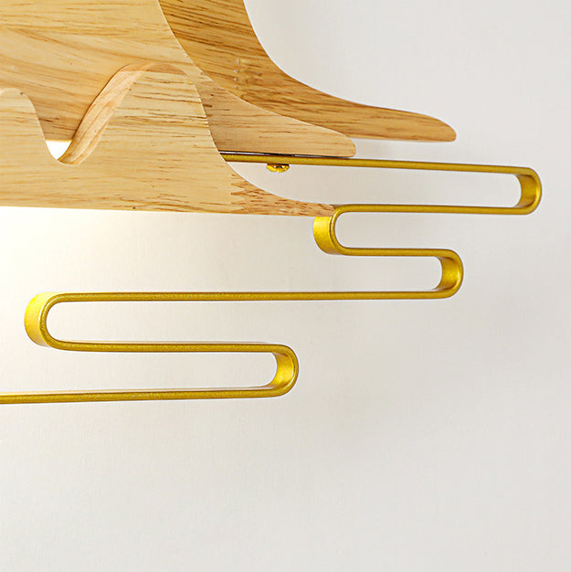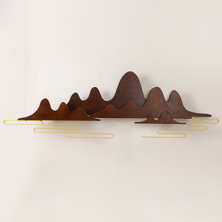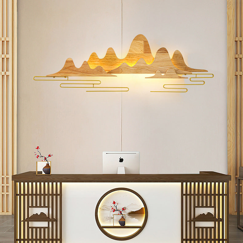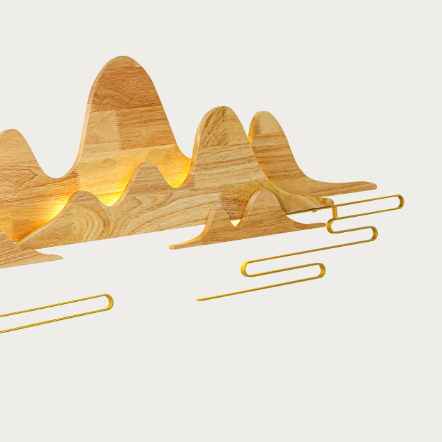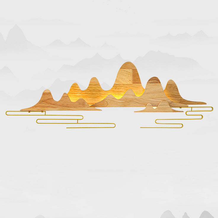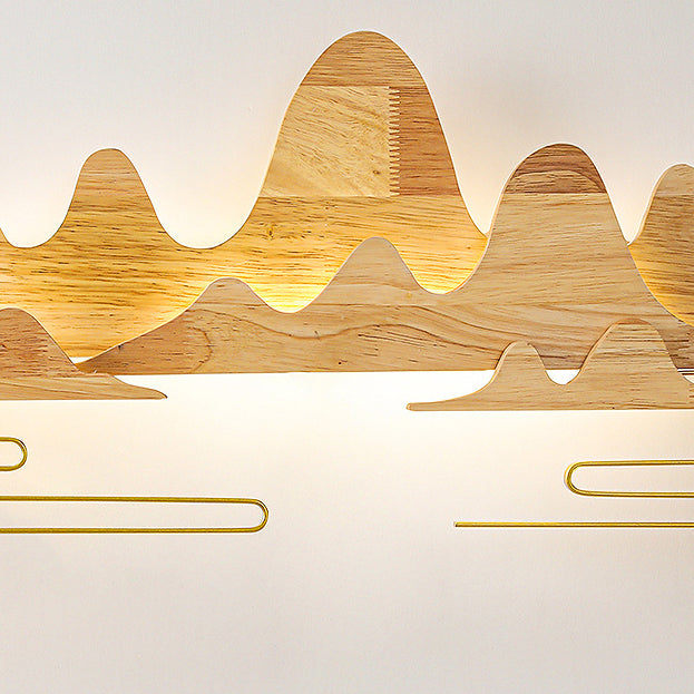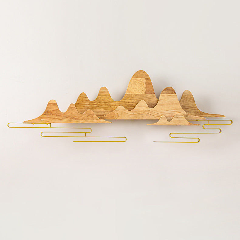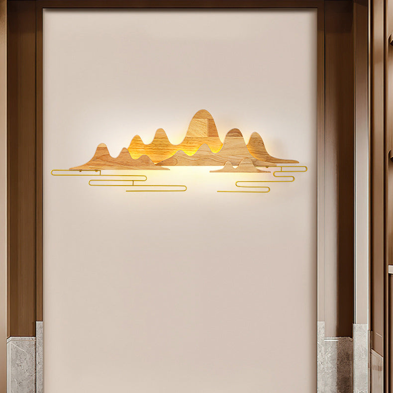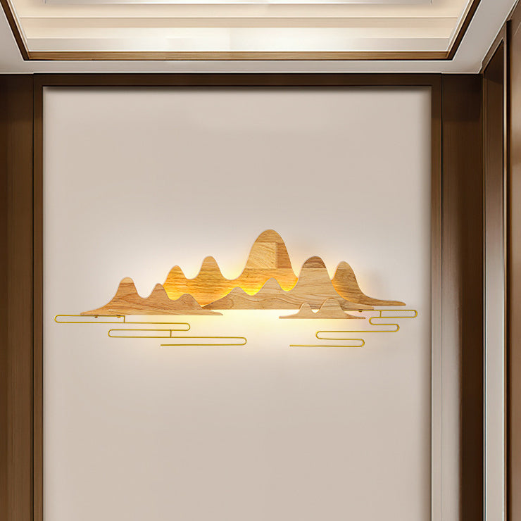 Traditional Chinese Mountain Line Meandering Solid Wood Iron LED Wall Sconce Lamp For Living Room