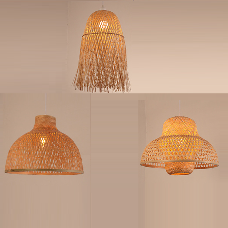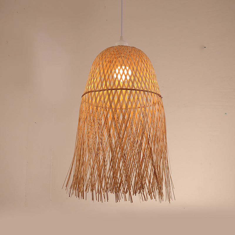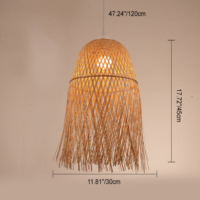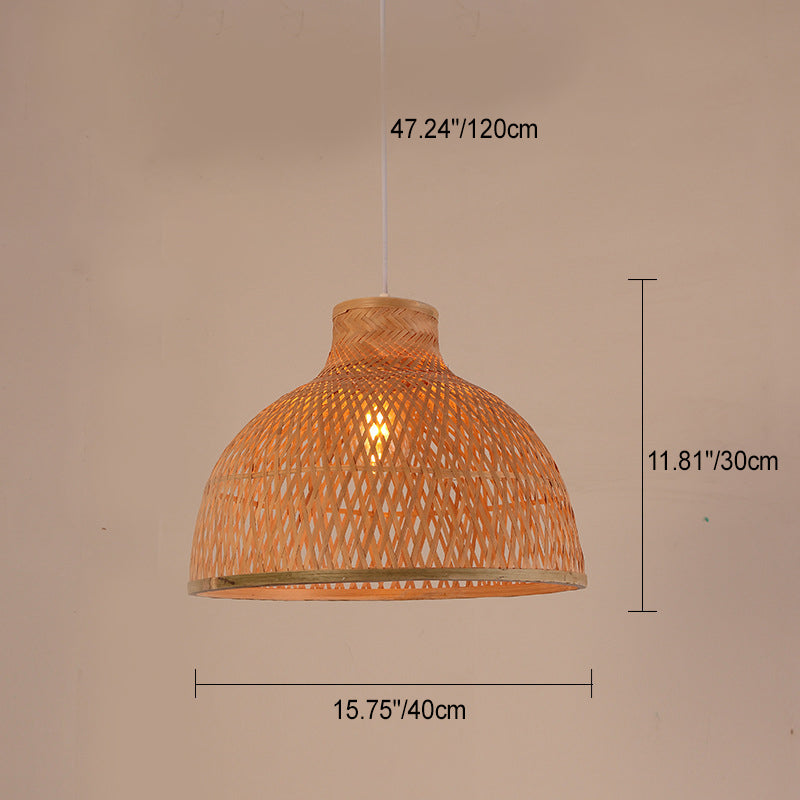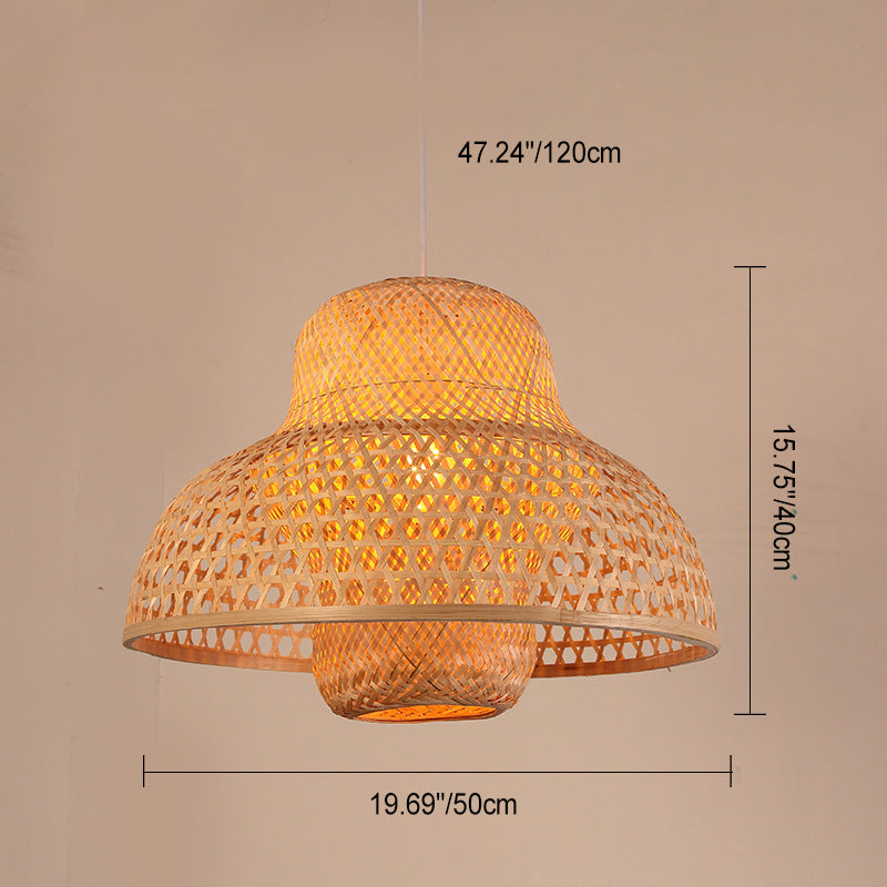 Traditional Chinese Octopus Pot Lid Round Bamboo 1-Light Pendant Light For Living Room