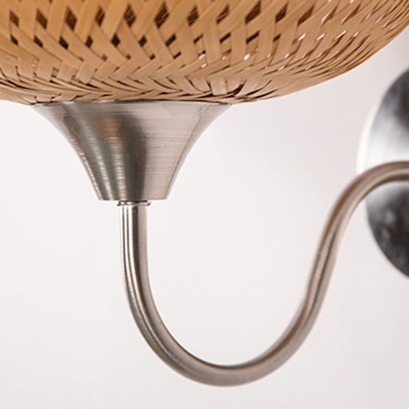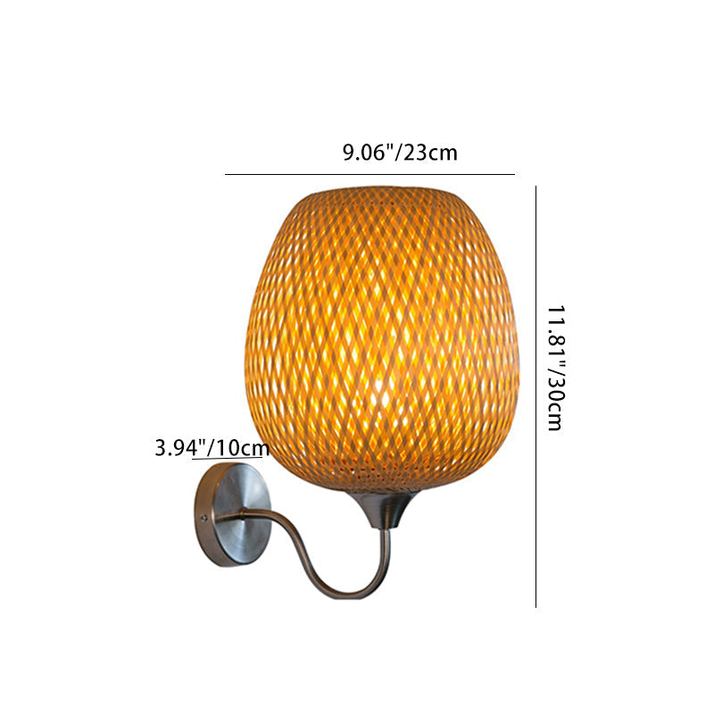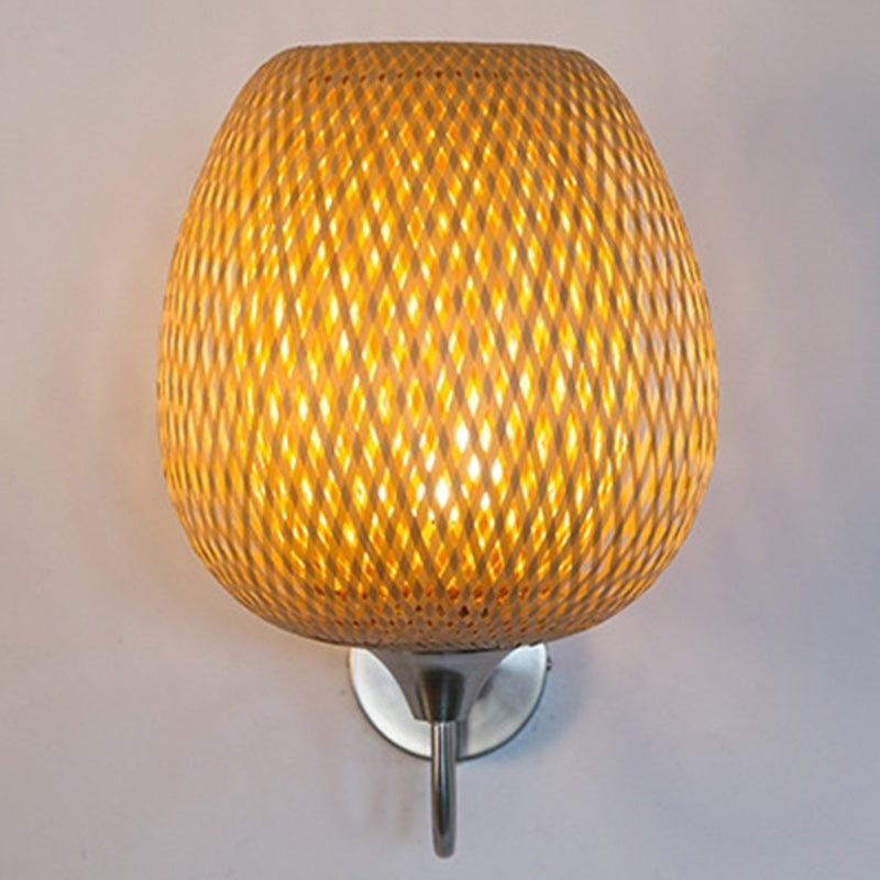 Traditional Chinese Oval Iron Bamboo 1-Light Wall Sconce Lamp For Living Room