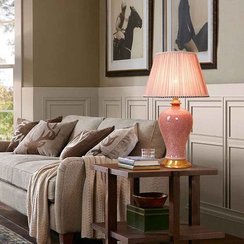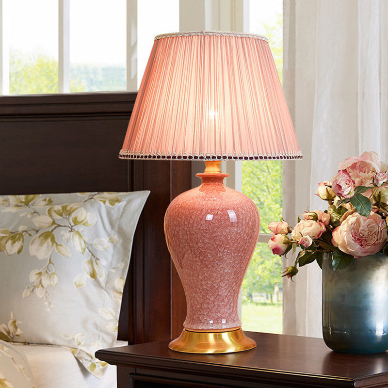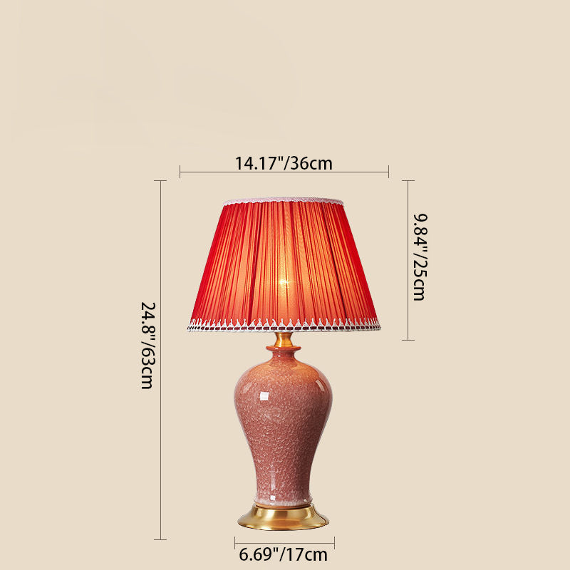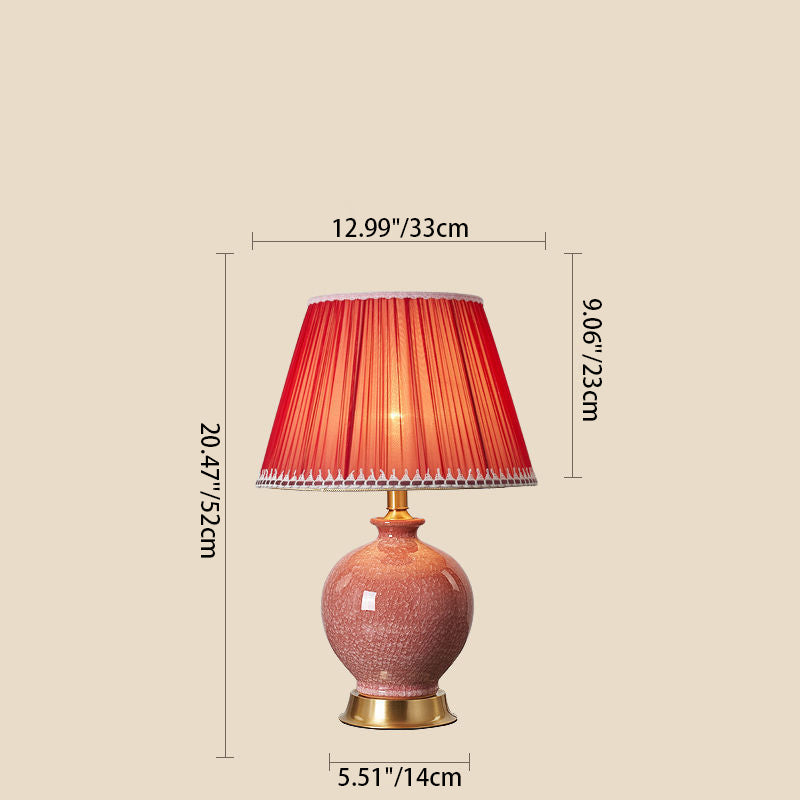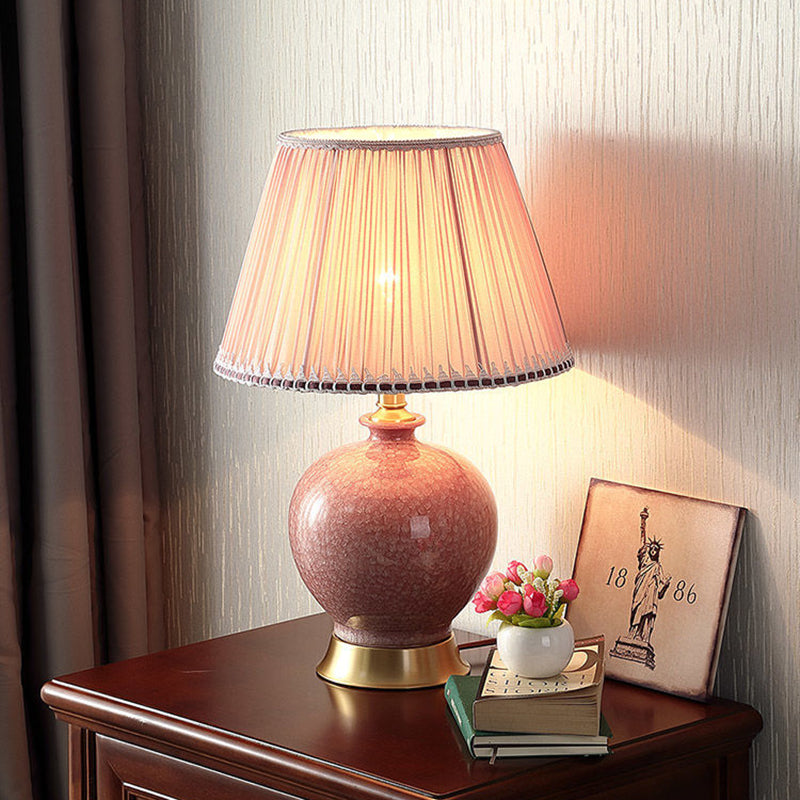 Traditional Chinese Oval Sphere Round Table Crystallized Glaze Ceramic Copper Fabric 1-Light Table Lamp For Bedroom