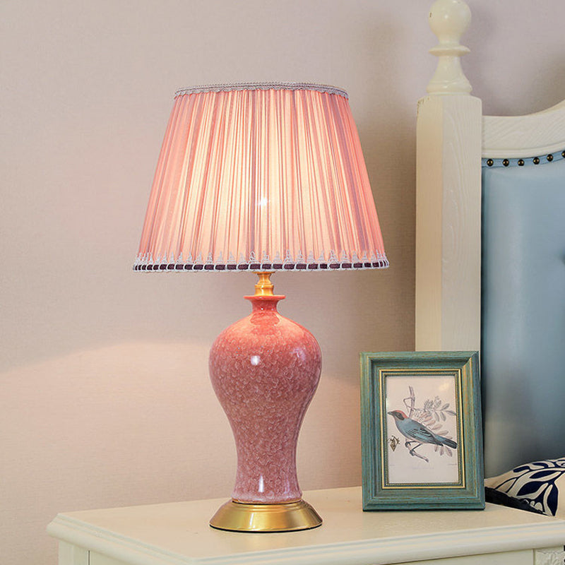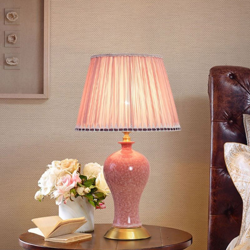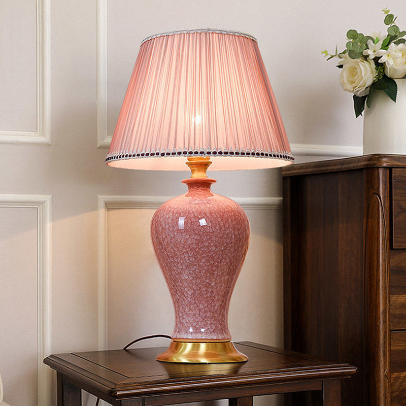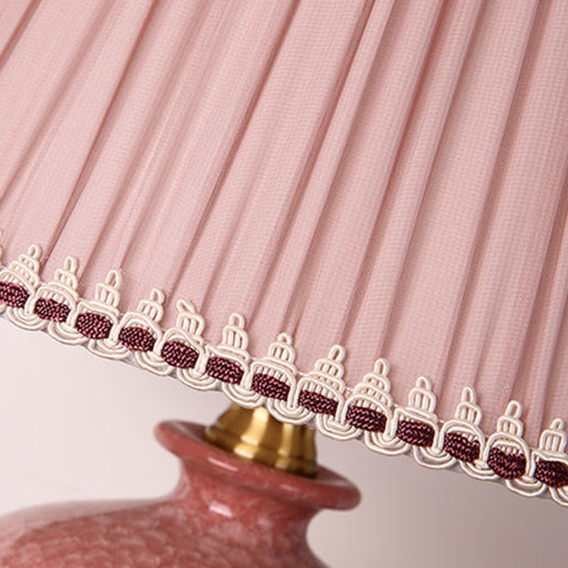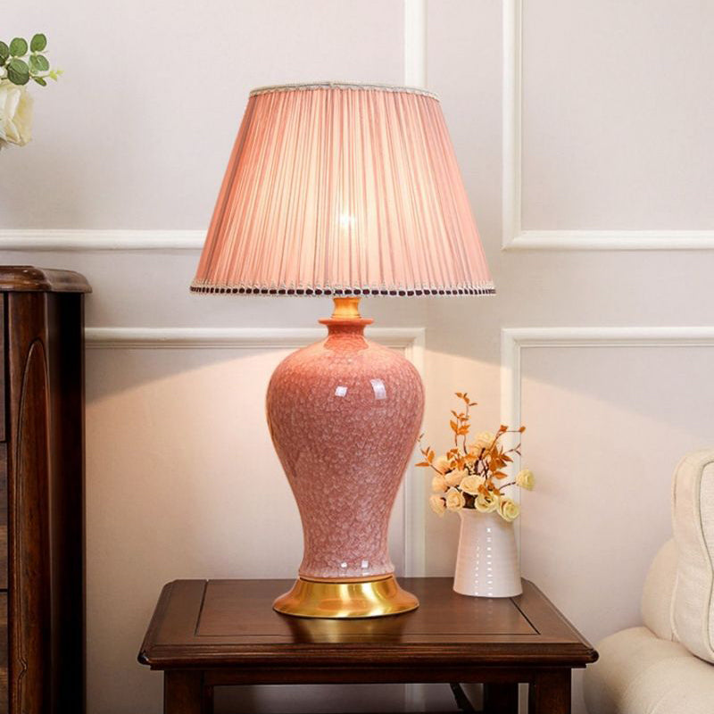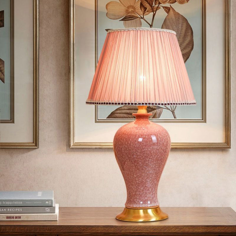 Traditional Chinese Oval Sphere Round Table Crystallized Glaze Ceramic Copper Fabric 1-Light Table Lamp For Bedroom