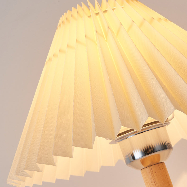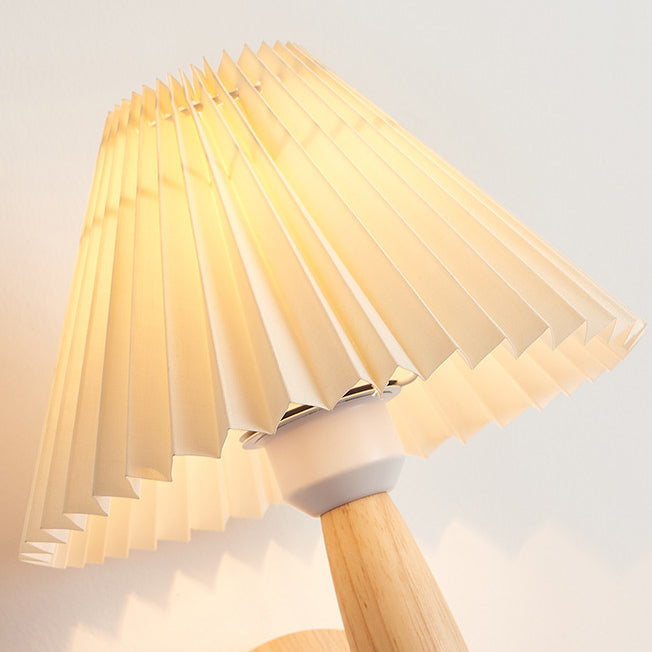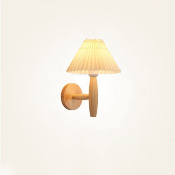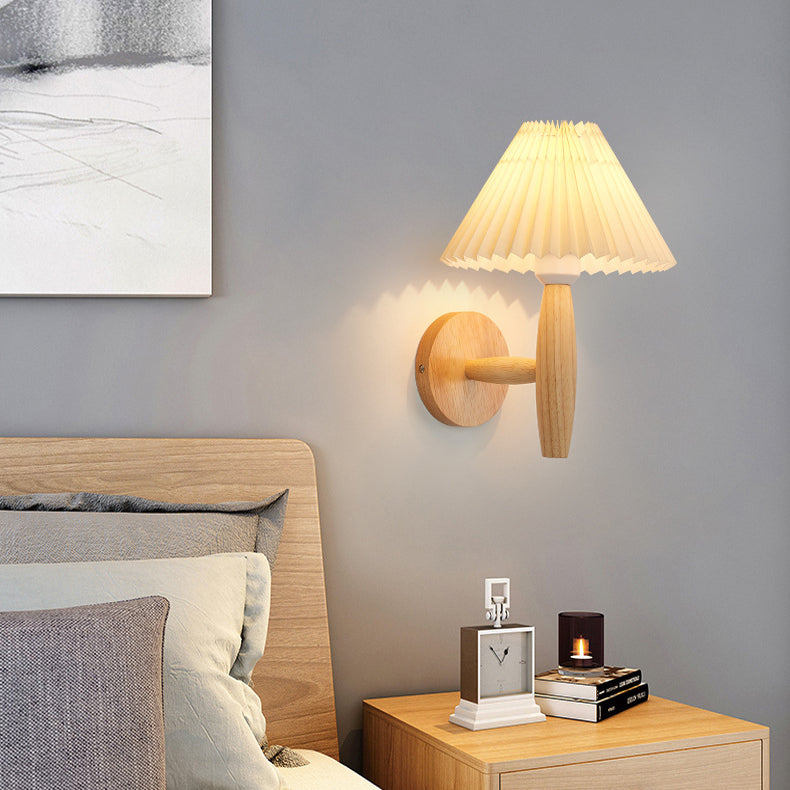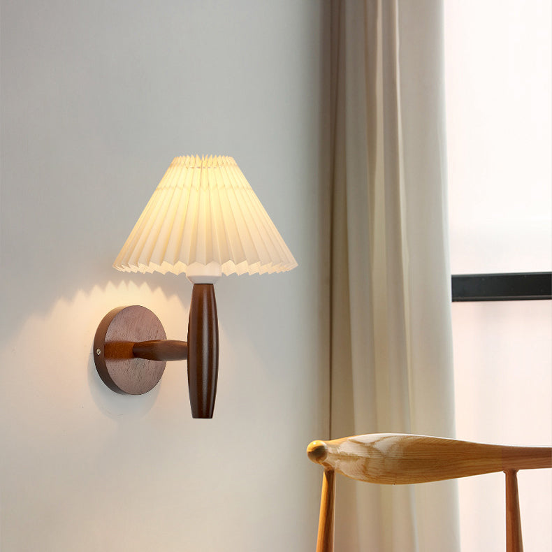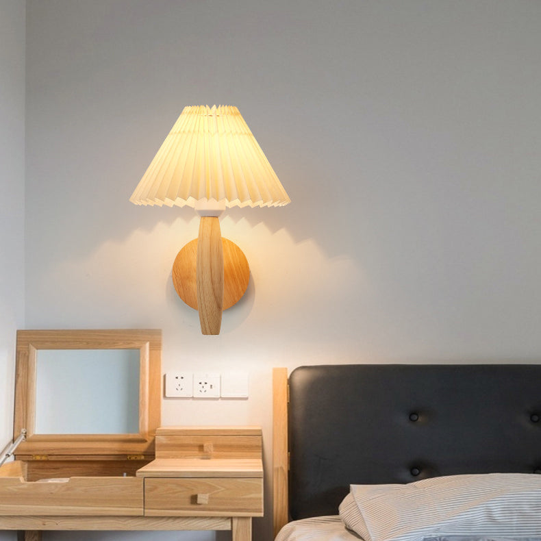 Traditional Chinese Pleated Umbrella Fabric Shade Wood 1-Light Wall Sconce Lamp For Living Room