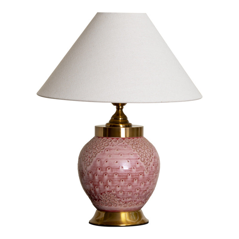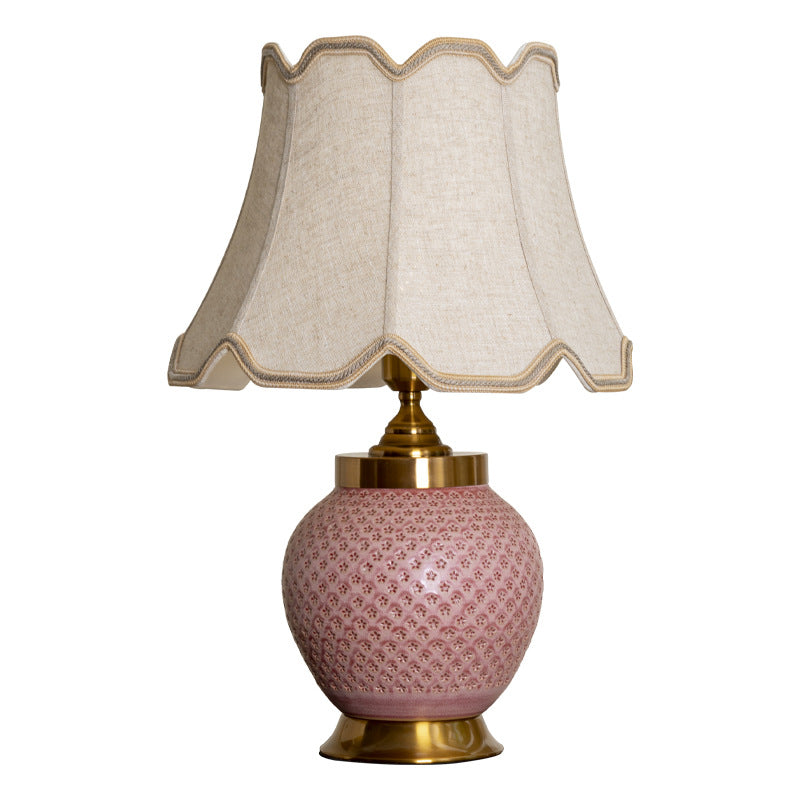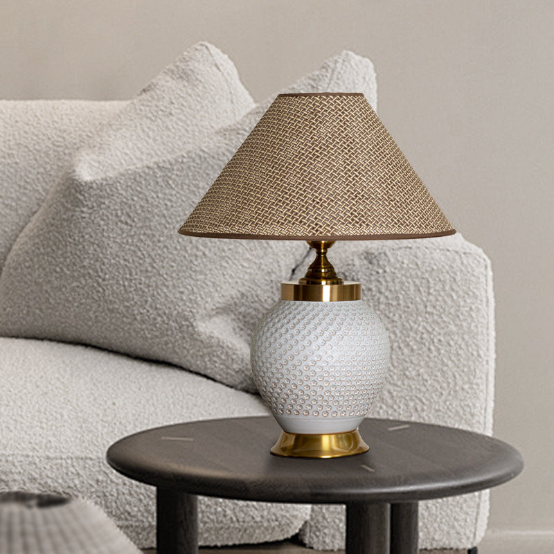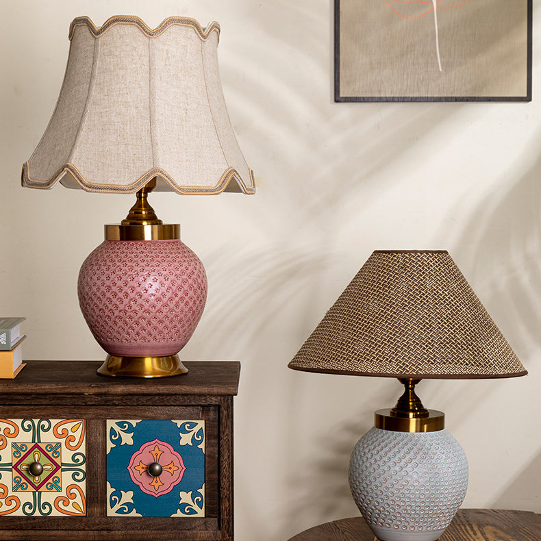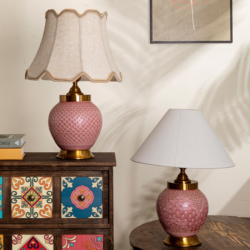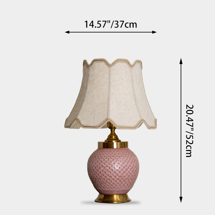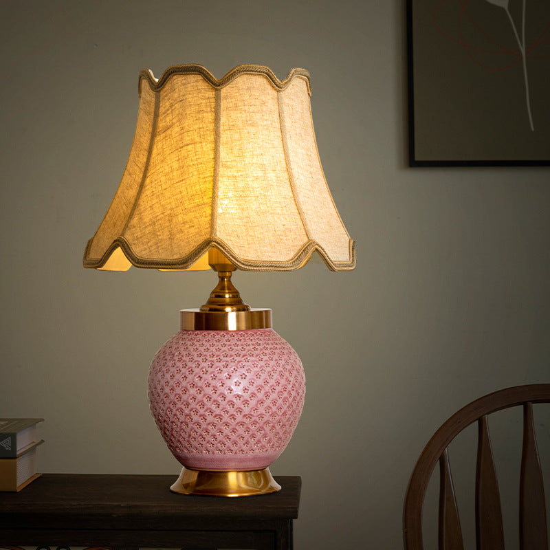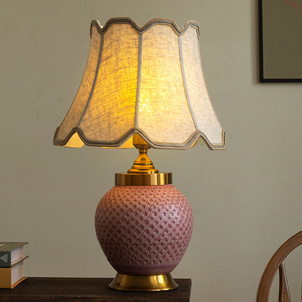 Traditional Chinese Plum Bossom Fabric Shade Ceramic Base 1-Light Table Lamp For Study