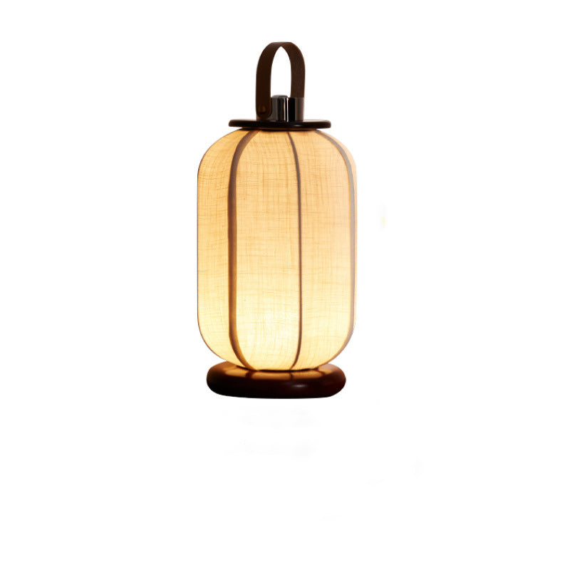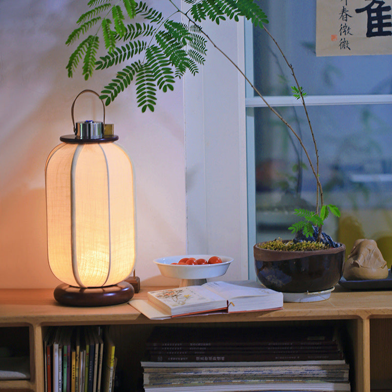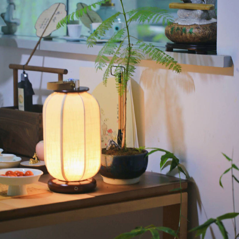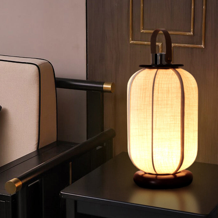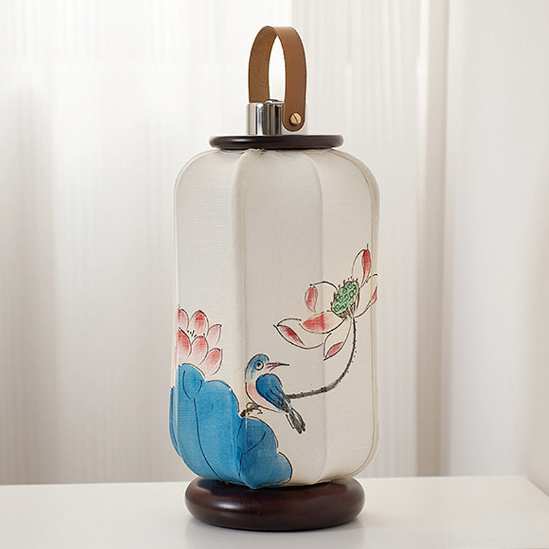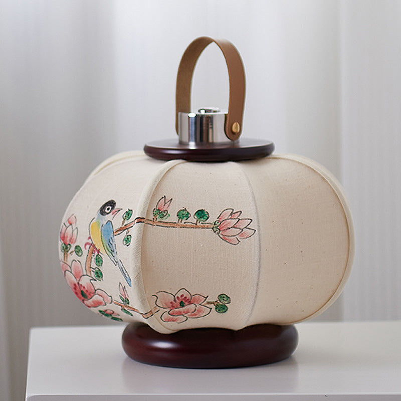 Traditional Chinese Portable USB Leather Stainless Steel Fabric Wood Cylinder Lantern Bird Pattern LED Table Lamp For Study